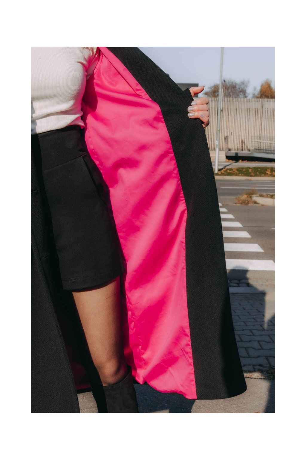 Tazara je kabát, kterému nechybí vůbec nic. Kapsy, knoflíky a midi délka jsou klasikou, kterou hravě zkombinujete s čímkoliv. Bonbonkem je hot pink podšívka.