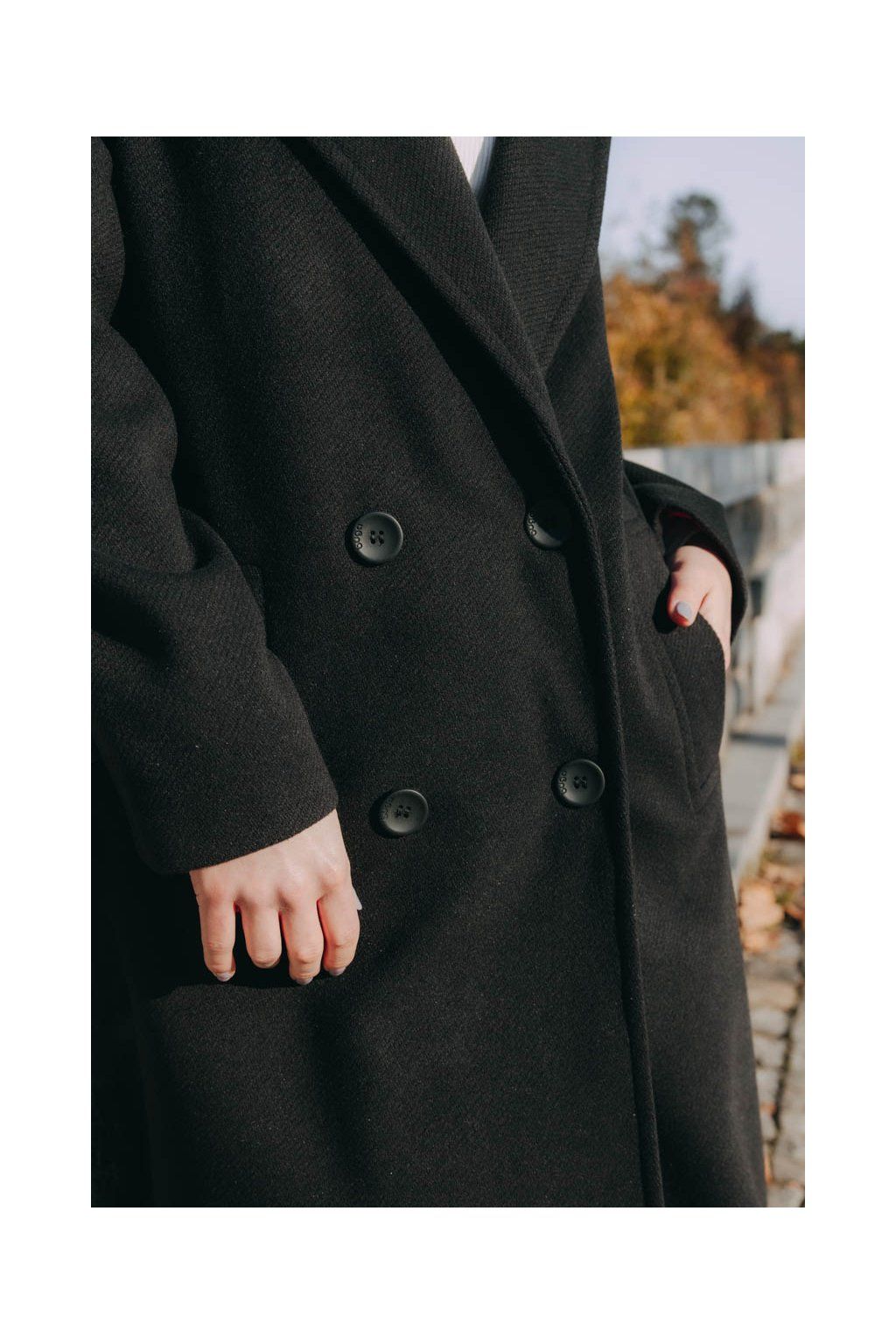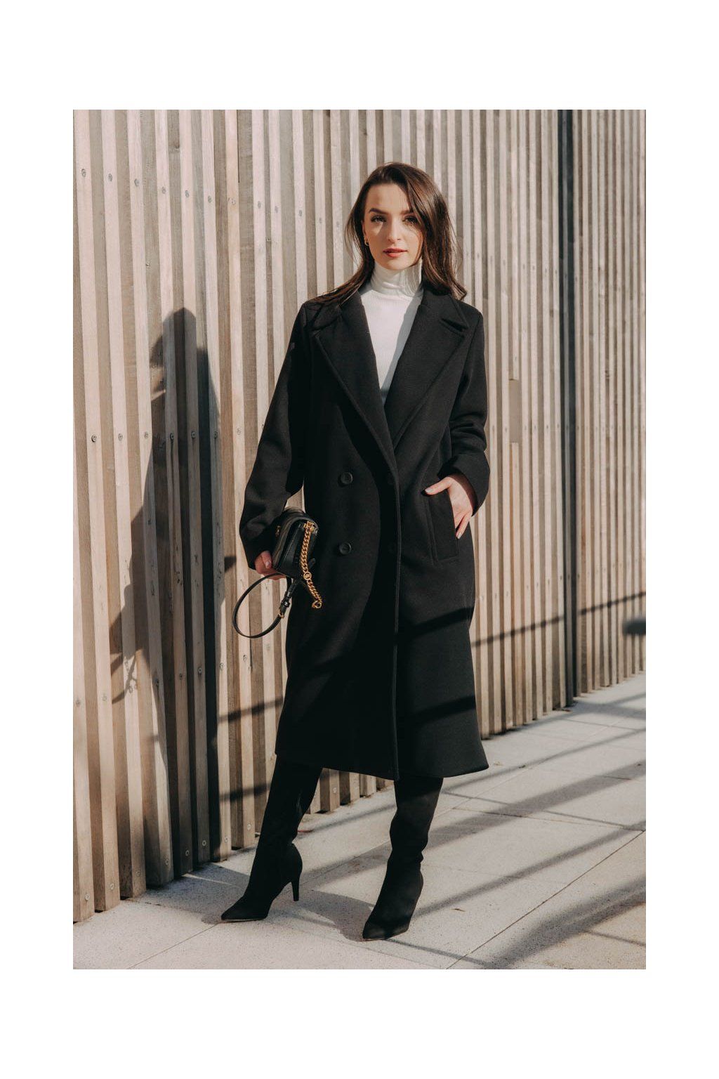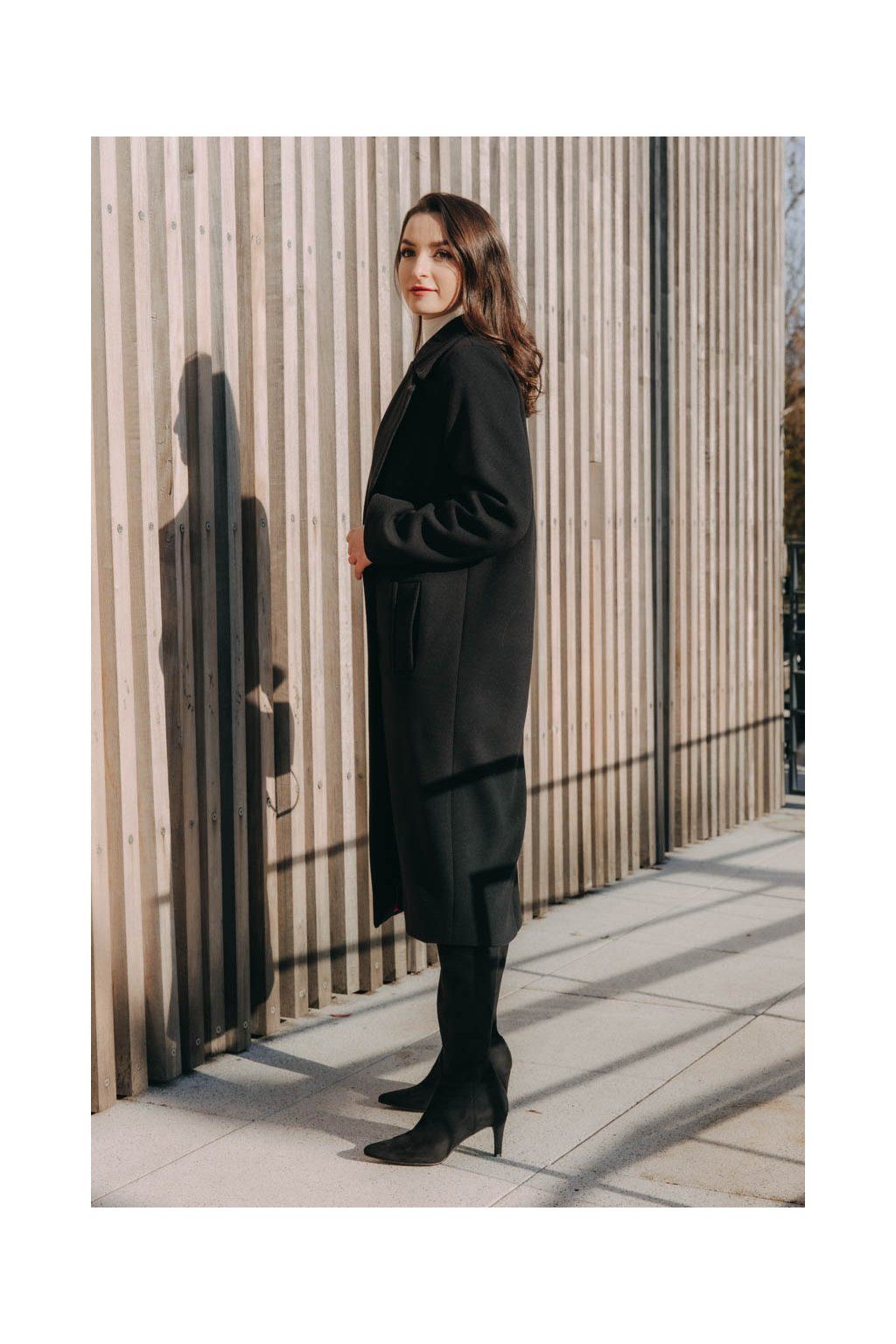 Rovný střih, umocněný poctivou délkou do půlky lýtek, si tak trošku skrytě pohrává s otázkou mužského elementu. Taky díky tomu se kabát perfektně hodí ke kozačkám nebo botám na vyšším podpatku, kdy nejlépe vynikne ten kontrast s vaší ženskostí.