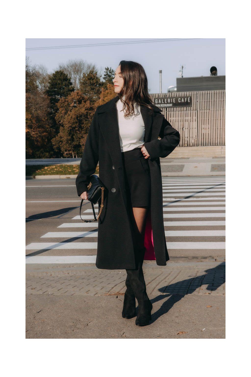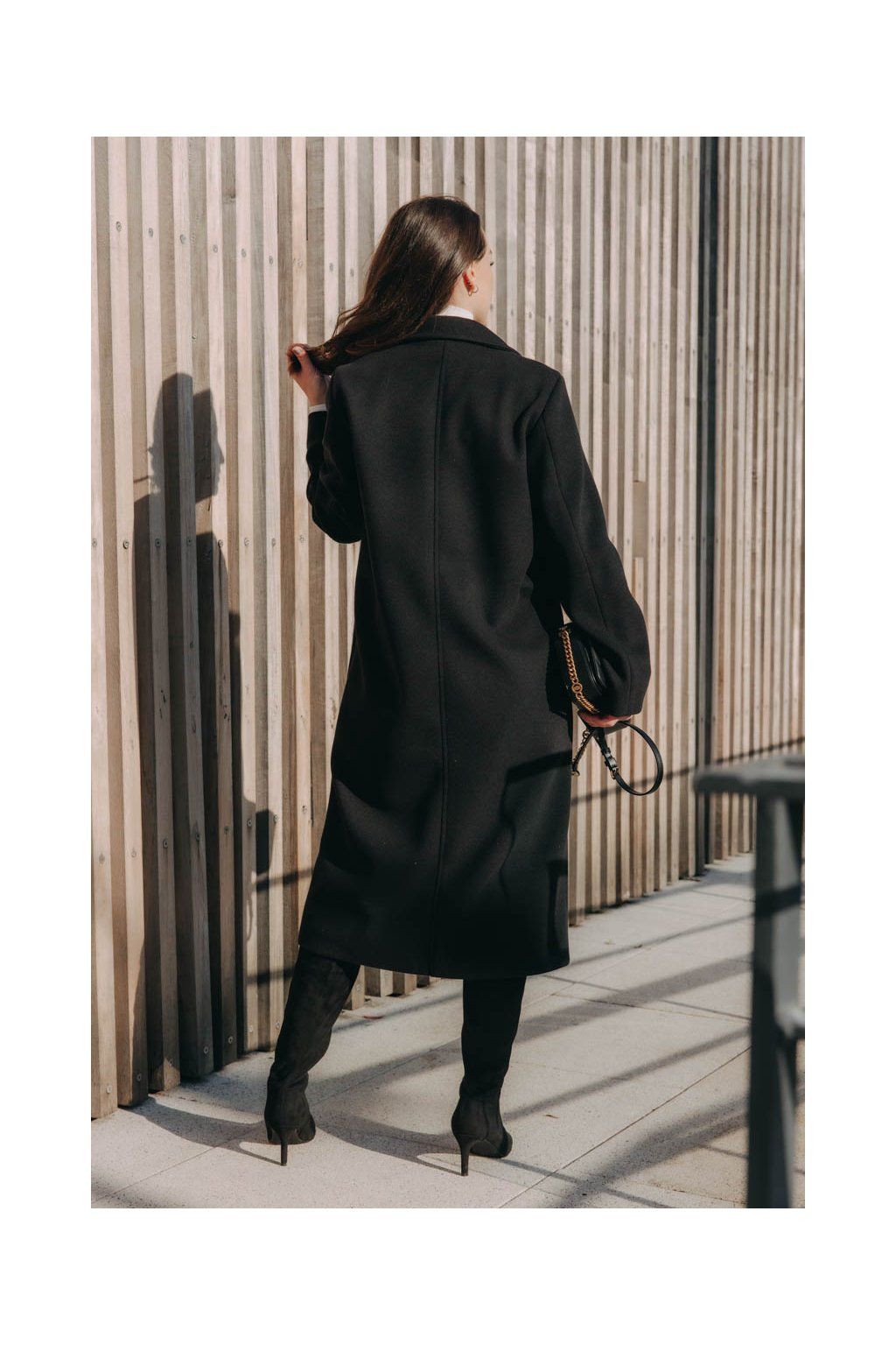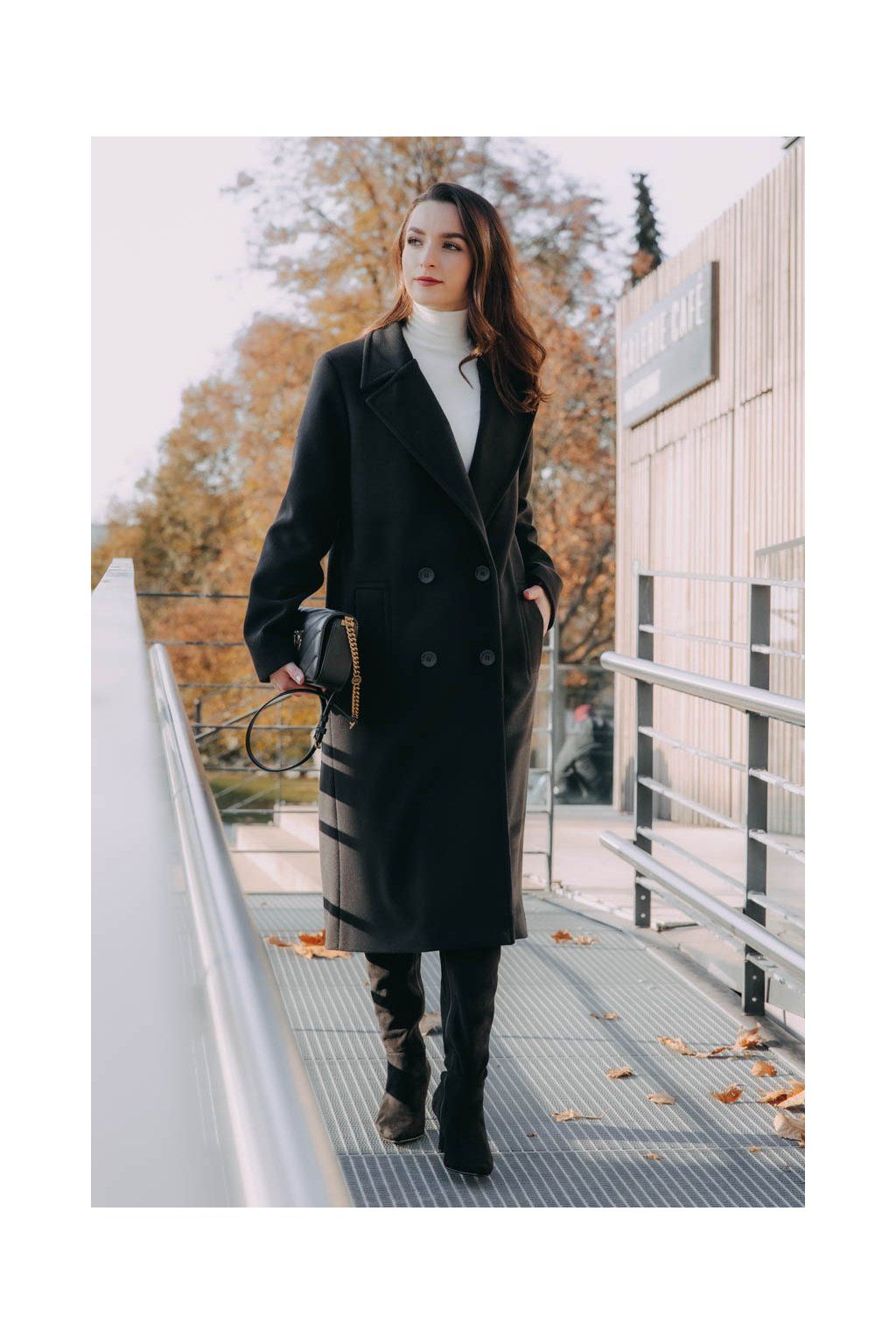 Rovný střih, umocněný poctivou délkou do půlky lýtek, si tak trošku skrytě pohrává s otázkou mužského elementu. Taky díky tomu se kabát perfektně hodí ke kozačkám nebo botám na vyšším podpatku, kdy nejlépe vynikne ten kontrast s vaší ženskostí.