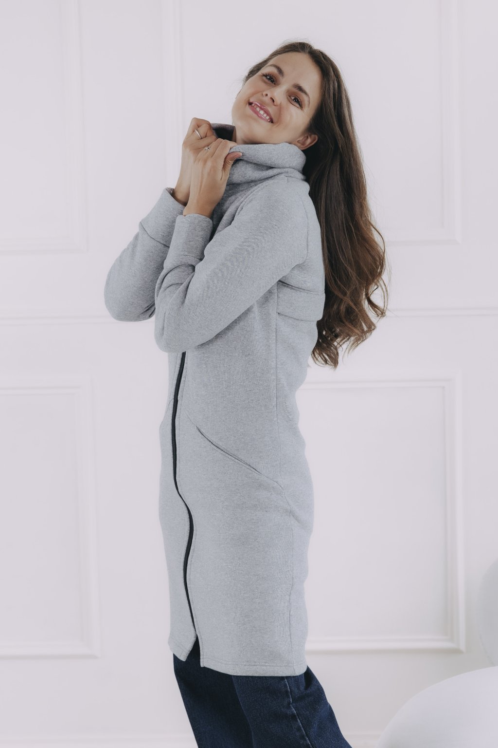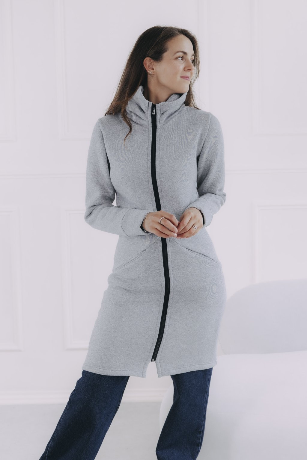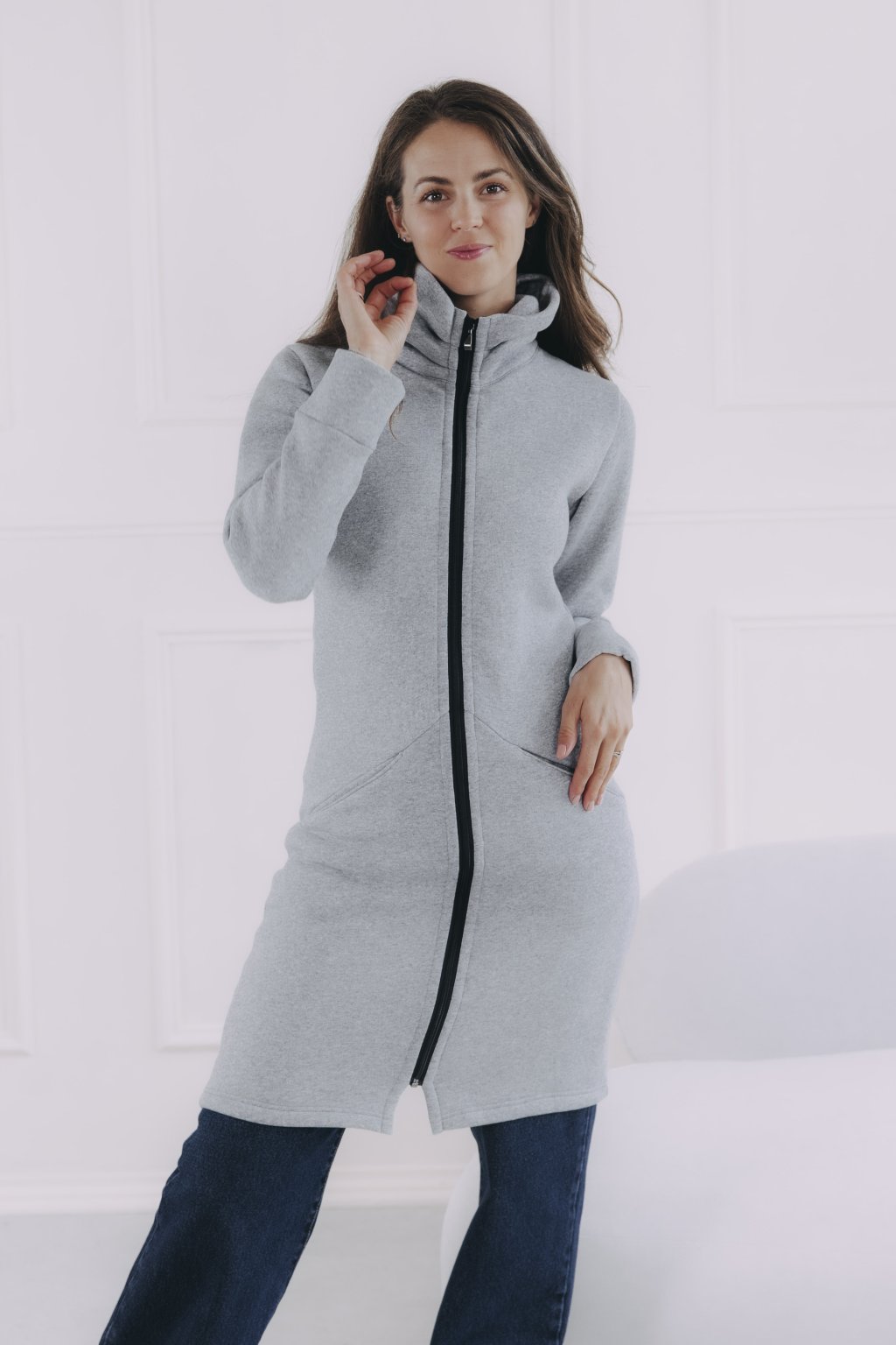 Šedý mikinový kabátek na zip Dada je celoroční kousek, který využijete jako svrchní vrstvu, i jako hřejivý základ pod dlouhou bundu či vestu.