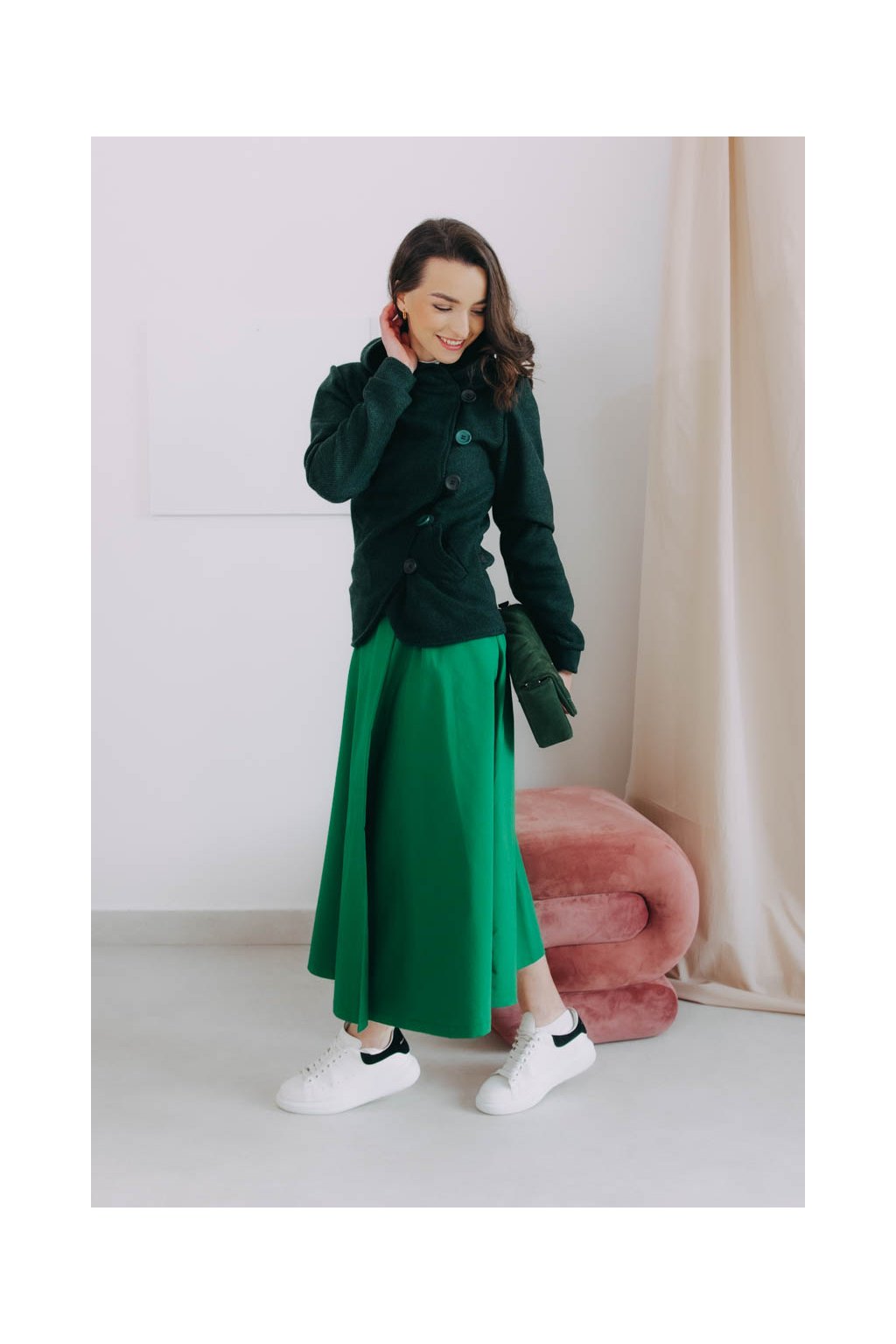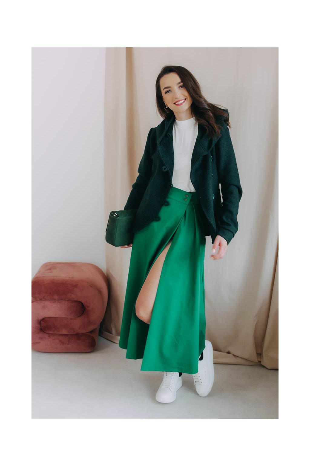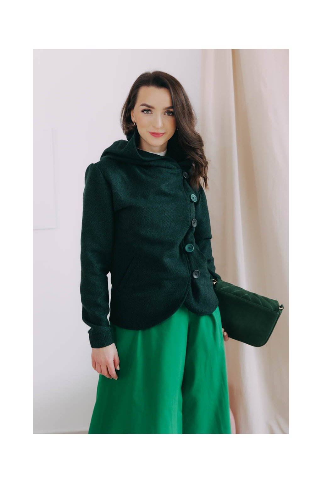 Ačkoli tahle zelená patří mezi tmavší odstíny, díky sofistikovanému nadčasovému vzoru rybí kosti je k nepřehlédnutí. Bezva vynikne v outfitu laděném tón v tónu, ale luxusně působí i v tandemu třeba s bordó, mintovou nebo hořčicovou.