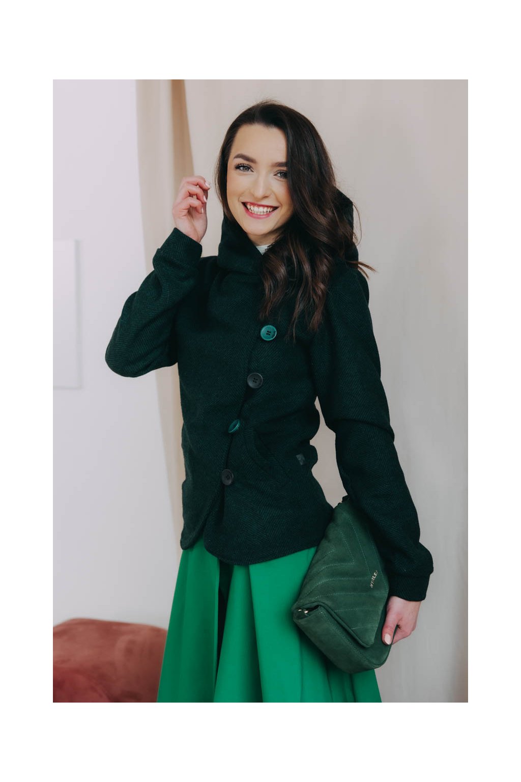 Ušili jsme ho z kabátoviny vyšší gramáže (podobné, z jaké je třeba kabátek Sable), aby vám hlavně v chladných jarních a podzimních dnech dělal nejen parádu, ale poskytl taky příjemné teplo.