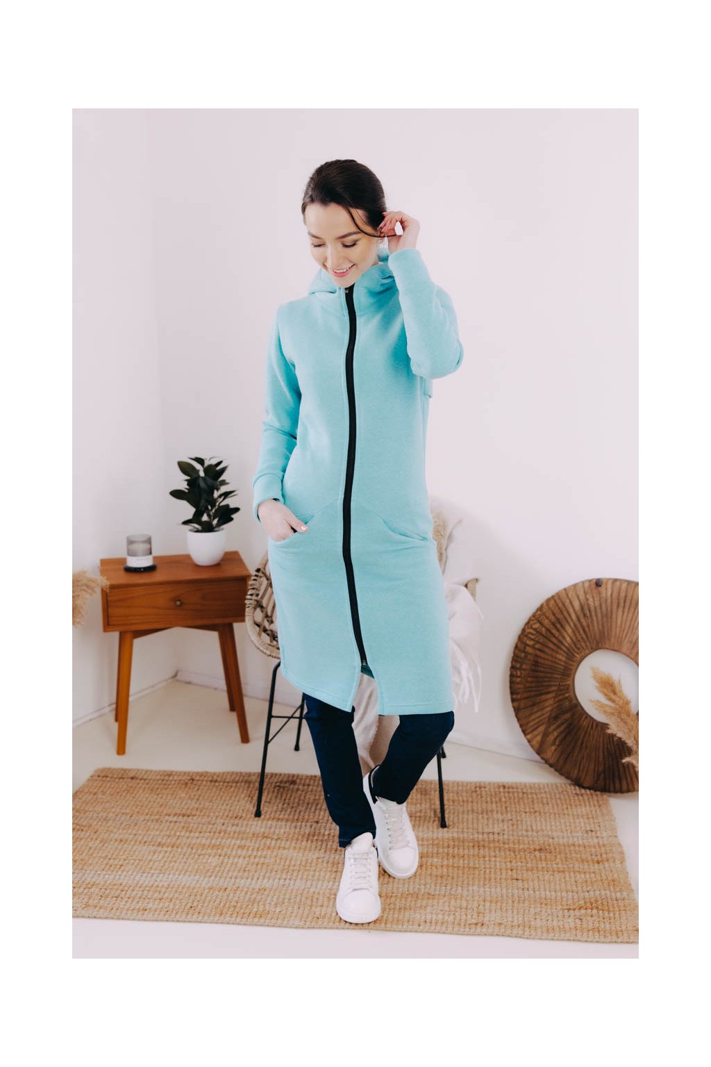 XS: prsa 94 cm, pas 80 cm, boky 98 cm, délka rukávu 64 cm, celková délka 98 cm
