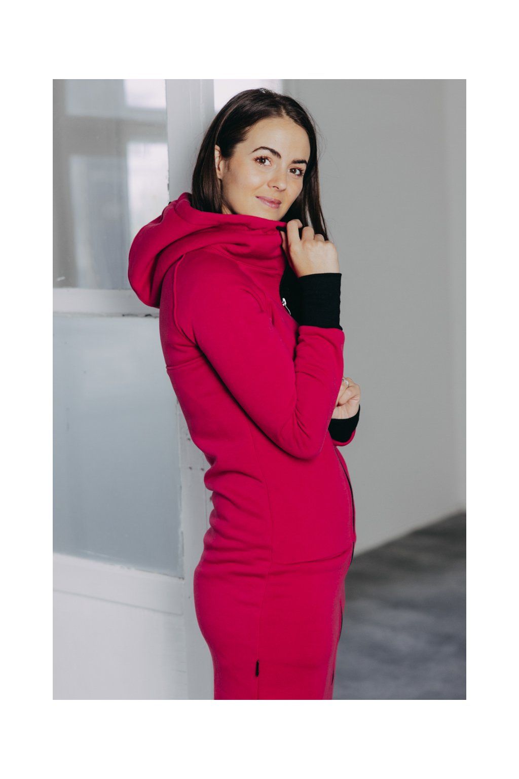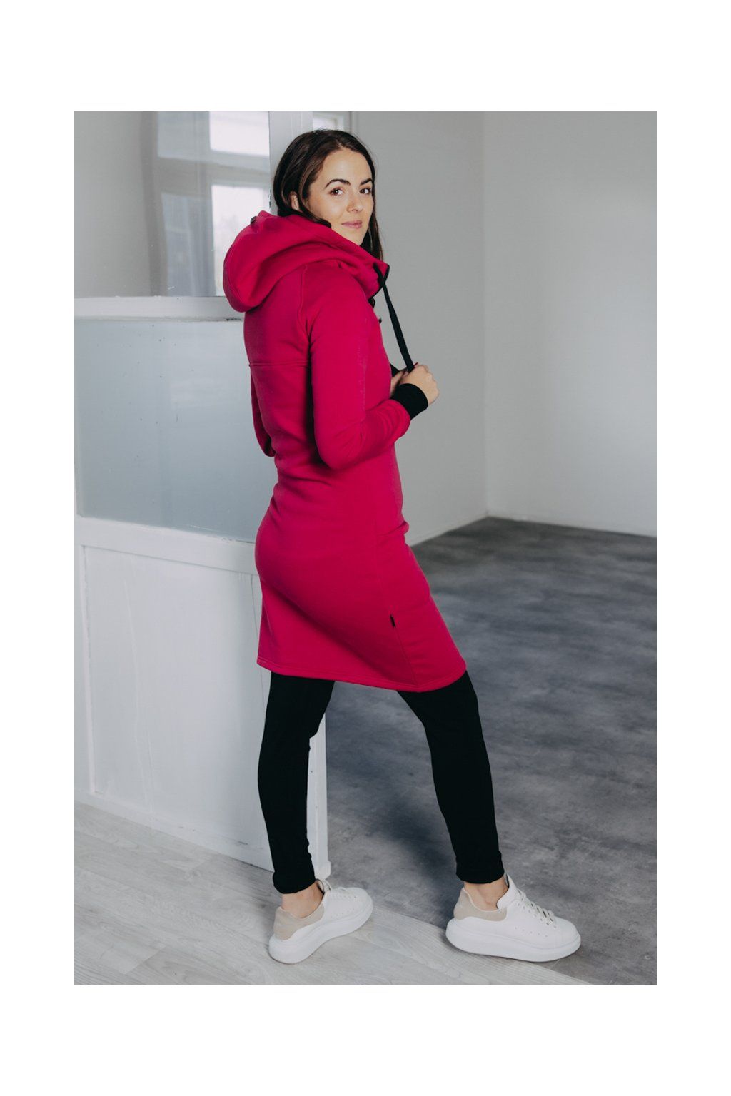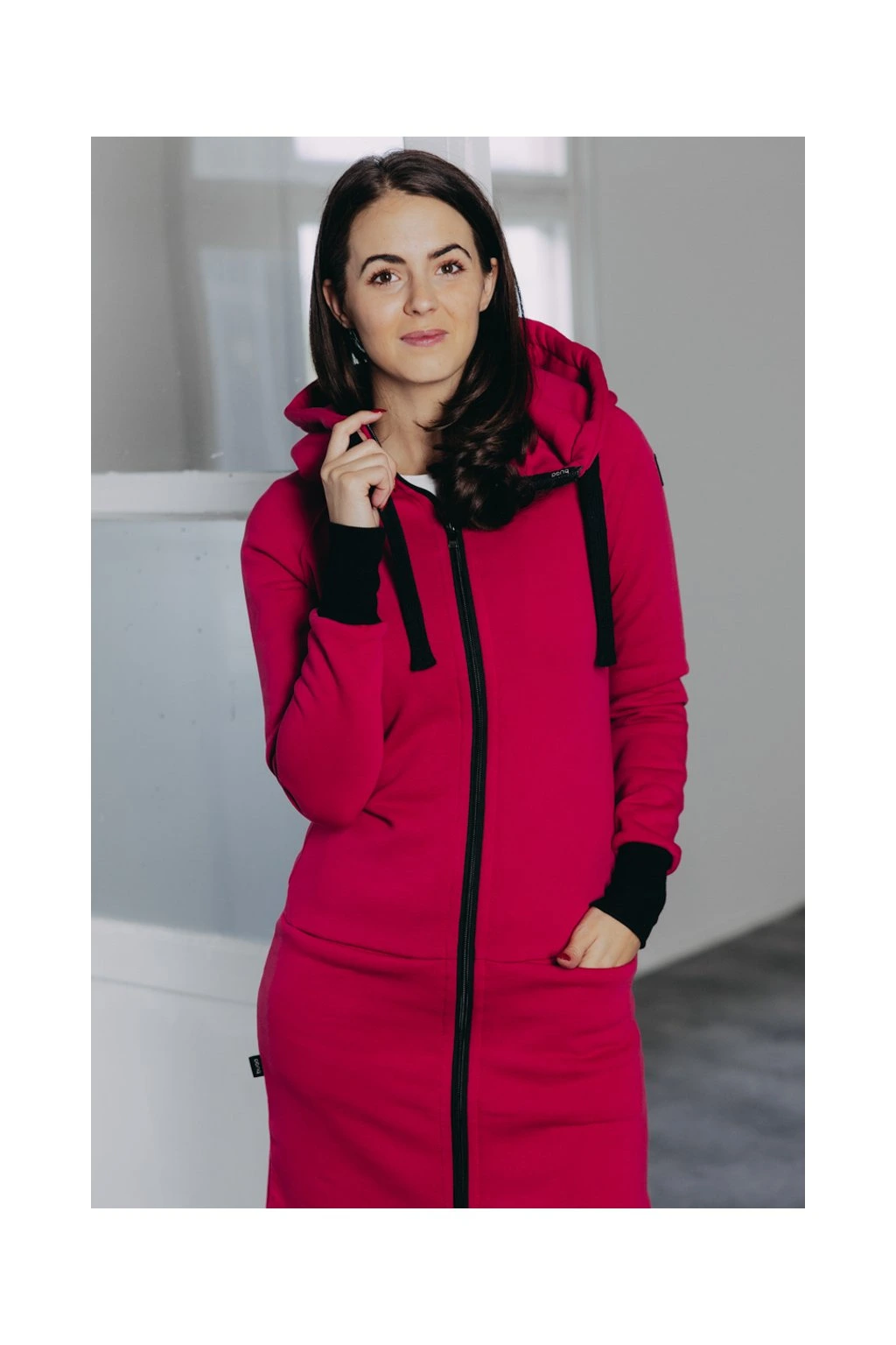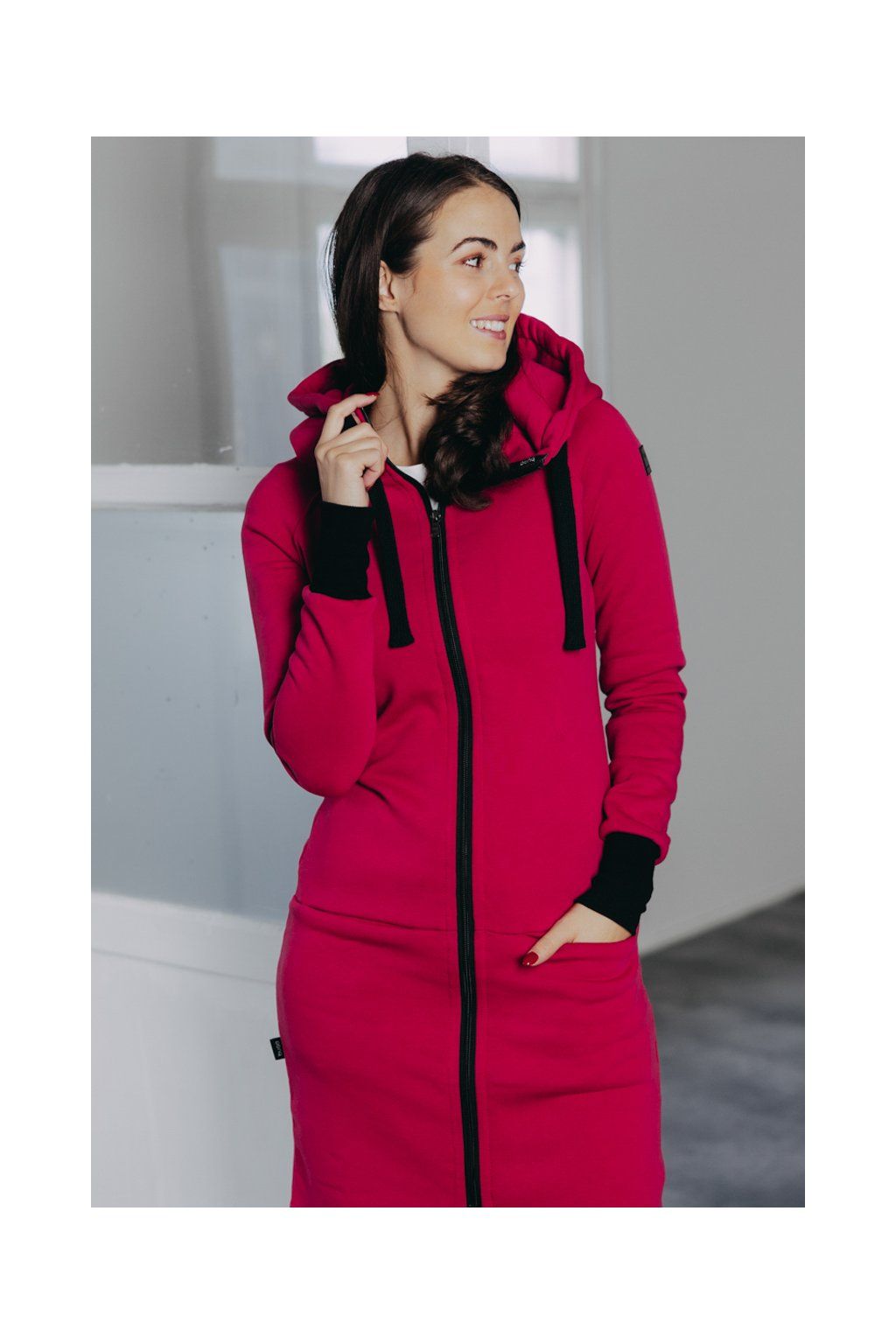 Ušili jsme jej z česané hřejivé bavlny s maličkou příměsí polyesteru, aby pěkně obepnul křivky postavy. Díky jemnému tvarování v pase vytvaruje pěknou postavu i ženám s plnějšími křivkami.