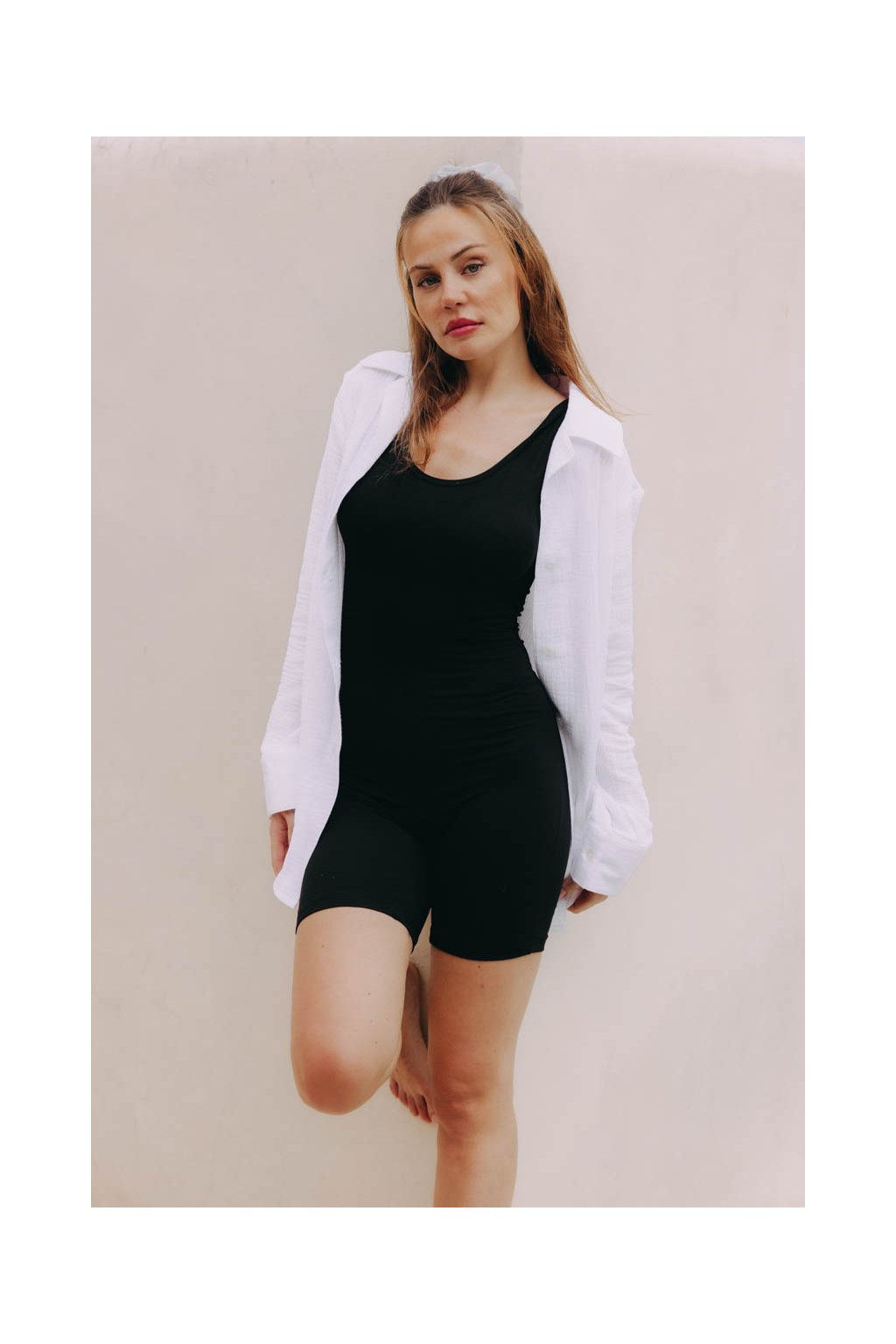 Jumpsuit Bayo je černý overal na tělo, který skvěle poslouží na nejedné dovolené. Pevný a pružný tak akorát, abyste se v něm cítily naprosto dokonale.