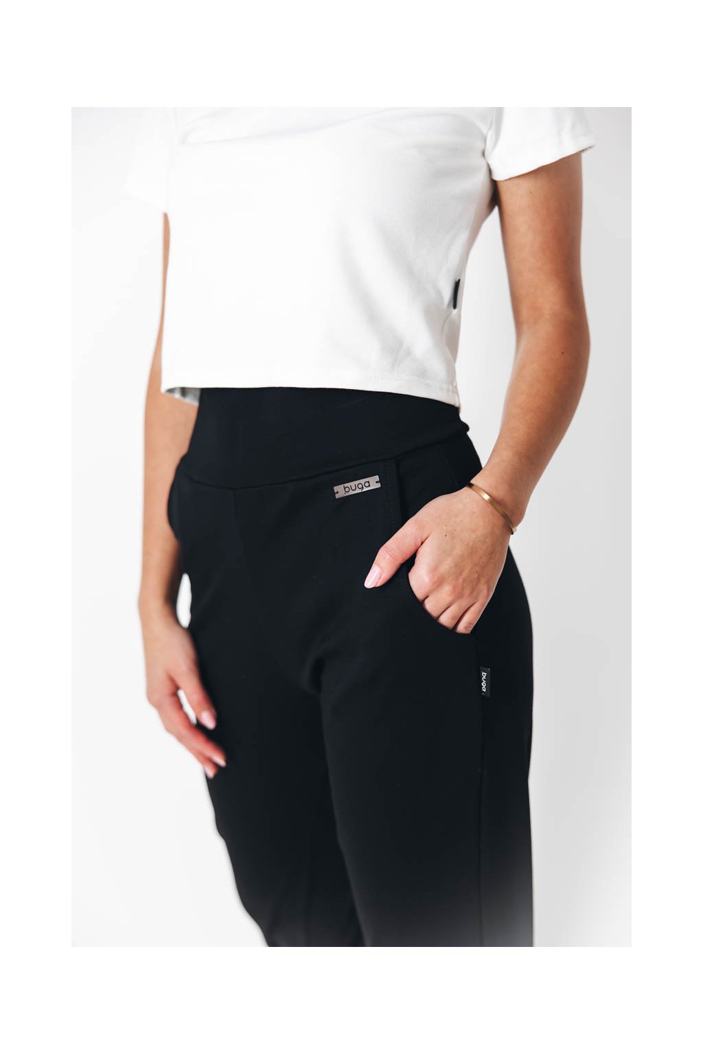 Kalhoty Arifu jsou nejnovějším přírůstkem do rodiny pohodlných a elegantních Buga kousků. Tyhle černé krásky střihem vycházejí z oblíbeného modelu Ummi. Stejně parádně tvarují zadeček a díky pružnému nápletu nenápadně schovávají bříško. Jsou ale o něco kratší, takže se v nich neupečete, i když se sluníčko zrovna rozpálí.