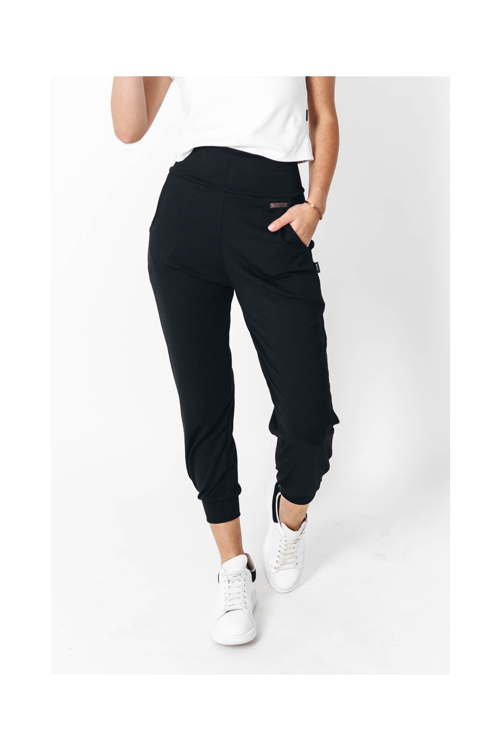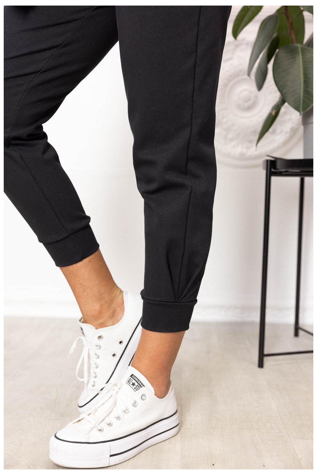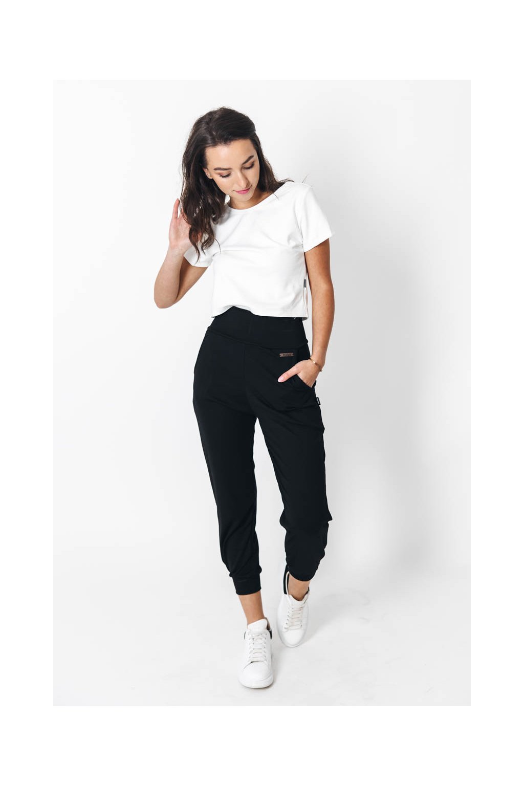 Při výběru materiálu jsme tentokrát sáhli po certifikované GOTS bavlně s vysokou gramáží s malou příměsí elastanu. Kalhoty nikde netlačí, nevytahují se a ani nemačkají, takže vám odpadne starost s žehlením.