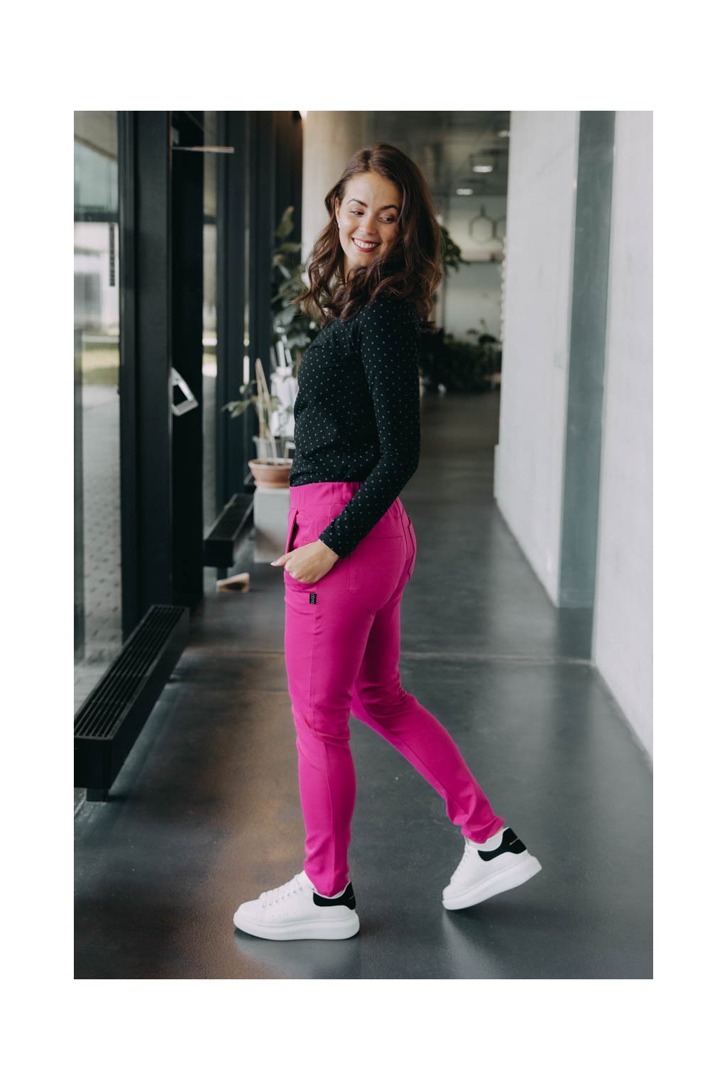 Mysleli jsme na všechna ženská trápení s kalhotami a navrhli takové, které si zamilujete stejně jako my v Buga. Kalhoty Elli vycházejí ze střihu našich Reece, pouze jsme změnili materiál, jemně kalhoty zúžili a přidali další dvě kapsy. Žádné knoflíky ani zip, dokonale pohodlná a pružná viskóza v kombinaci s nylonem a spandexem, která se nemačká, nežmolkuje a drží si svůj tvar i při větším tlaku kolen.