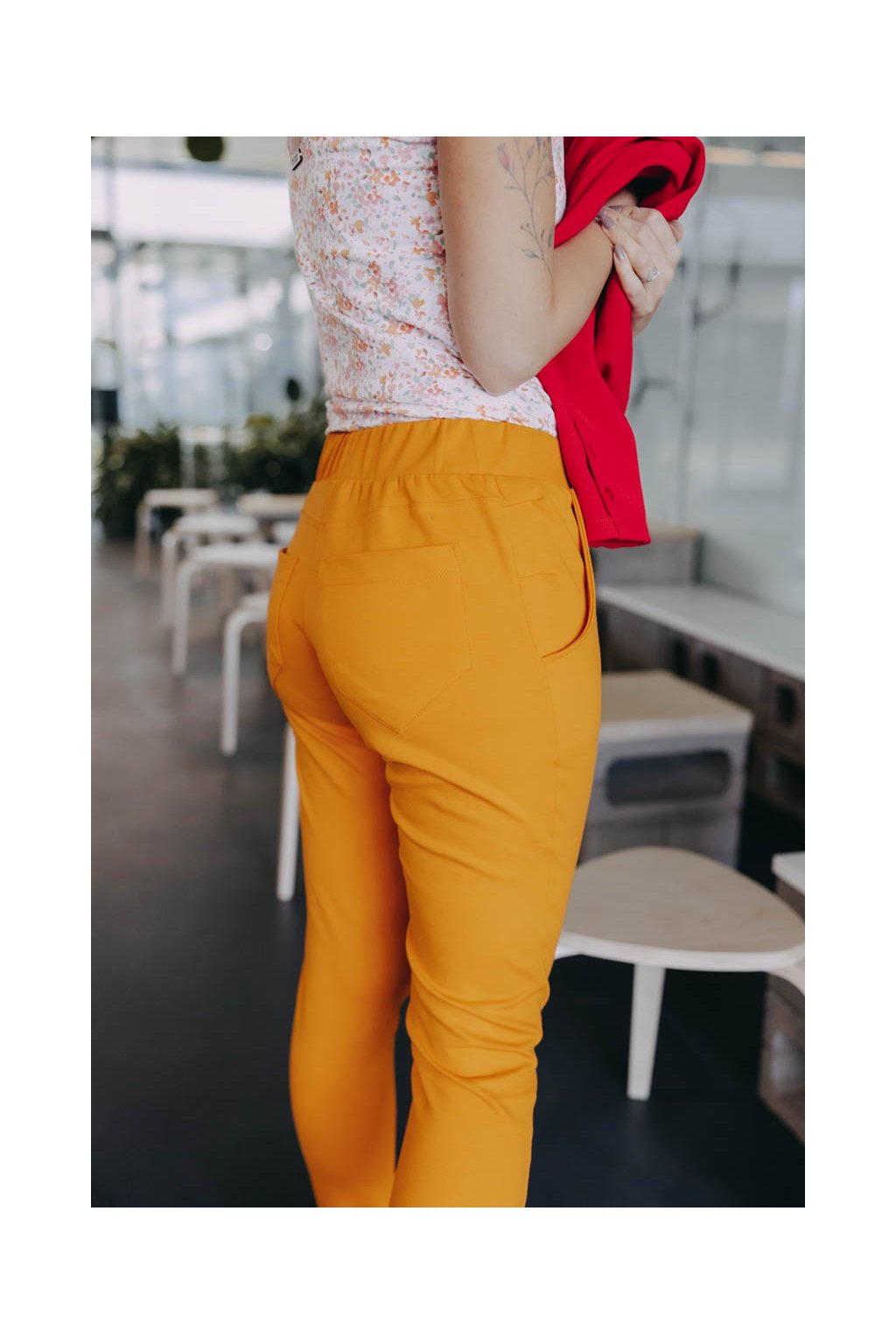 Mysleli jsme na všechna ženská trápení s kalhotami a navrhli takové, které si zamilujete stejně jako my v Buga. Kalhoty Elli vycházejí ze střihu našich Reece, pouze jsme změnili materiál, jemně kalhoty zúžili a přidali další dvě kapsy. Žádné knoflíky ani zip, dokonale pohodlná a pružná viskóza v kombinaci s nylonem a spandexem, která se nemačká, nežmolkuje a drží si svůj tvar i při větším tlaku kolen.