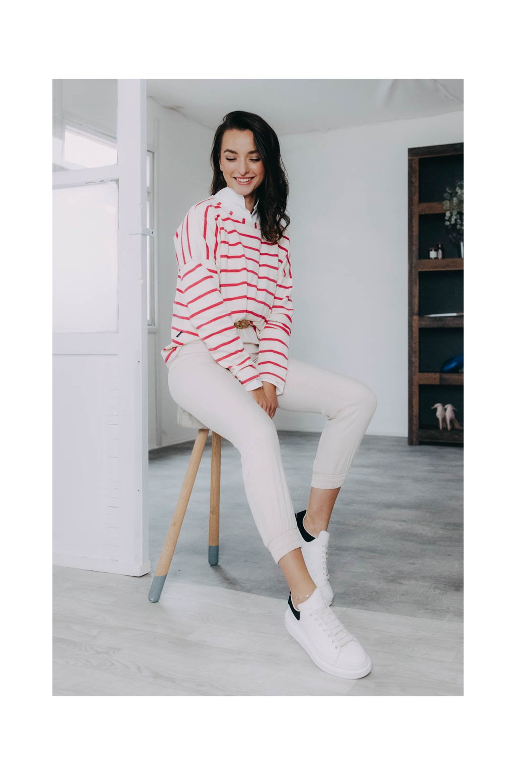 Viskóza je poloumělé vlákno, které se vyrábí z celulózy získané nejčastěji z přírodního dřeva nebo z bavlny. Viskózová pletenina je oblíbenou alternativou k přírodním materiálům, protože má mnoho výhod – je vhodná pro alergiky, krásně měkká, prodyšná, budete se v ní cítit pohodlně, perfektně vám sedne a nežmolkuje se. Je také na omak hebčí, splývavější a lesklejší než například bavlna. V létě vás bude chránit před přehřátím svým chladivým účinkem a díky své savosti vás podrží i v náročnějších dnech. Netvoří se v ní statická elektřina, takže nepřitahuje smítka a chlupy, což ocení hlavně majitelky domácích zvířat. Viskóza nemá zrovna moc ráda sušičku ani žehlení.