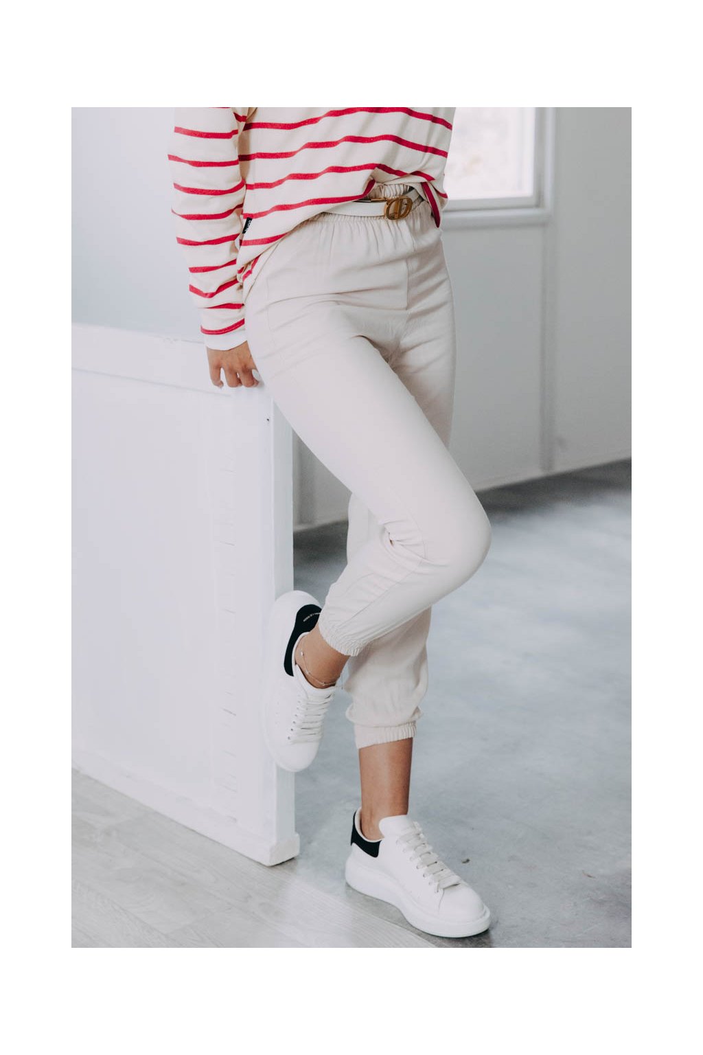 Kalhoty v létě? A vlastně proč ne? 7/8 kalhoty Hisia Beige s pružným pasem a gumičkami na koncích nohavic jsou pohodlnou letní trefou do černého.