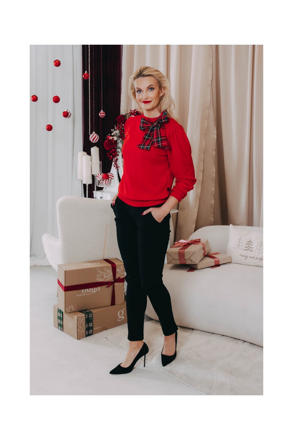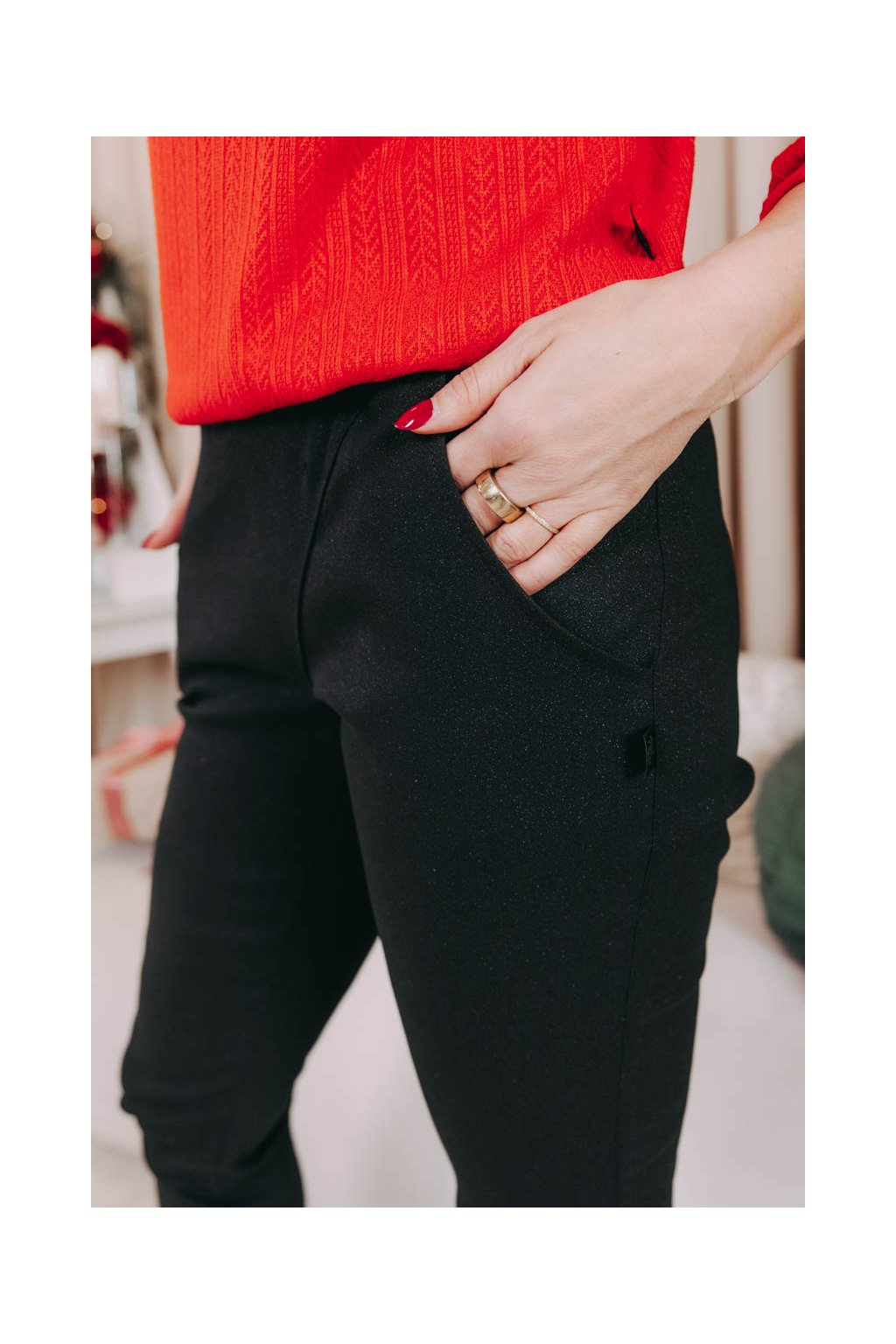Kalhoty Reece skvěle padnou, nikde netlačí, nemačkají se a drží tvar. Jemné třpytky jim dodávají sváteční nádech. Elegantní základ pro stylové kouzlení.