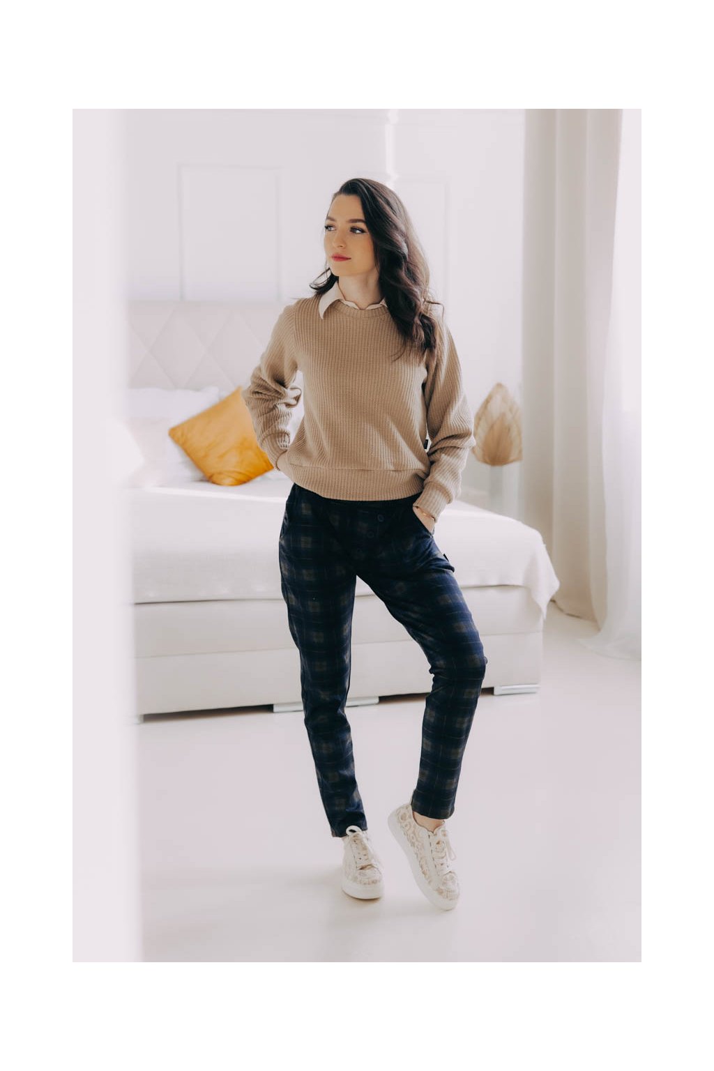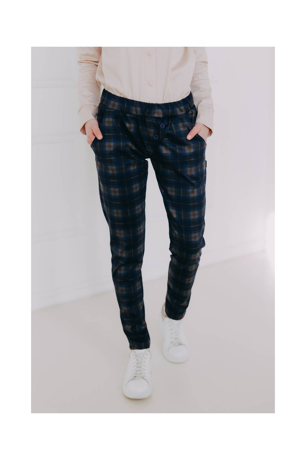 Kalhoty Reece skvěle padnou, nikde netlačí, nemačkají se a drží tvar. Doplněné o ozdobné knoflíky a malé kapsy vytvoří skvělý základ každého outfitu.