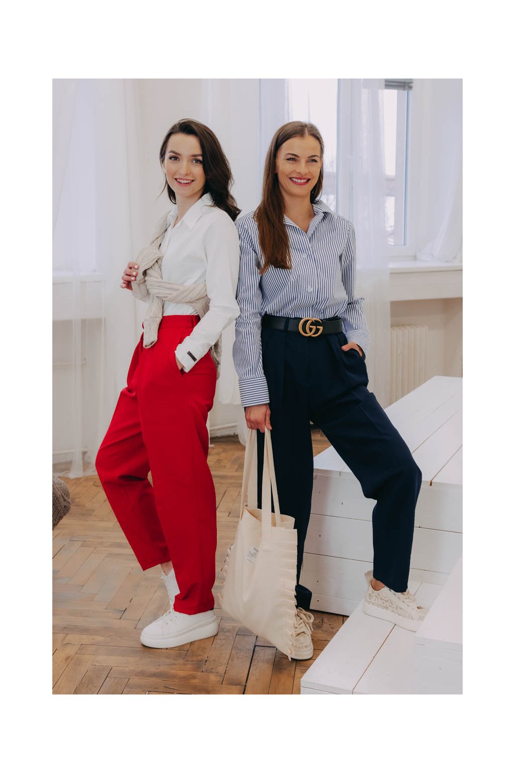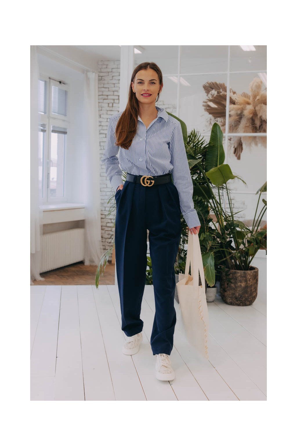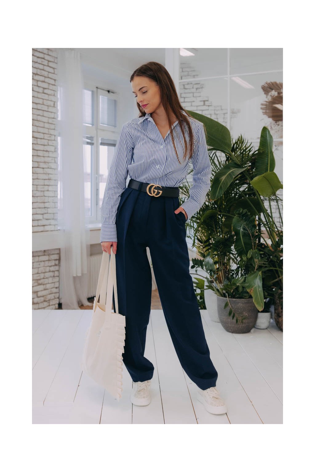 Pevné kalhoty Sanyu jsou bez gumy, na zip a patentku a širšího mrkvového střihu. Perfektně padnou všem rebelkám, které si libují v pánském stylu oblékání.