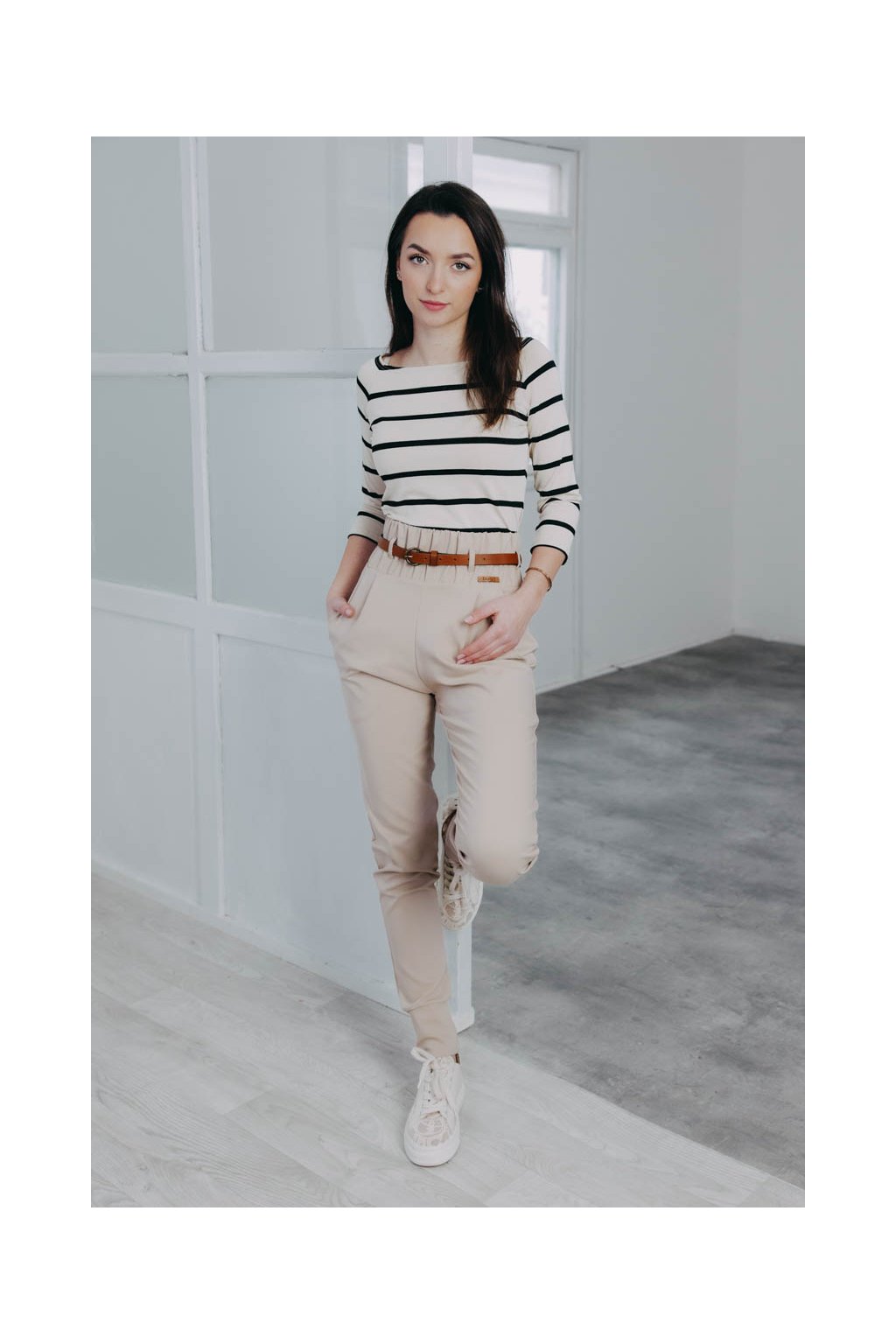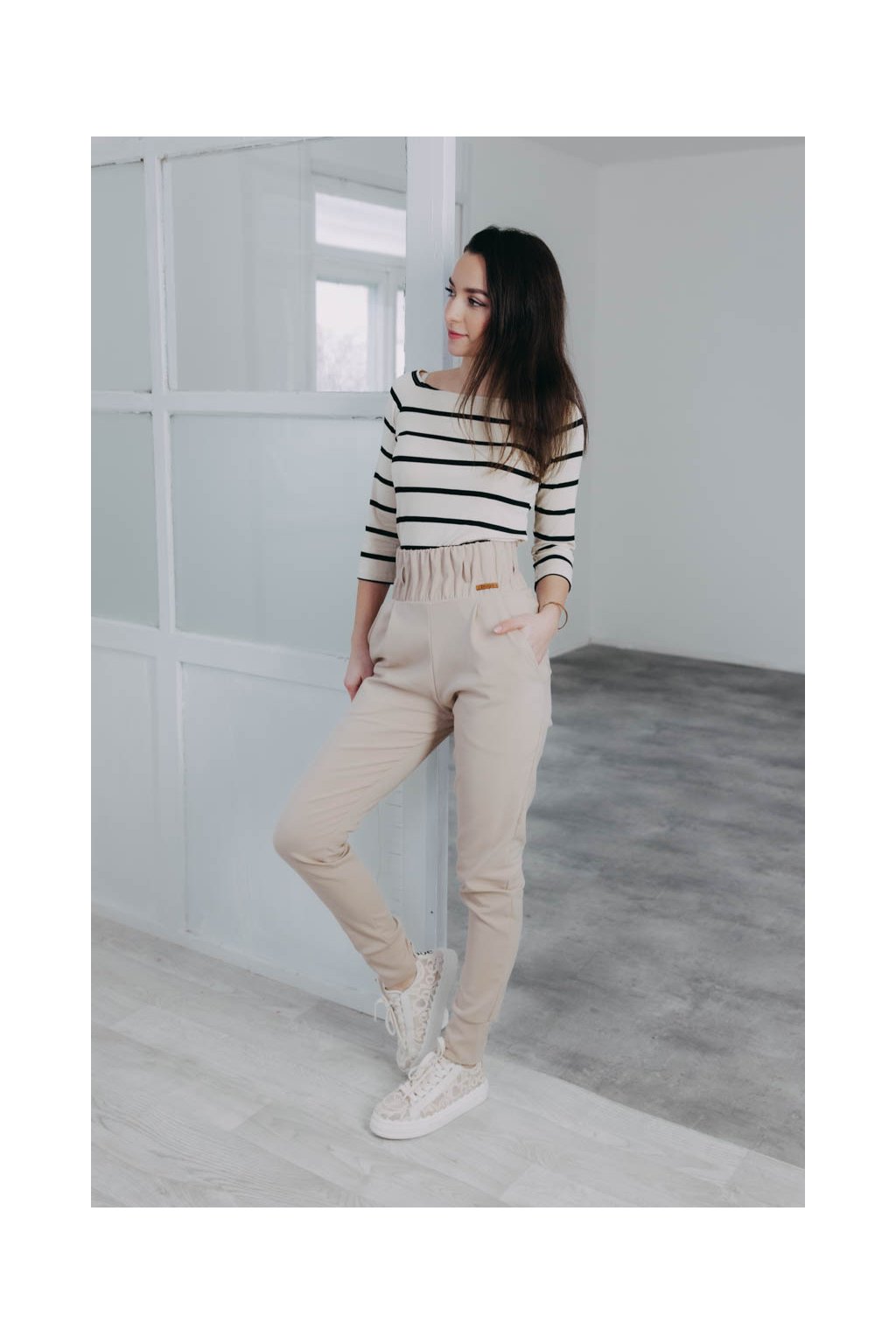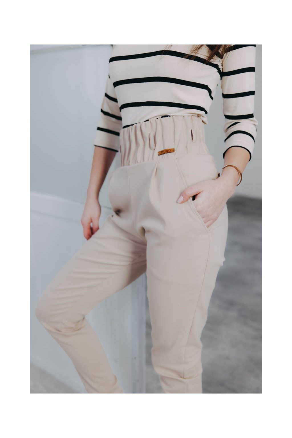 Shara hrají prim v kalhotové eleganci. Vysoký pas se širokou a efektně prošívanou gumou krásně zdůrazní křivky a budete s v nich cítit extrémně příjemně.