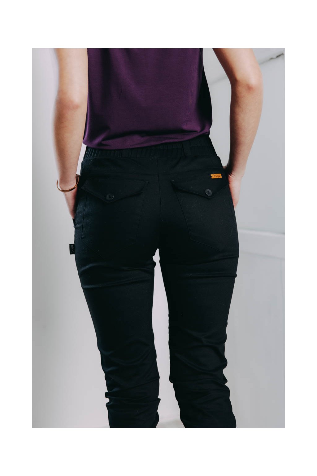 Kalhoty Wisal Black už na pohled zaujmou výraznými zadními kapsami. Když si je obléknete, zjistíte, že nejen dobře vypadají, ale že se v nich i dobře cítíte.
