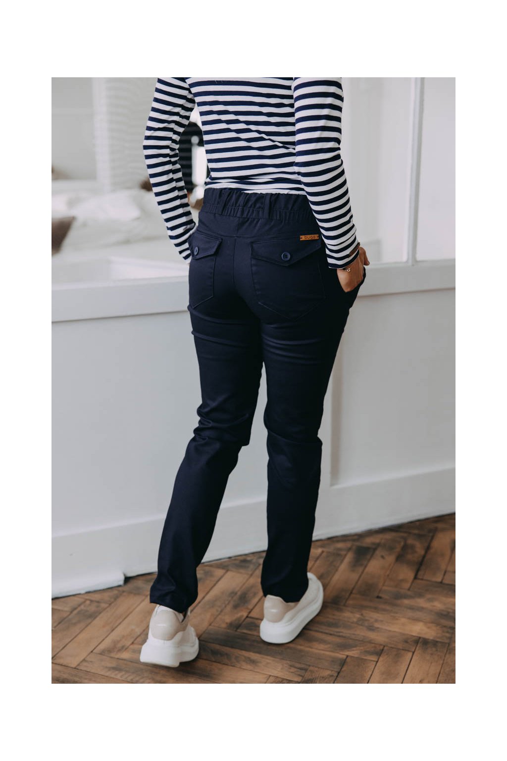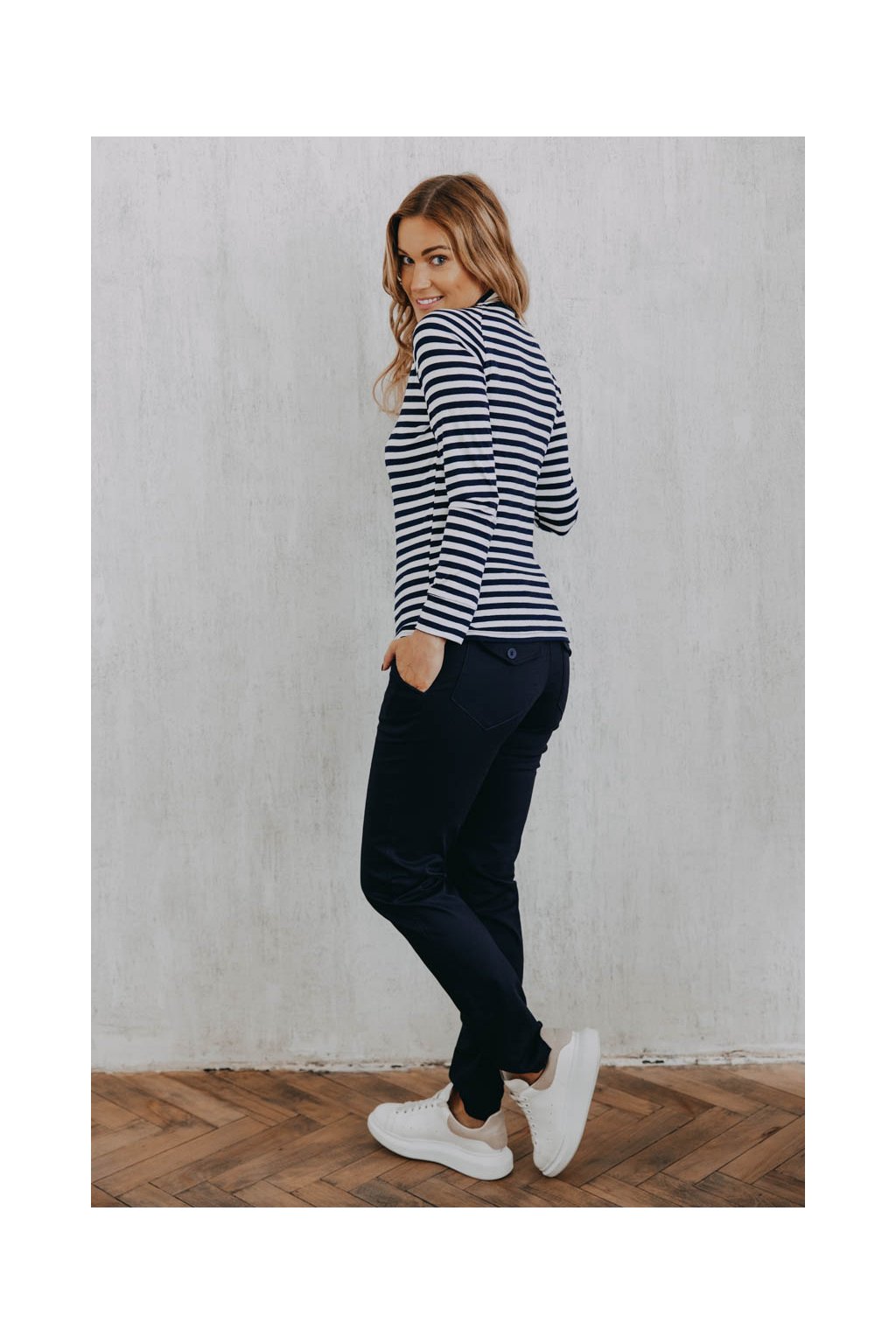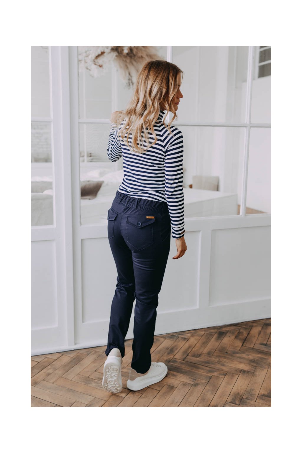 Kalhoty Wisal Navy už na pohled zaujmou výraznými zadními kapsami. Když si je obléknete, zjistíte, že nejen dobře vypadají, ale že se v nich i dobře cítíte.