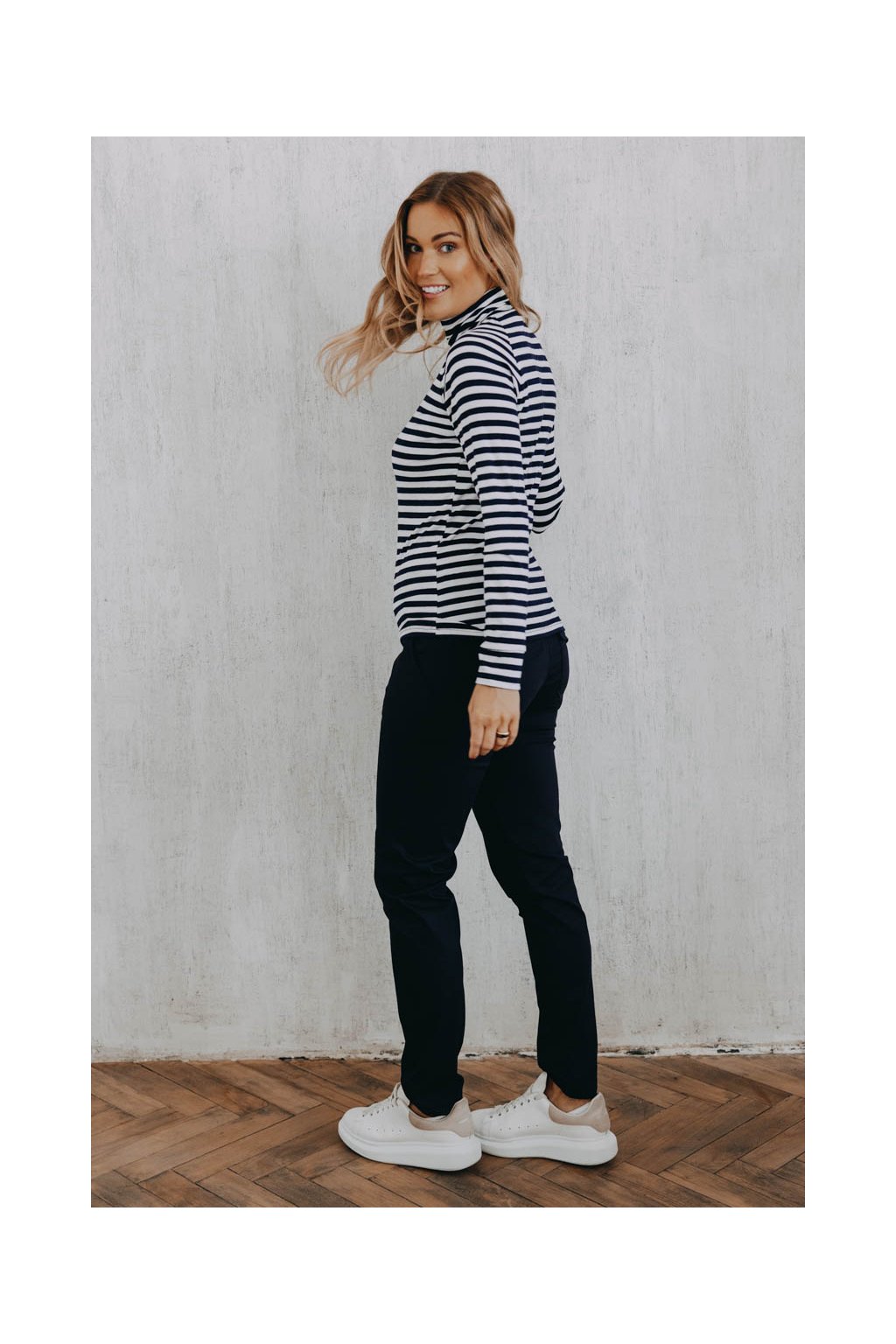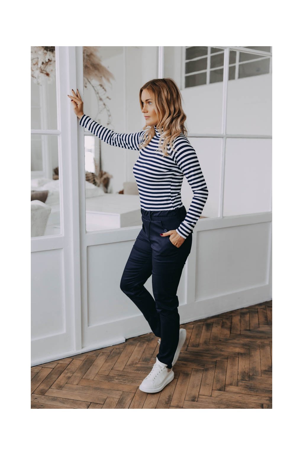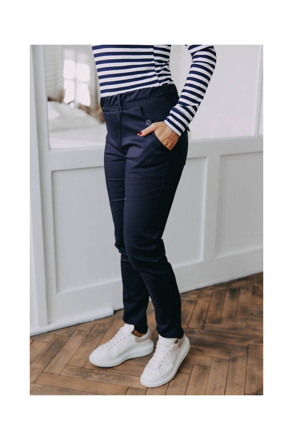 Kalhoty Wisal Navy už na pohled zaujmou výraznými zadními kapsami. Když si je obléknete, zjistíte, že nejen dobře vypadají, ale že se v nich i dobře cítíte.