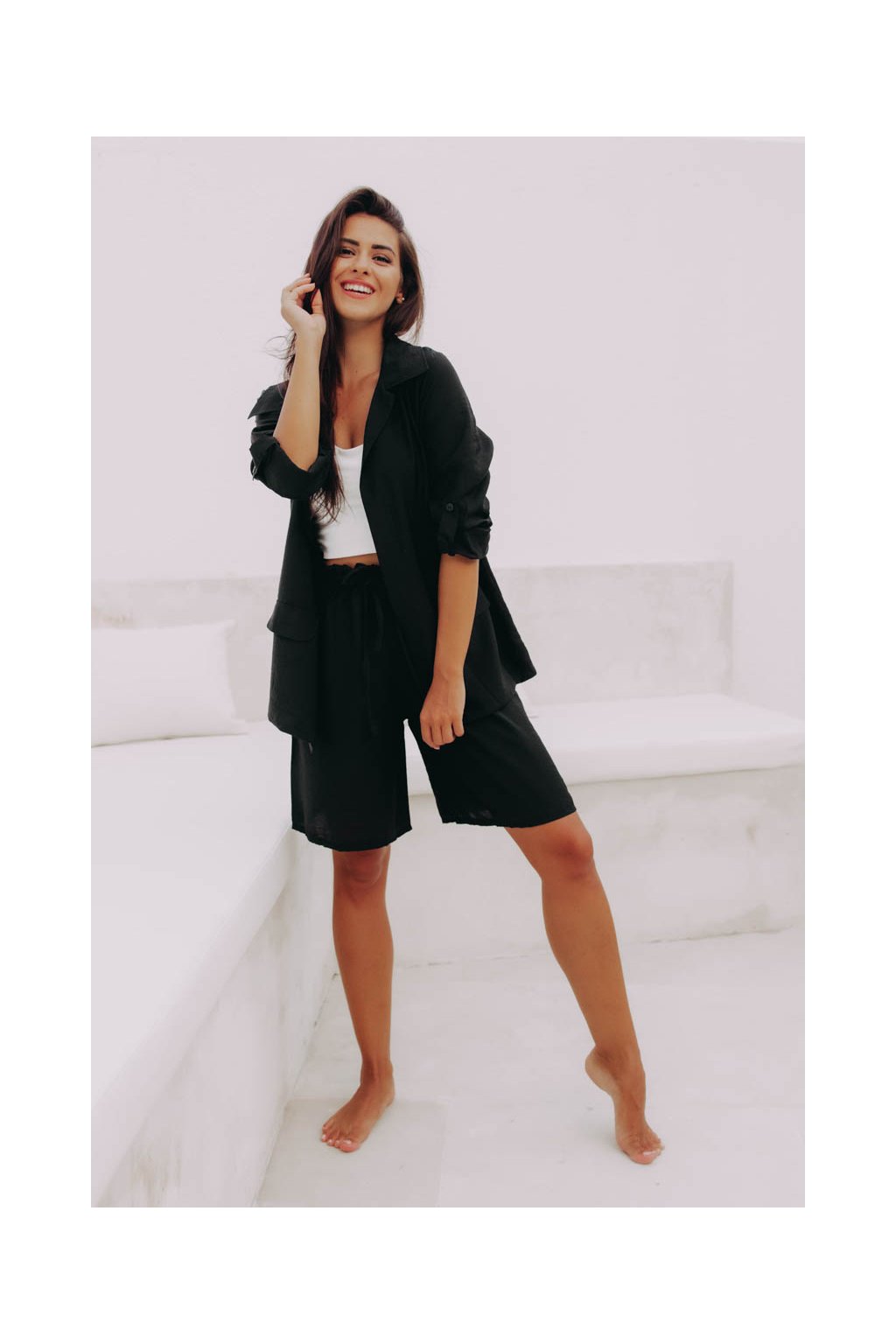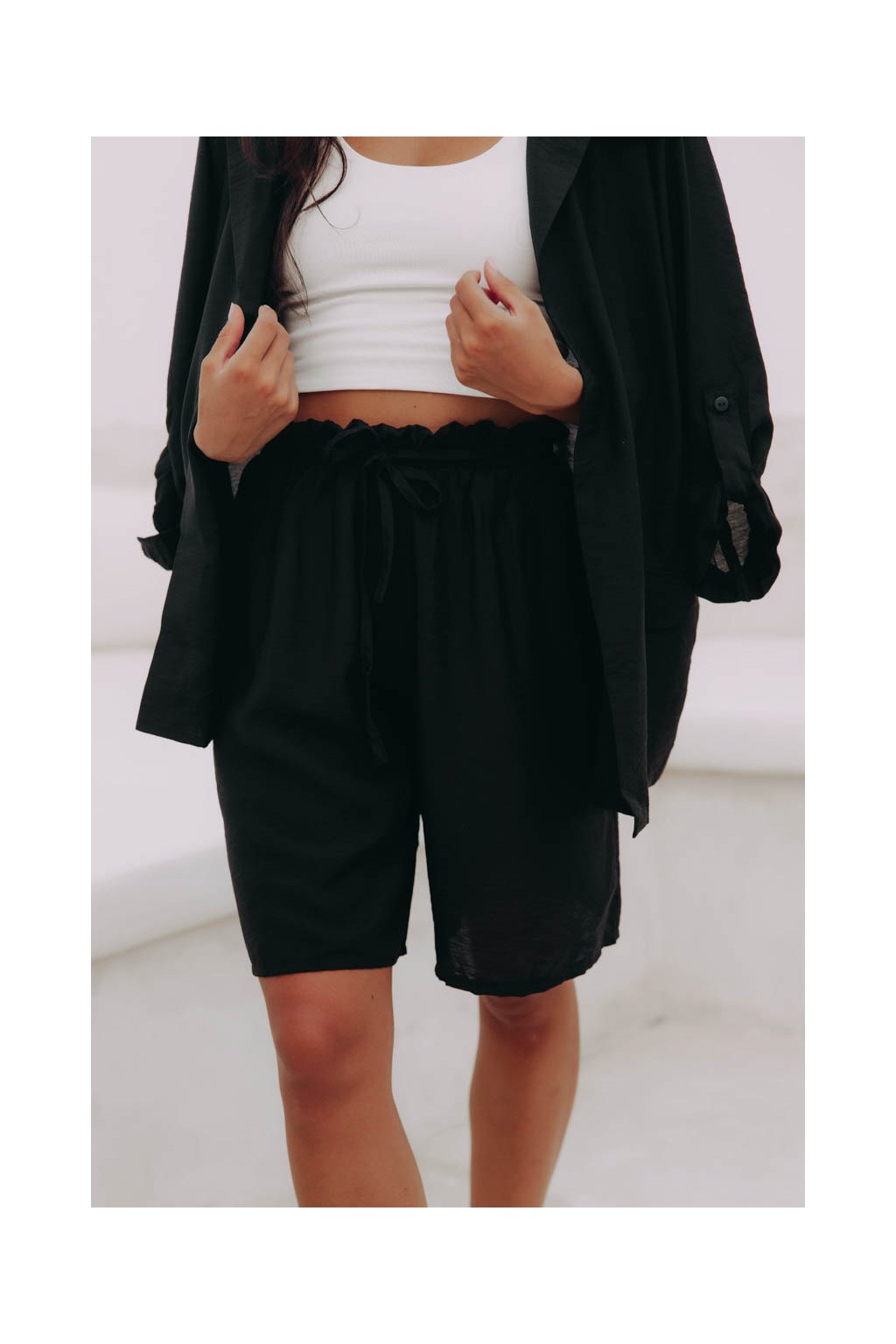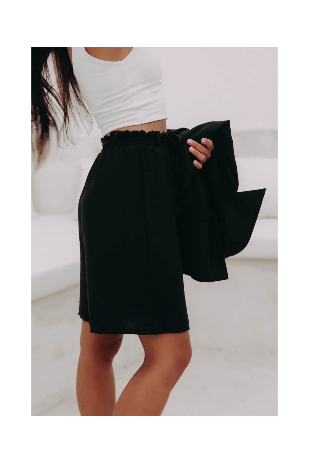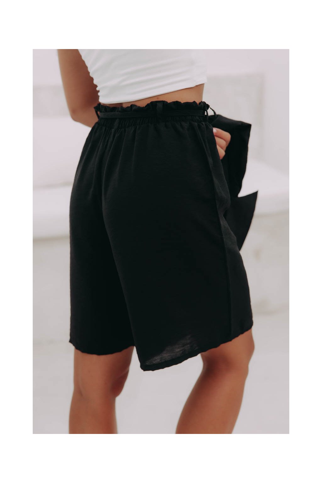 Pohodlné kraťasy s elegantním řasením v pase a poutky na pásek jsou svým širokým střihem jako stvořené do tropických dnů.