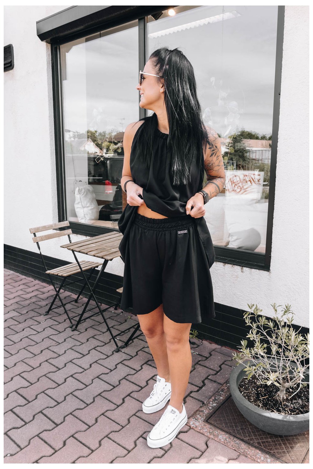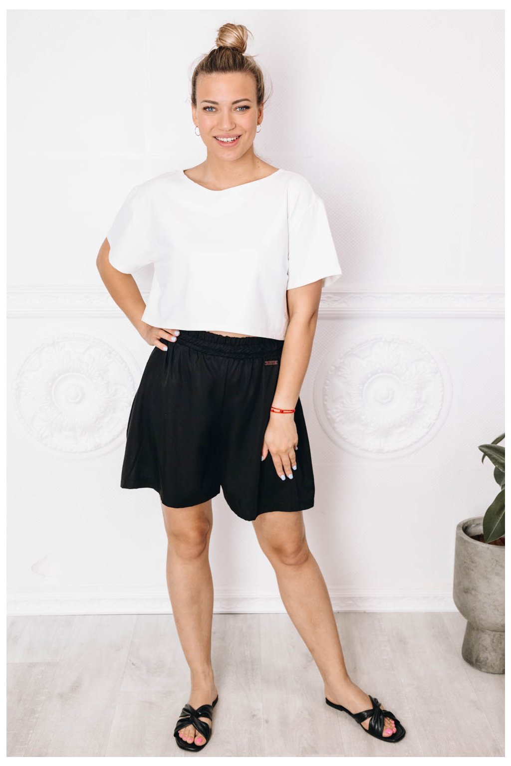 Krásné ženské kraťasy Shana jsou volnějšího střihu a ušité z jemného černého tencelu. Skvěle se kombinují s ležerními i elegantními topy.