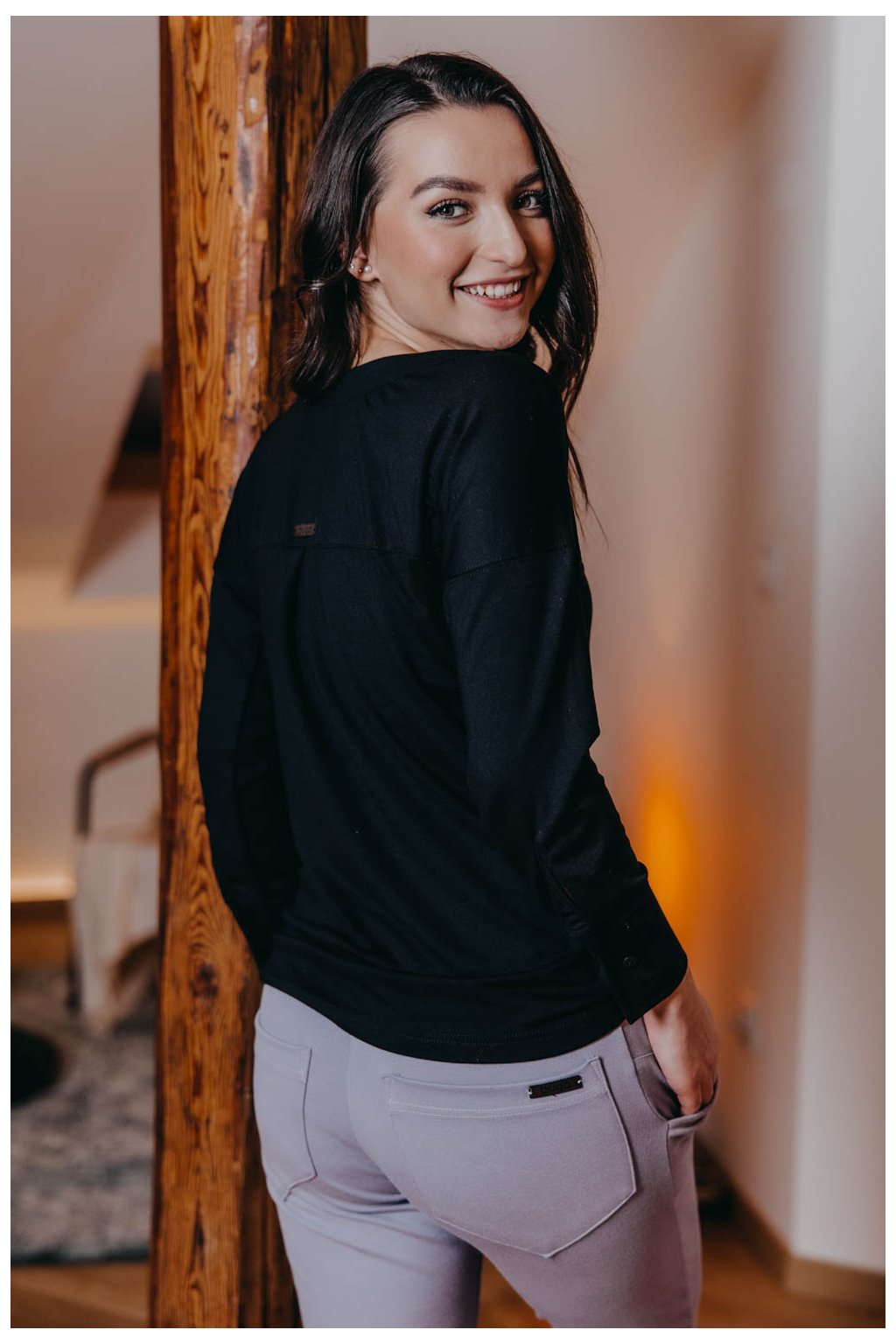 Modelka má na sobě při své výšce 170 cm velikost XS.