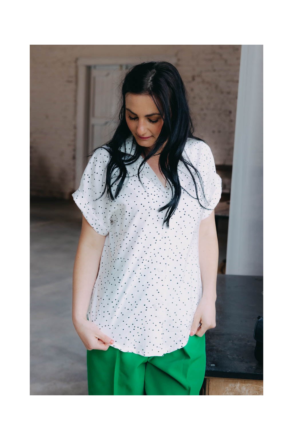 Košile Thembi s krátkým rukávem a drobnými puntíky je díky lehkému a nemačkavému materiálu ideální pro stylové letní outfity.