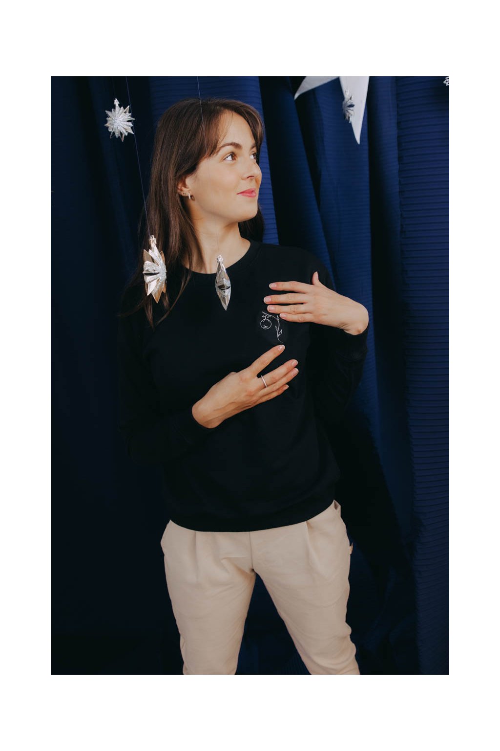 Kvalitní prémiová bavlna je výjimečně jemná, krásně drží tvar a zazáří v každém outfitu. Univerzální černá dokonale doplní každý ležérní outfit, ať už v něm vyrazíte kamkoliv. S mikinou Asata tak můžete zazářit na horách, posichrovat si pohodlí na výletě, vychutnat si kávu nebo punč s kámoškou v zimní zahradě, anebo si jen tak zalenošit s knížkou v křesle nebo u krbu.