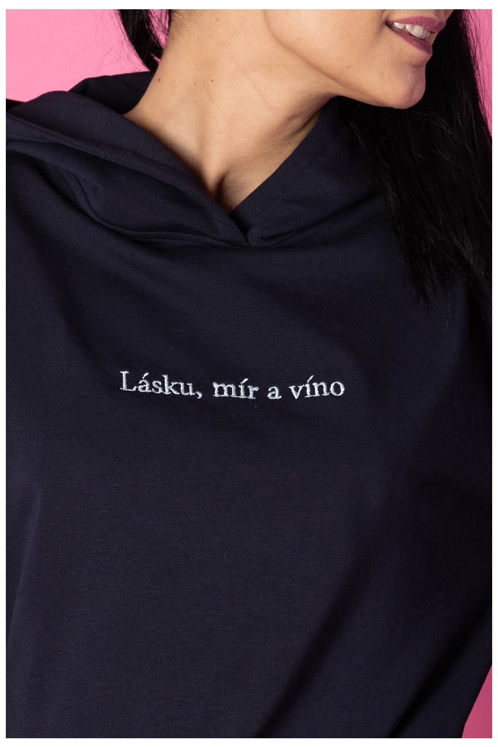 Nejenže mikina vypadá neodolatelně, ale každá mluví jasnou řečí. Vyrobili jsme ji z kvalitní prémiové bavlny, jíž dodává eleganci lehká příměs elastanu. Velká kapuce se hodí, když zafouká nebo se cestou domů rozprší. Na dotek jemná, ale se silným poselstvím. Výšivka s heslem „Lásku, mír a víno“ oslavuje lehkost bytí a výjimečné okamžiky s těmi nejbližšími lidmi.