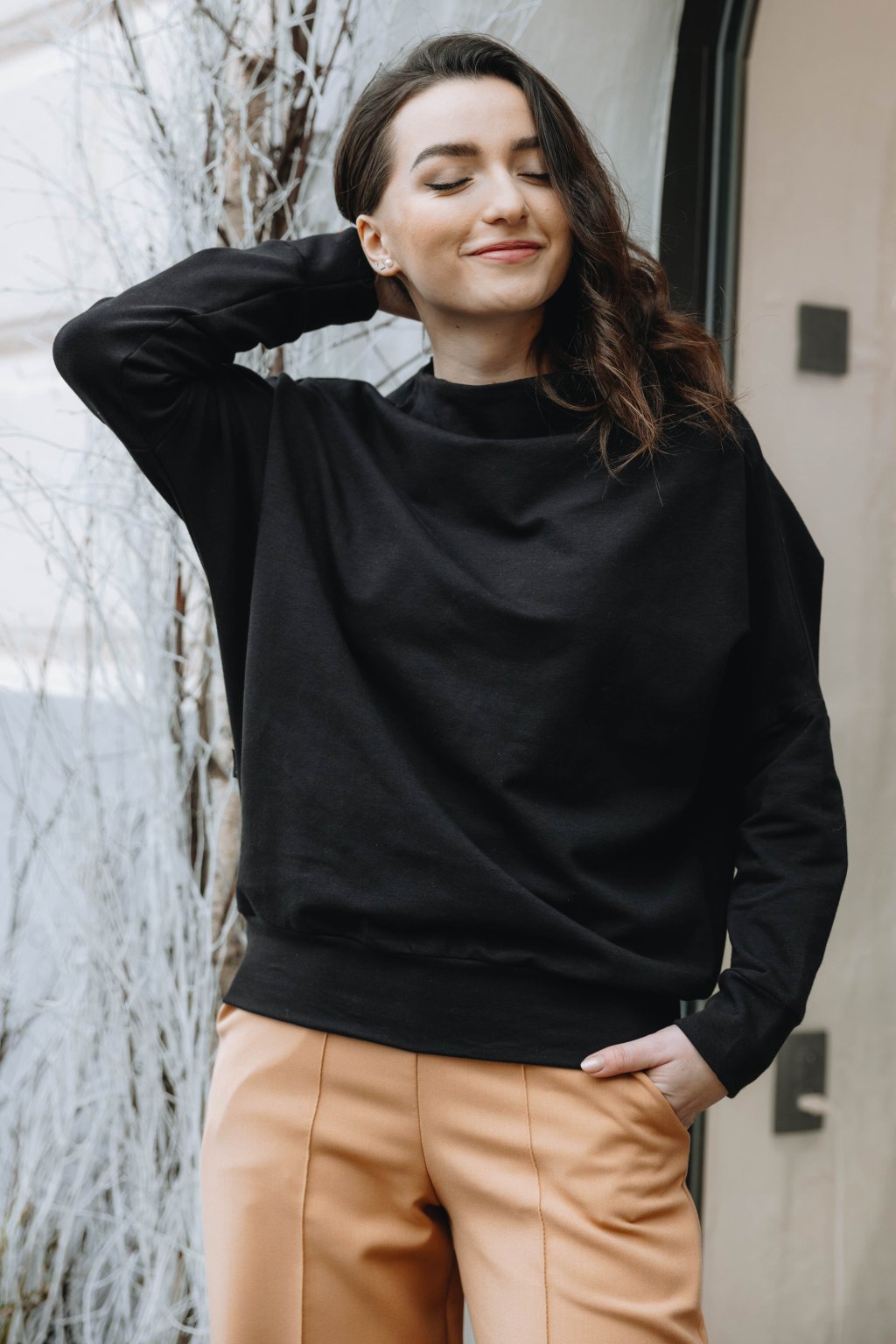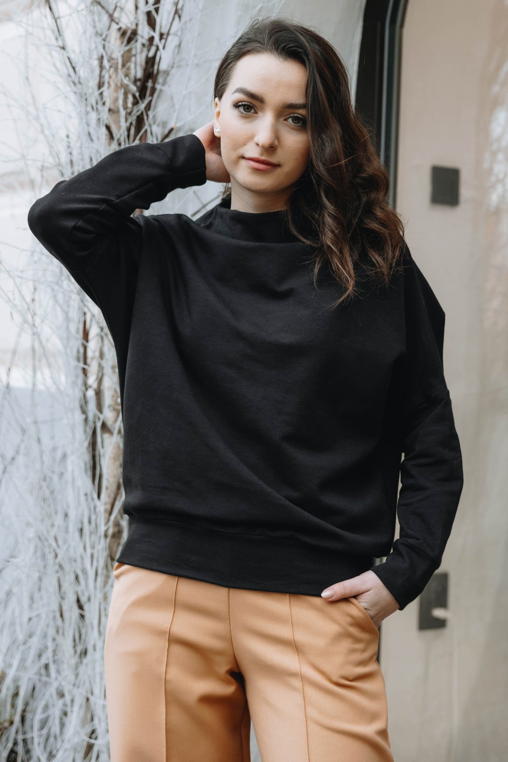 Mikina Izis Black s netopýřími rukávy a stojáčkem vychází střihově ze stejnojmenných svetrů. Jen materiál jsme vyměnili za prémiovou počesanou bavlnu OEKO-TEX.