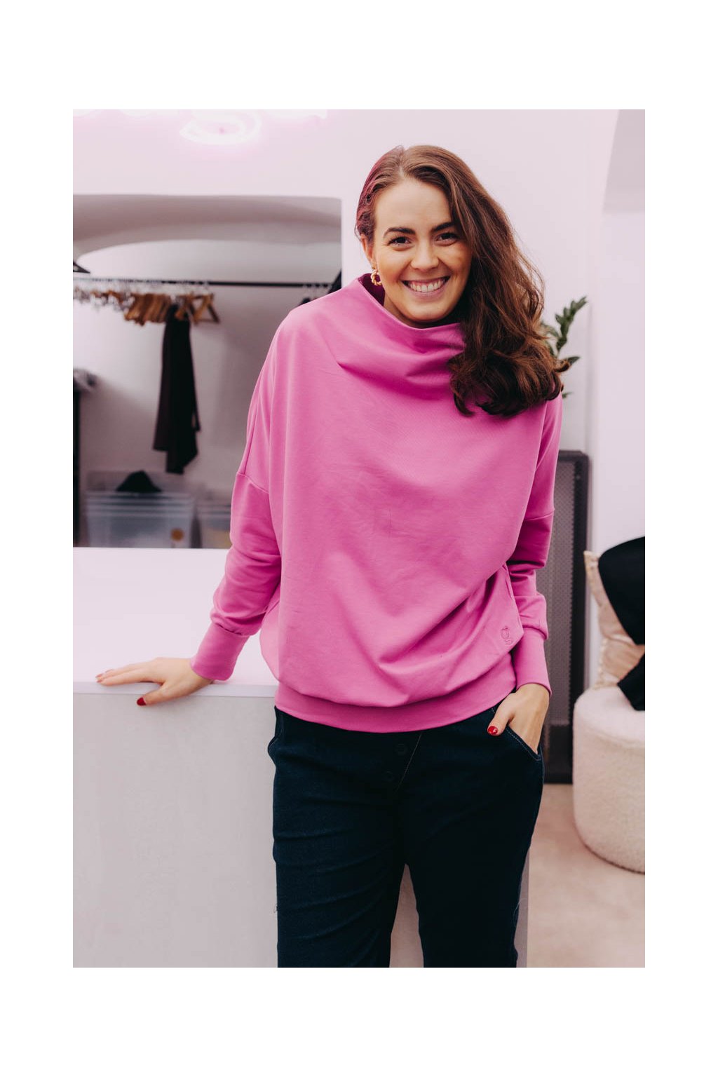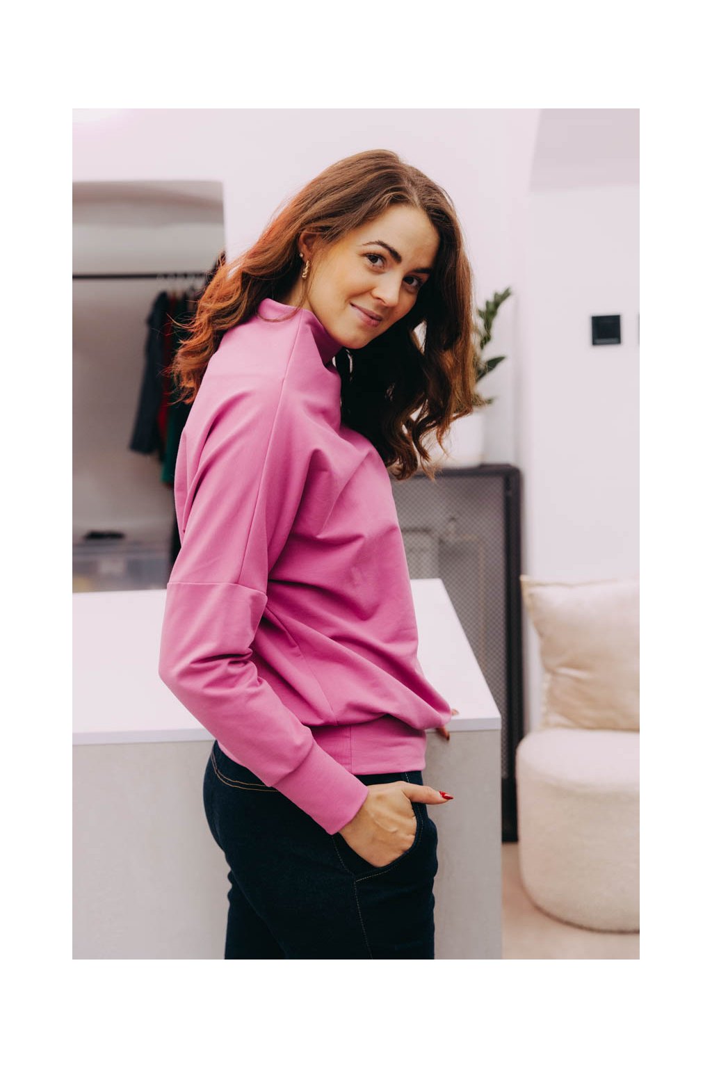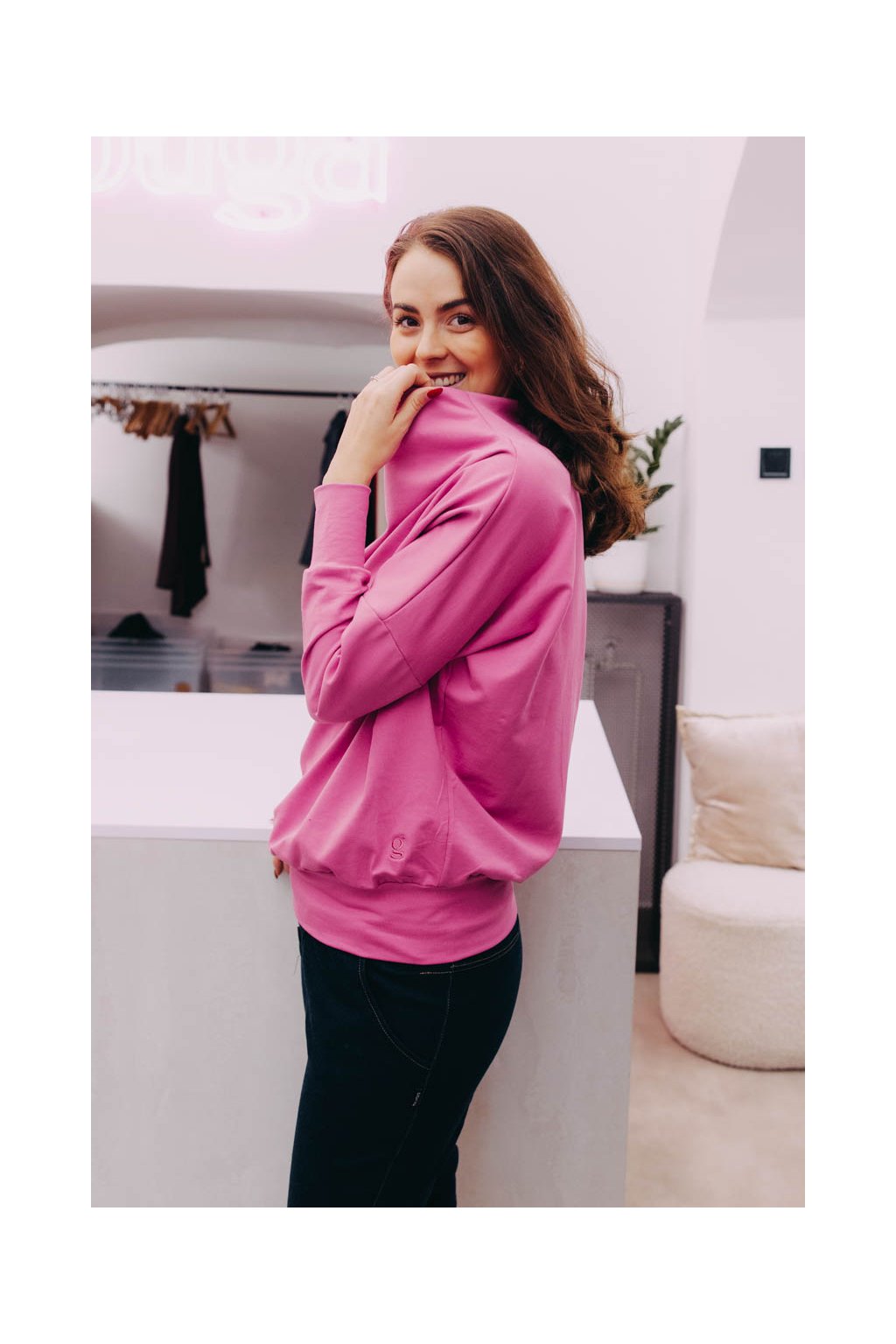 Mikina Izis Orchid s netopýřími rukávy a stojáčkem vychází střihově ze stejnojmenných svetrů. Jen materiál jsme vyměnili za prémiovou bavlnu GOTS.