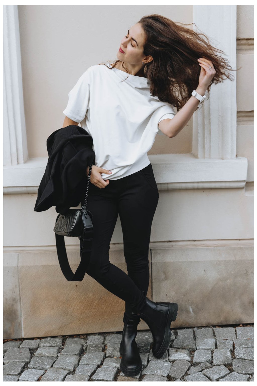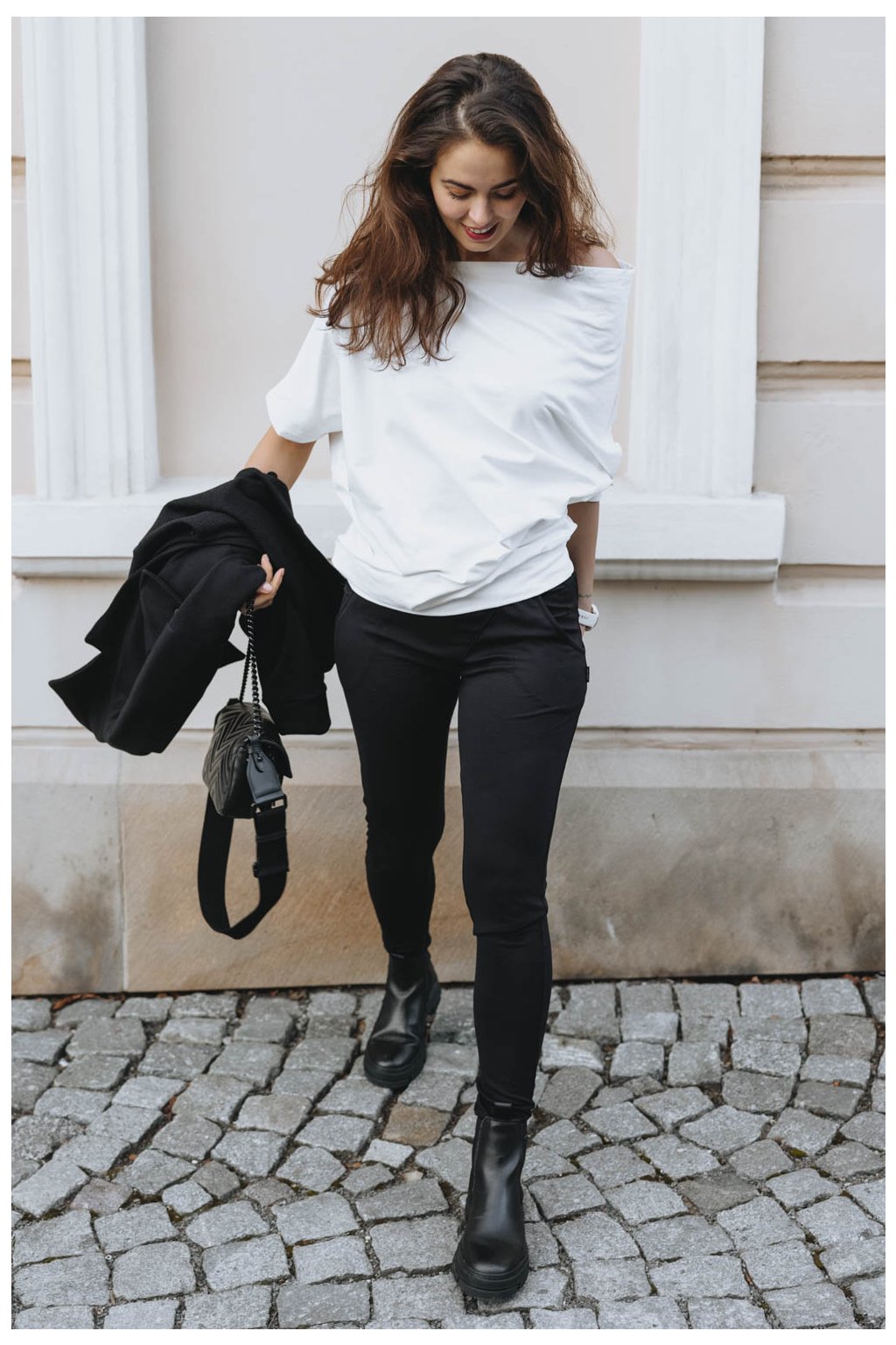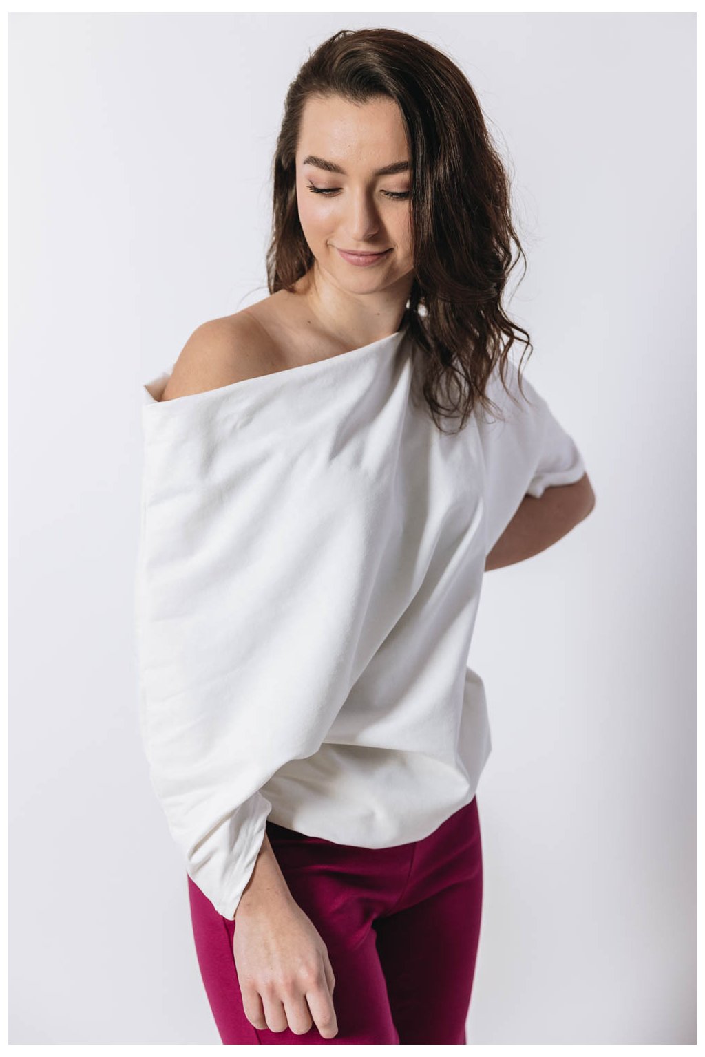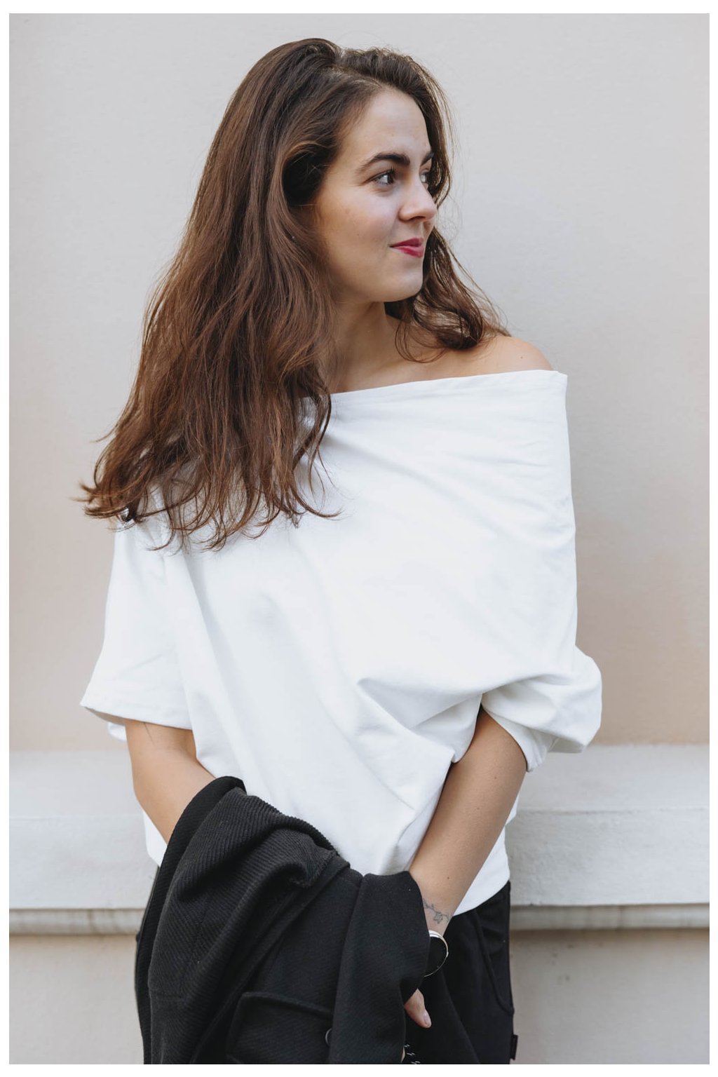 Když si na sebe hodíte asymetrickou mikinu Yagu, váš den téměř okamžitě vybočí ze zaběhlých kolejí. Peťa jí střihla ještě víc našikmo, než jste u Buga mikin zvyklé. Rukáv tak sofistikovaně odhalí rameno a zároveň působí nenuceně. Delší rukáv si můžete vyhrnout, nebo si jím nechat zakrýt celou ruku.