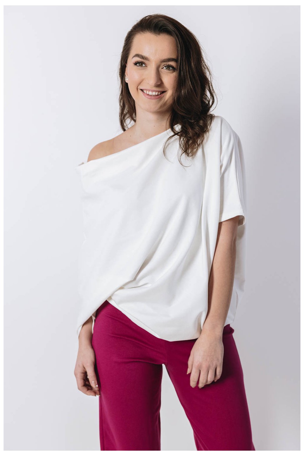Asymetrická mikina Yagu přichází, aby vás vytrhla ze zaběhlých kolejí. Přitažlivý střih bude vypadat dobře k jakýmkoliv kalhotám, legínám i sukni.