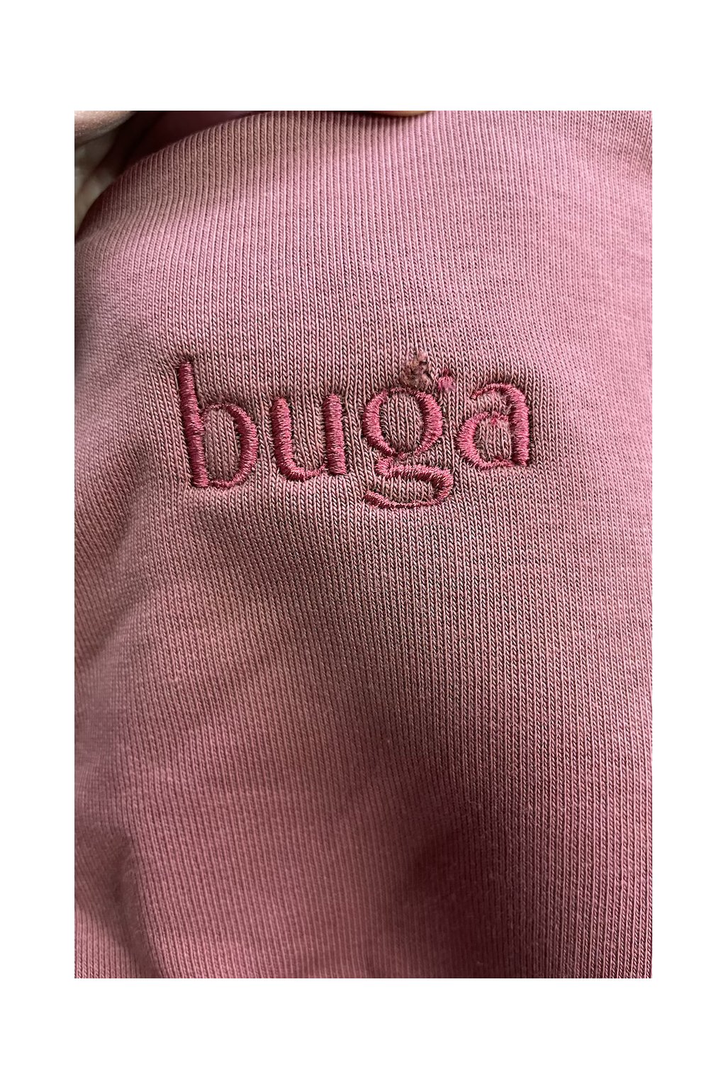 - Materiál: Bavlna s příměsí polyesteru, která zajišťuje maximální hřejivost a tvarovou stálost. Prověřeno snad všemi holkami z Bugalandu.