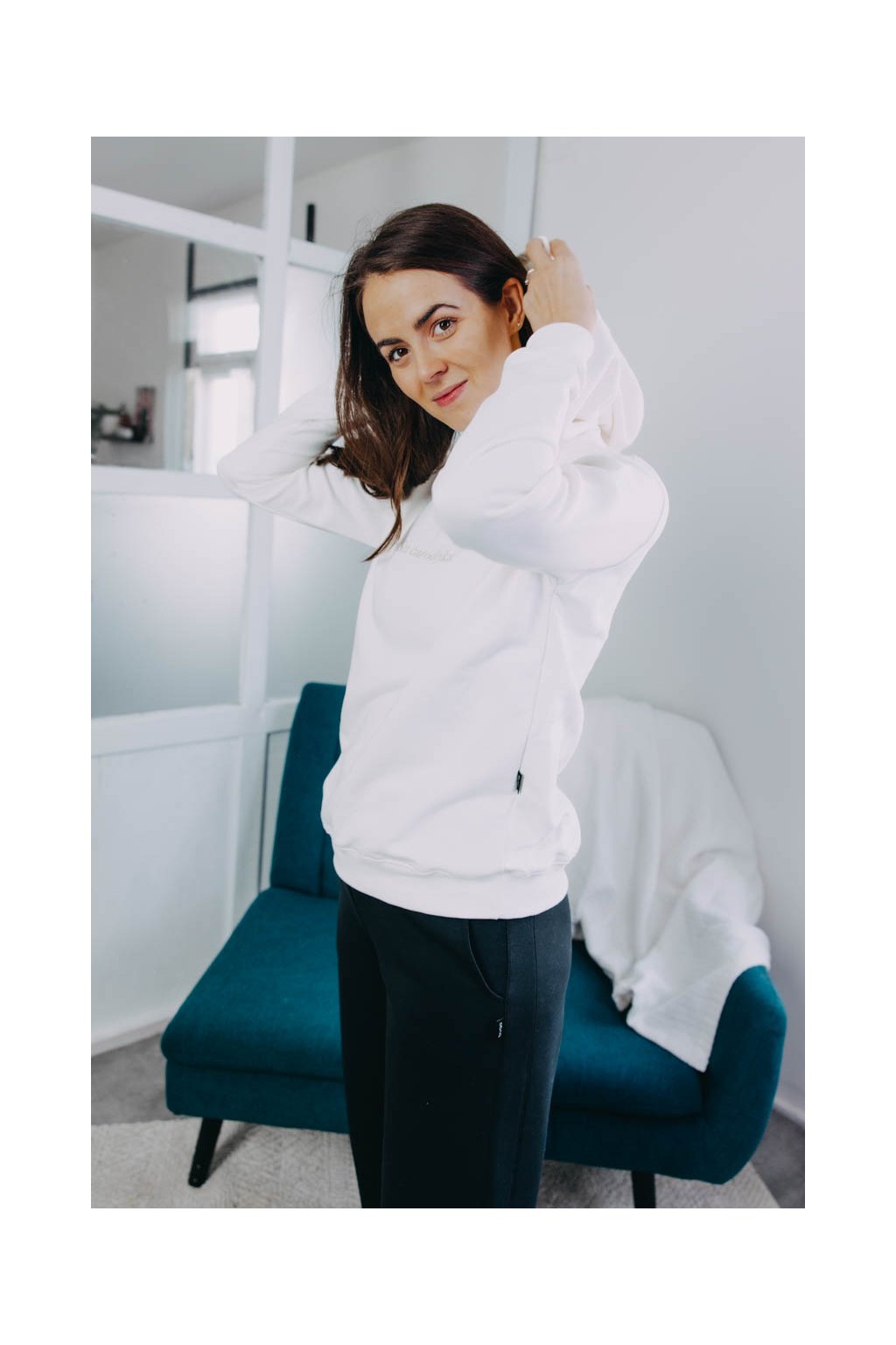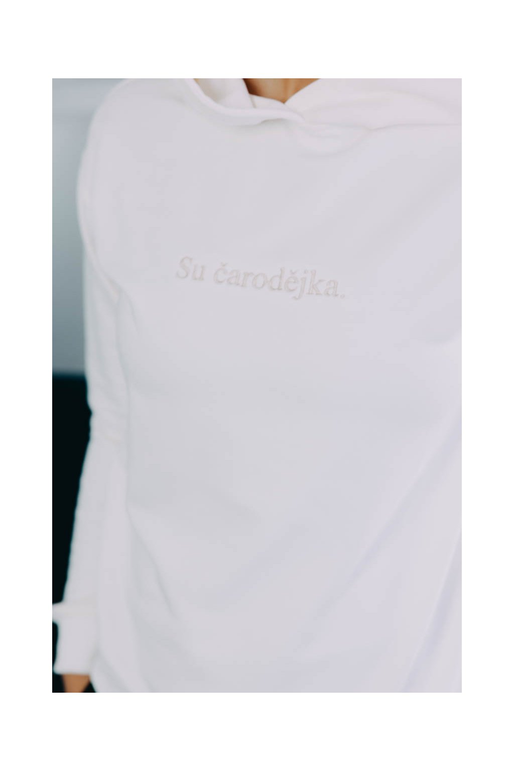 Nejenže mikina vypadá neodolatelně, ale každá mluví jasnou řečí. Velká kapuce se hodí, když zafouká nebo se cestou domů rozprší. Na dotek jemná, ale se silným poselstvím. Výšivka s heslem „Su čarodějka“ oslavuje lehkost bytí a výjimečné okamžiky s těmi nejbližšími lidmi.