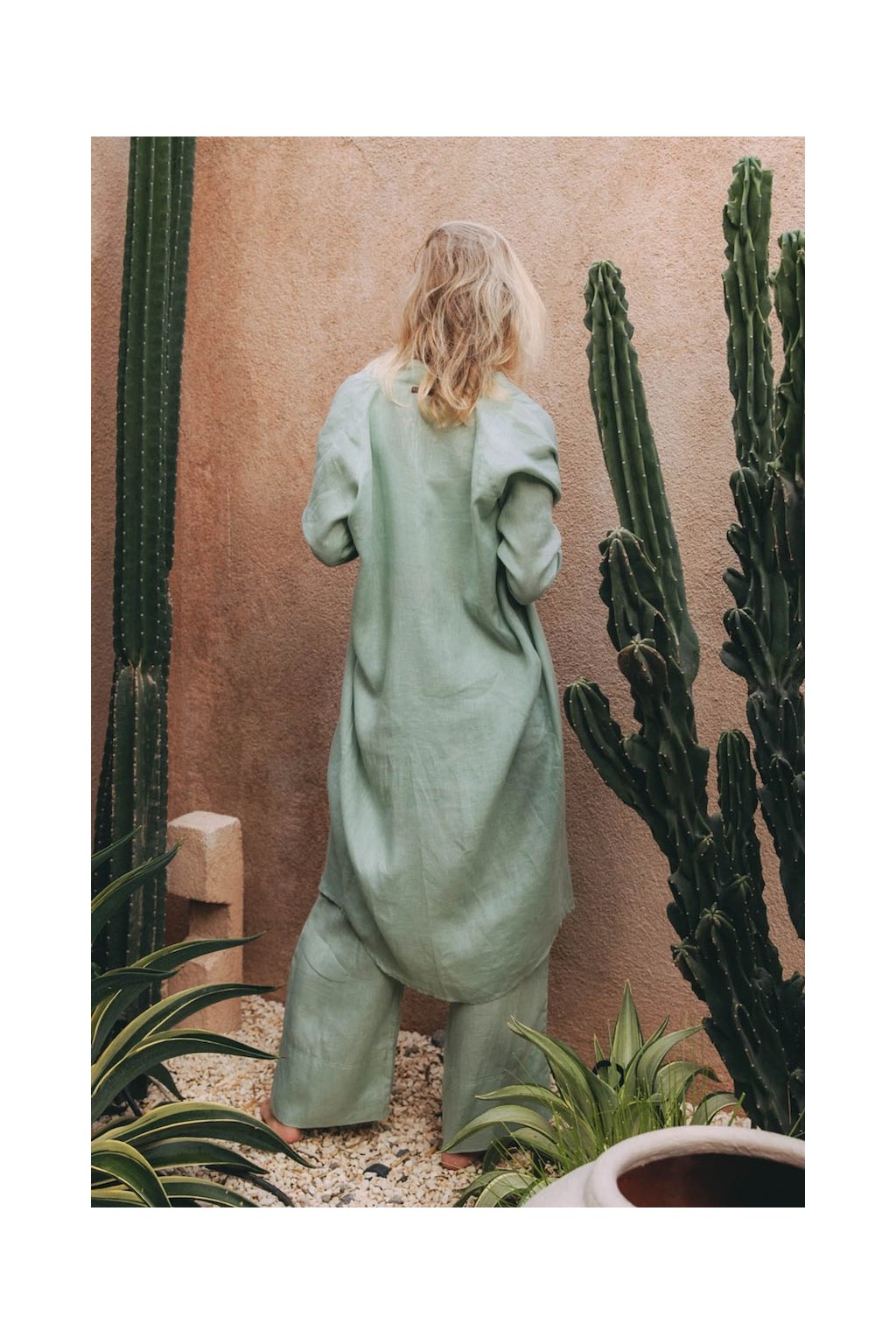 Světle olivová barva dodává modelu sofistikovanost, zatímco minimalistický střih umožňuje snadné vrstvení. Jeho volnější silueta působí ležérně, ale zároveň elegantně, takže ho můžete nosit nejen k volnočasovým outfitům, ale i jako stylový doplněk k šatům nebo džínům.