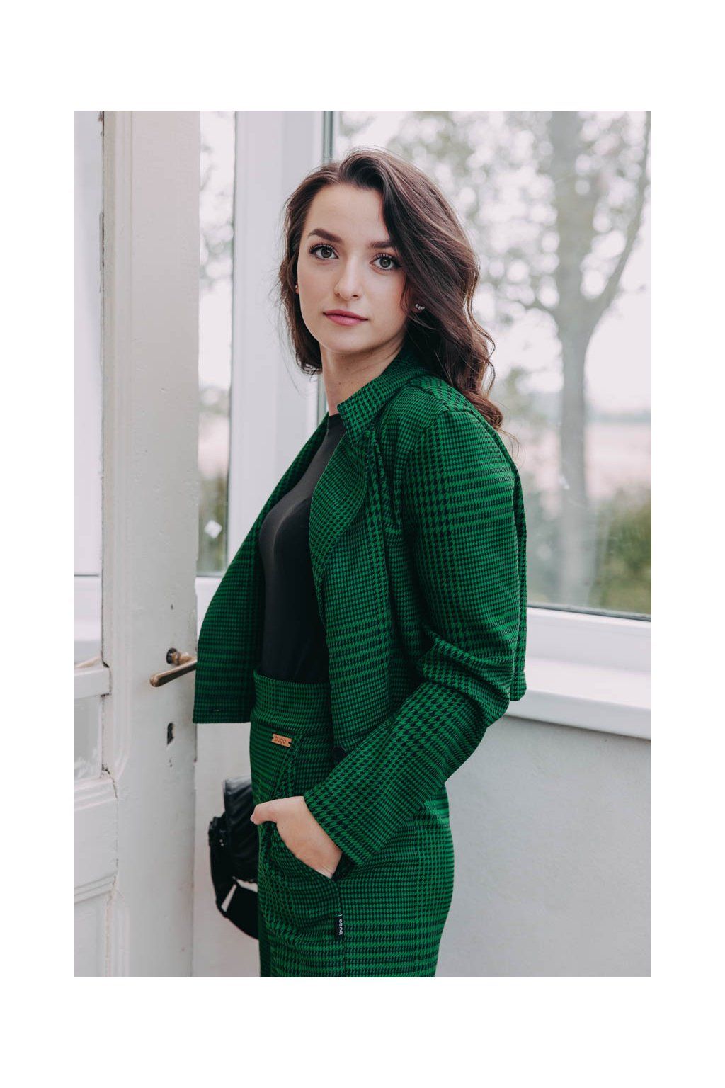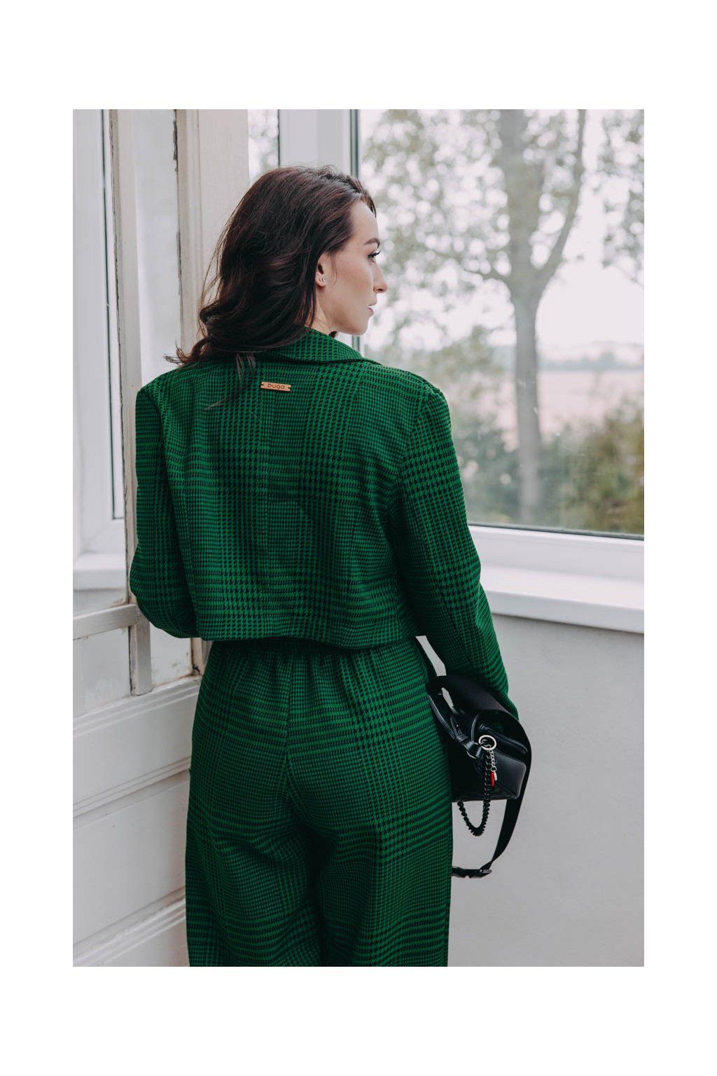 Pokud dáváte přednost méně tradičním outfitům, ale přesto se nechcete vzdát elegance, je Aris dokonalou volbou. Dolaďte ho s kalhotami Kiu Green ze stejné látky a máte nepřehlednutelný kostýmek.