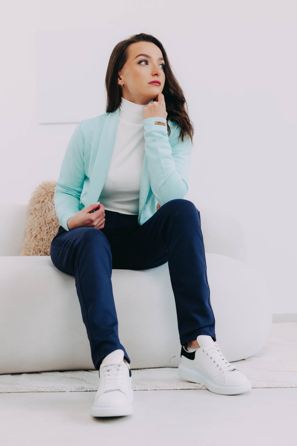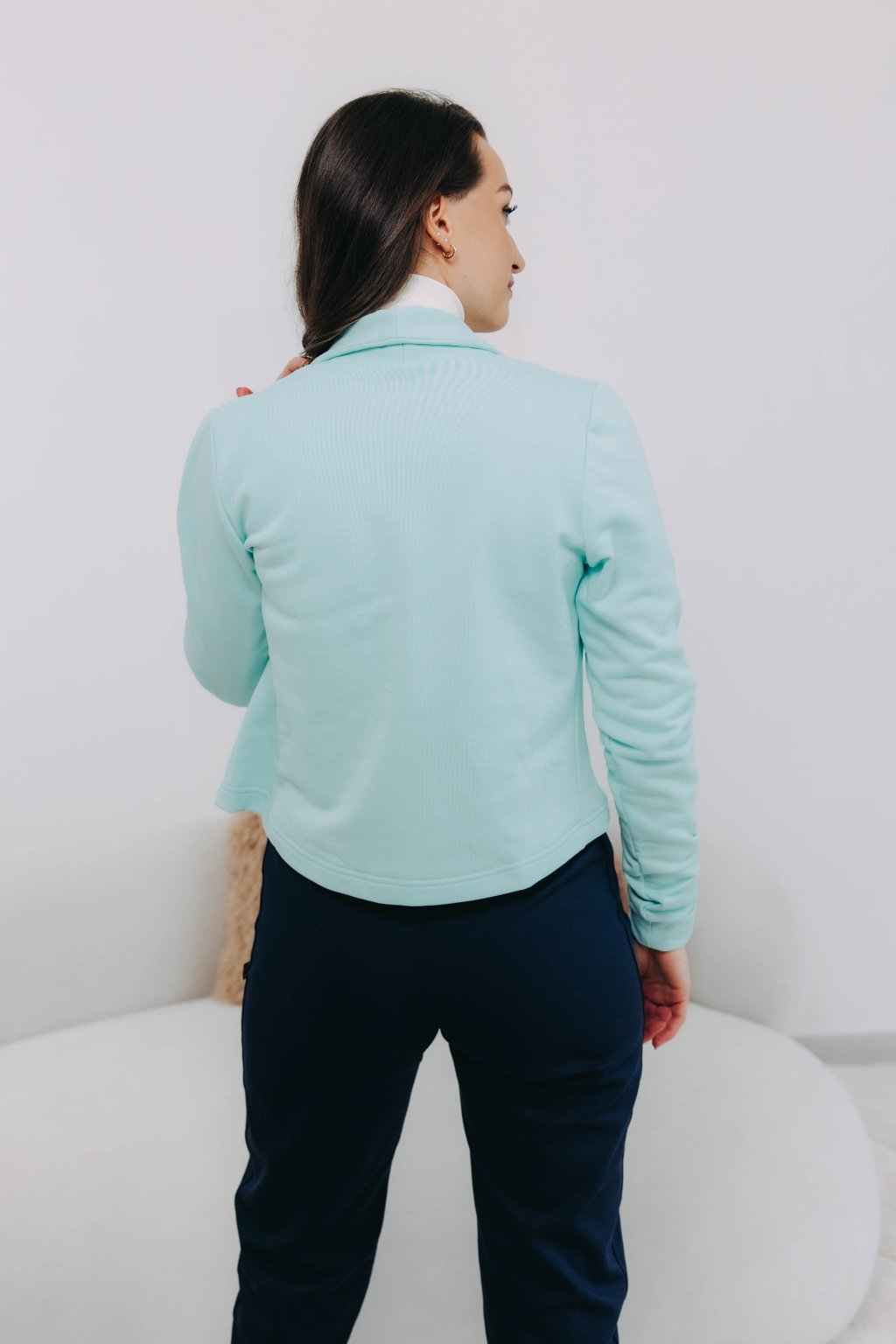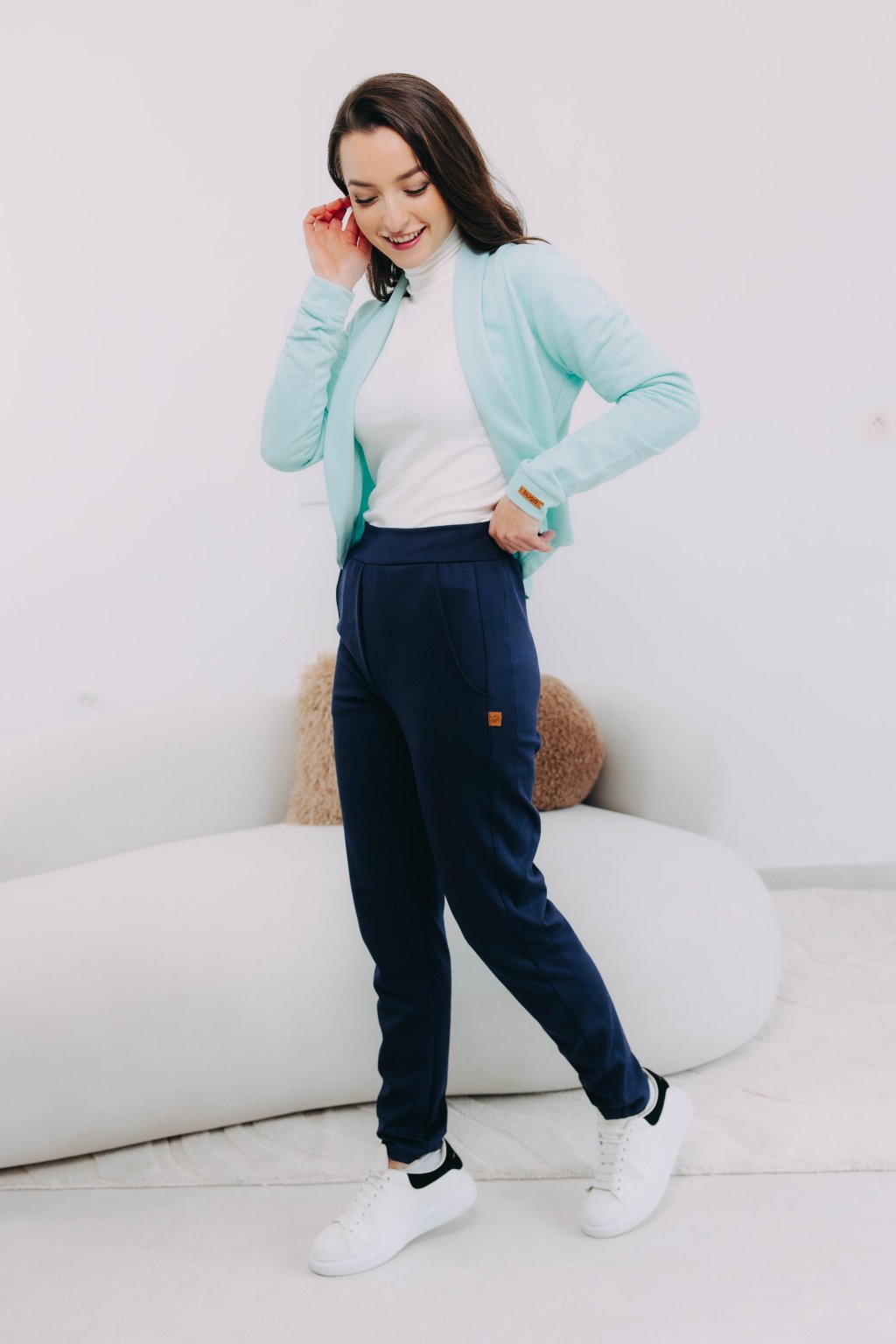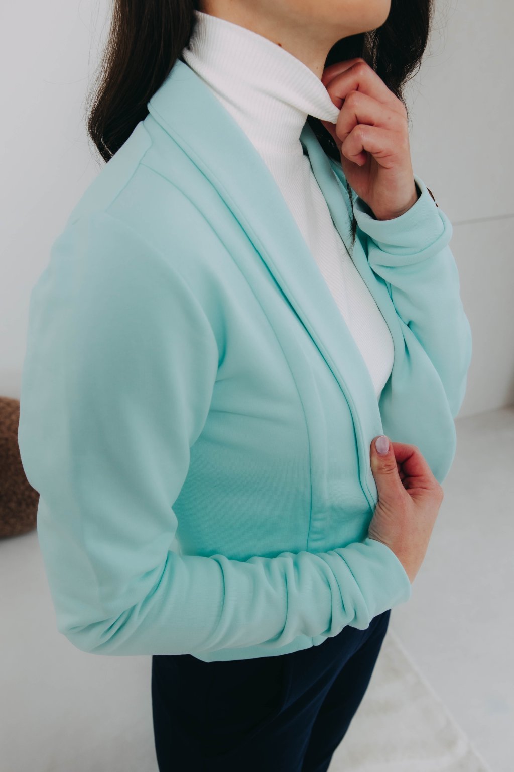 Tumia je kratší verzí oblíbeného saka Ania, takže to není jen pohodlnost, která je mu vlastní, ale i punc ležérnosti. Bezvadně se hodí k sukni (třeba s Mawe se bude vyjímat přímo dokonale), ke kalhotám (krásně zjemní například trochu maskulinní typ Sanyu), ale v létě rozhodně zabodujete i v kombinaci s kraťasy.