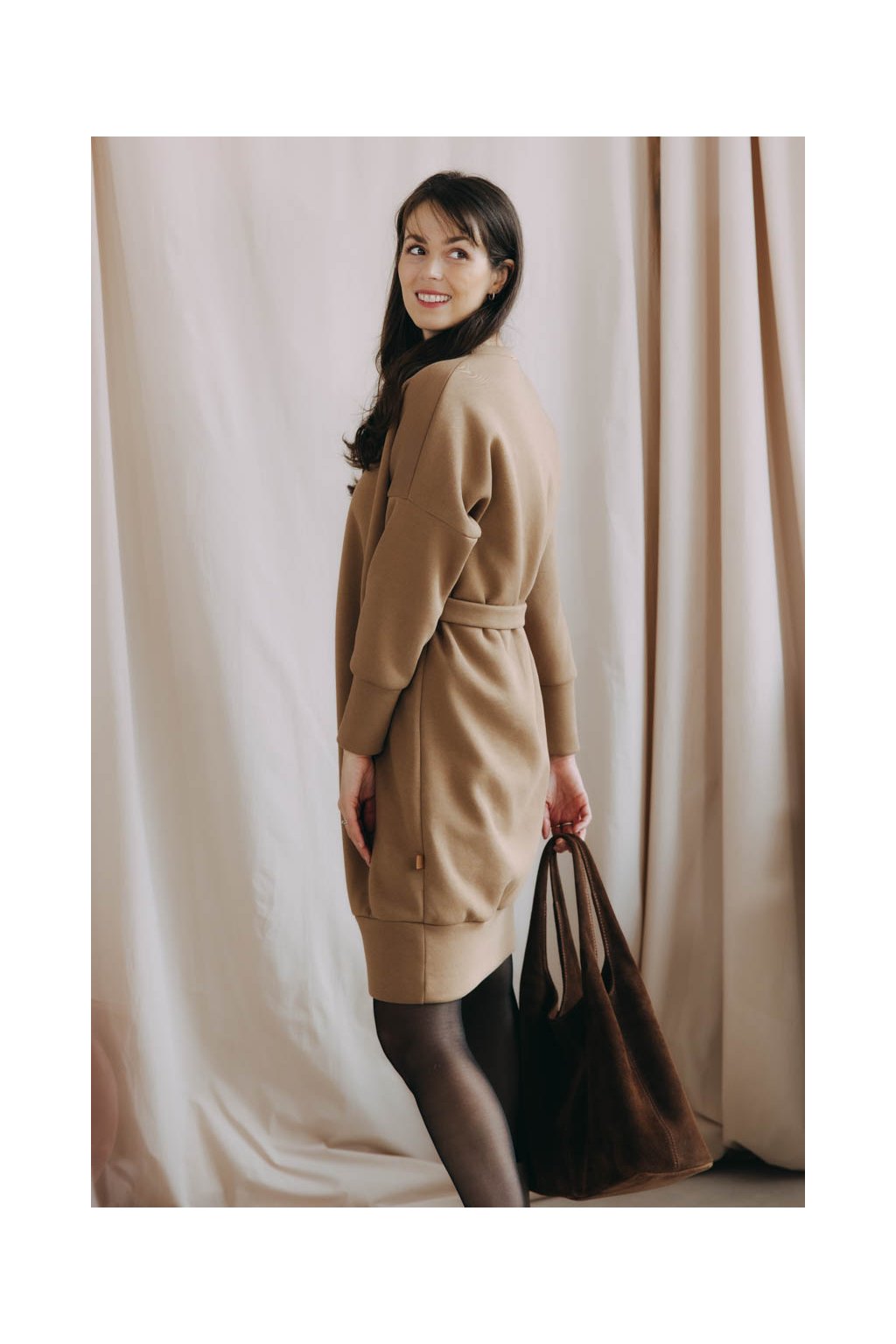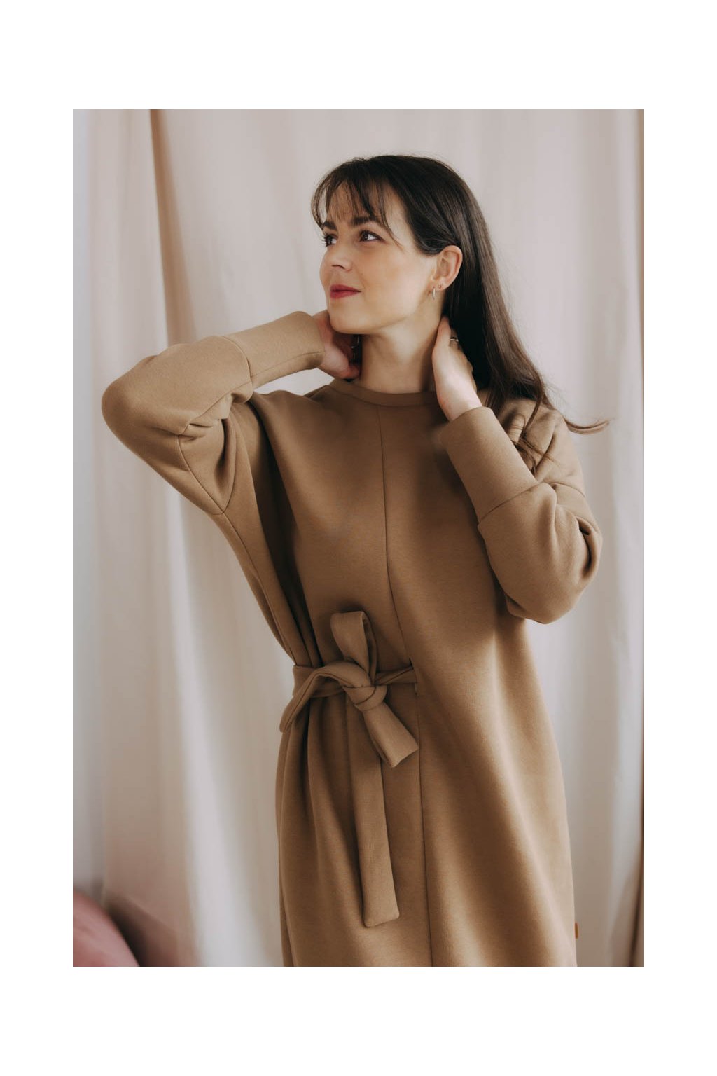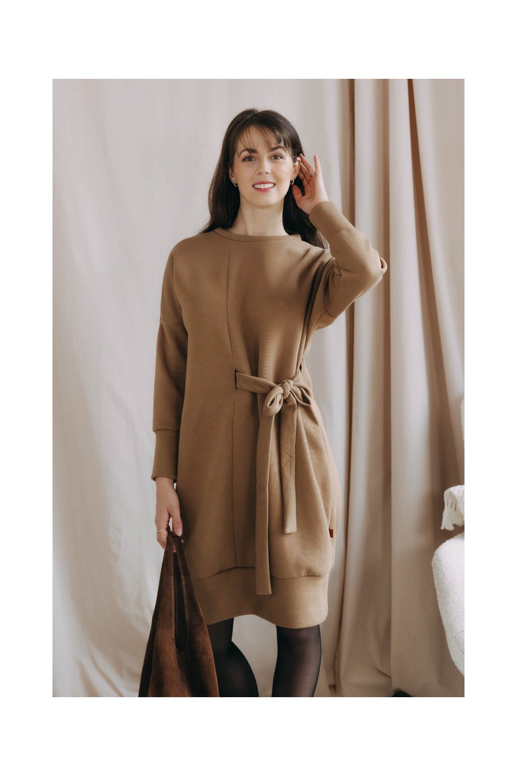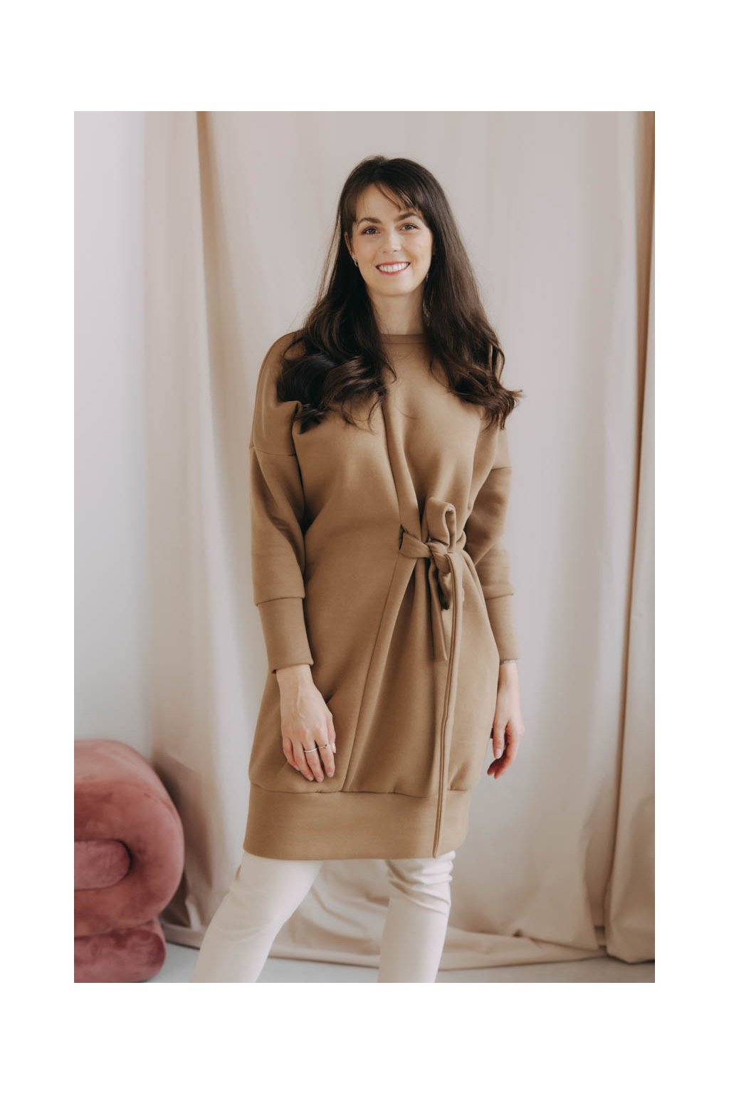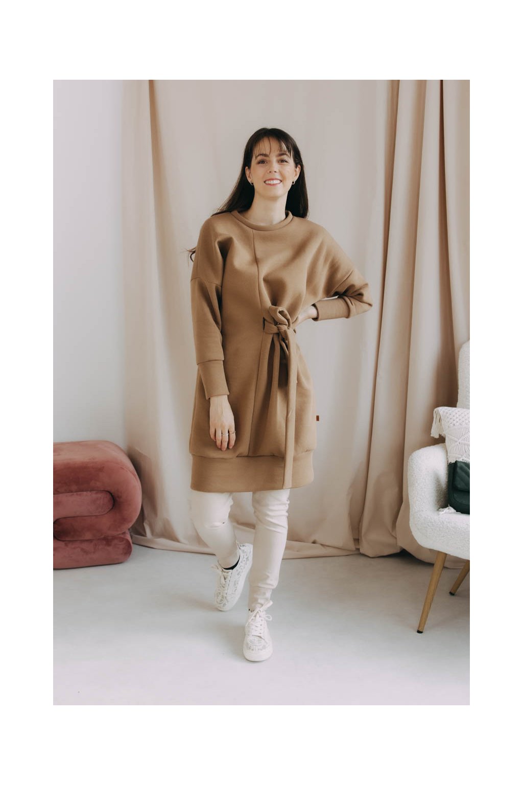 Mikinové šaty Enam jsou jasným důkazem toho, jak pohodlí sluší. Nejenže se v nich cítíte jako v bavlnce (aby ne, když vás hřeje prémiová počesaná bavlna), ale taky velmi žensky. A to i přesto, že jsou volnějšího střihu a la mikča. Na přední straně je totiž zdobí nápaditý pásek ze stejného materiálu, provlečený na dvou místech tak, že díky němu vytvoříte opravdu efektní dojem.