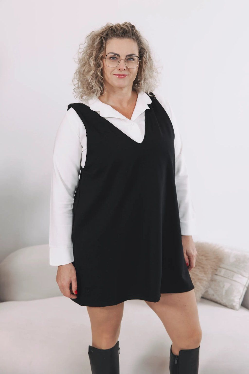Lulama Black je esencí nadčasové elegance. Tato šatovka s minimalistickým střihem, hlubokým výstřihem a praktickými kapsami je spolehlivým základem pro váš kapsulový šatník.