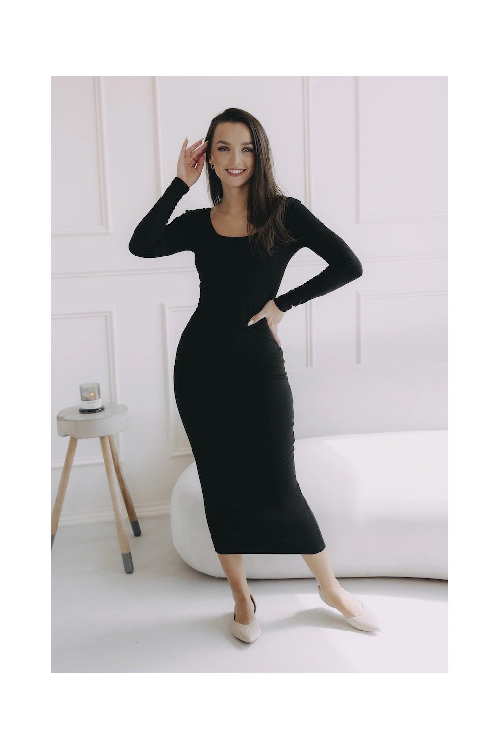 - Střih, který lichotí: Přiléhavý, na tělo, s dlouhými rukávy a hlubokým výstřihem na zádech. Zkrátka mají vše, co vašim křivkám bude slušet. Jsou ideální šaty pro typ hruška, ale sluší i dalším typům postavy.