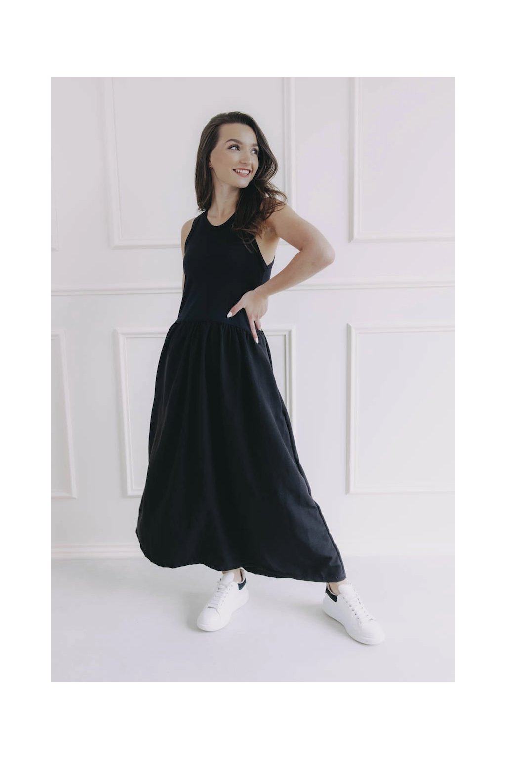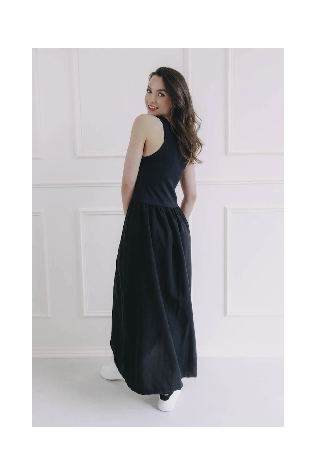 V šatech Mandla se budete cítit absolutně svobodně. Horní část krásně sedí, sukně se při chůzi jemně vlní a celý střih působí lehce, nenuceně a přitom chic.