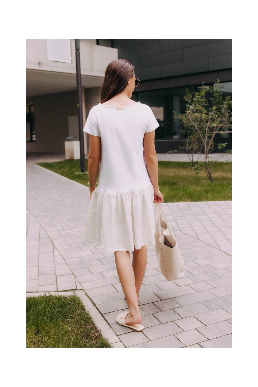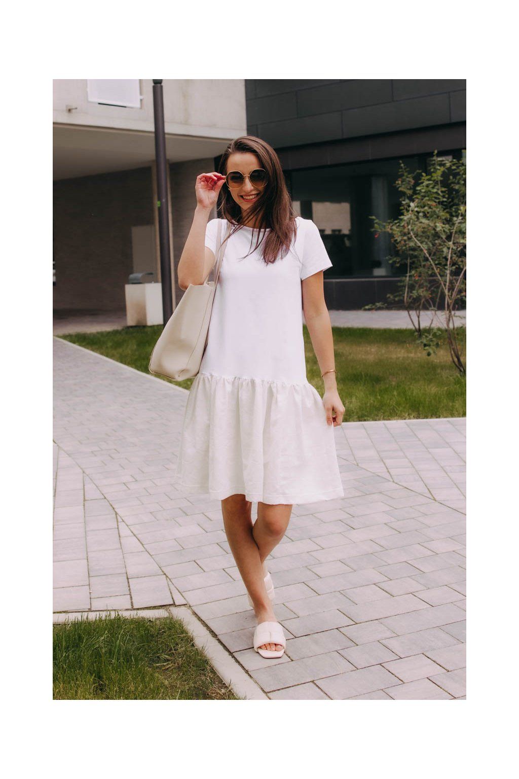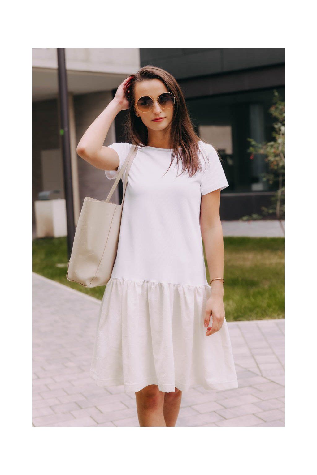 Vzdušné bílé šaty Badu s krátkým rukávem kombinují příjemné materiály s volným střihem, a budou tak skvělým parťákem pro všední i nevšední letní dny.