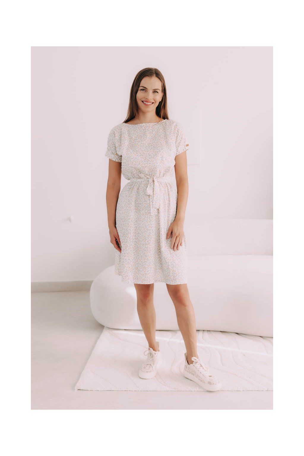 Volný střih šatů Boho doplněný jemnými kvítky je jako stvořený pro bláznivé letní zážitky. Oceníte na nich kratší délku, hravý pásek i praktické kapsy.