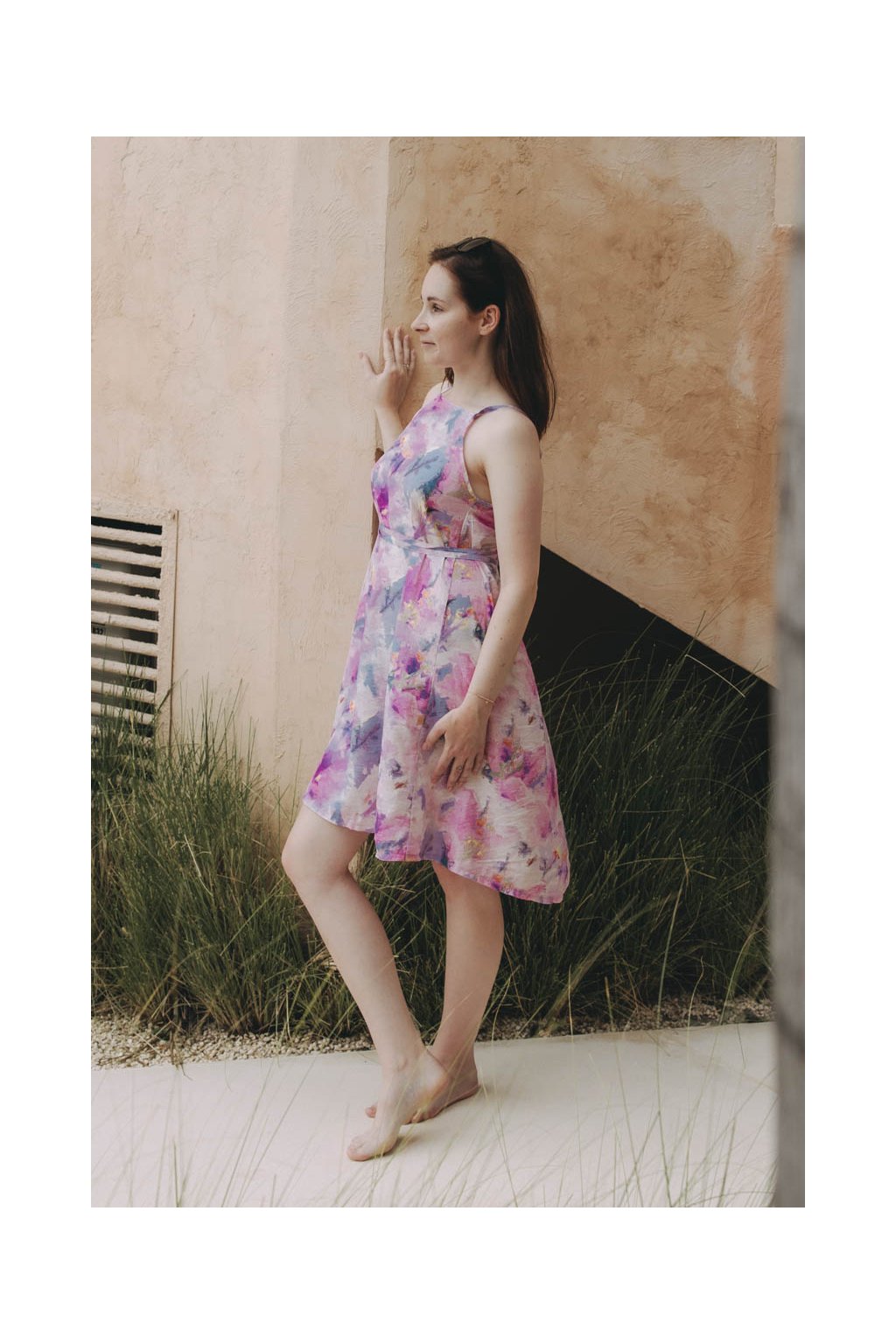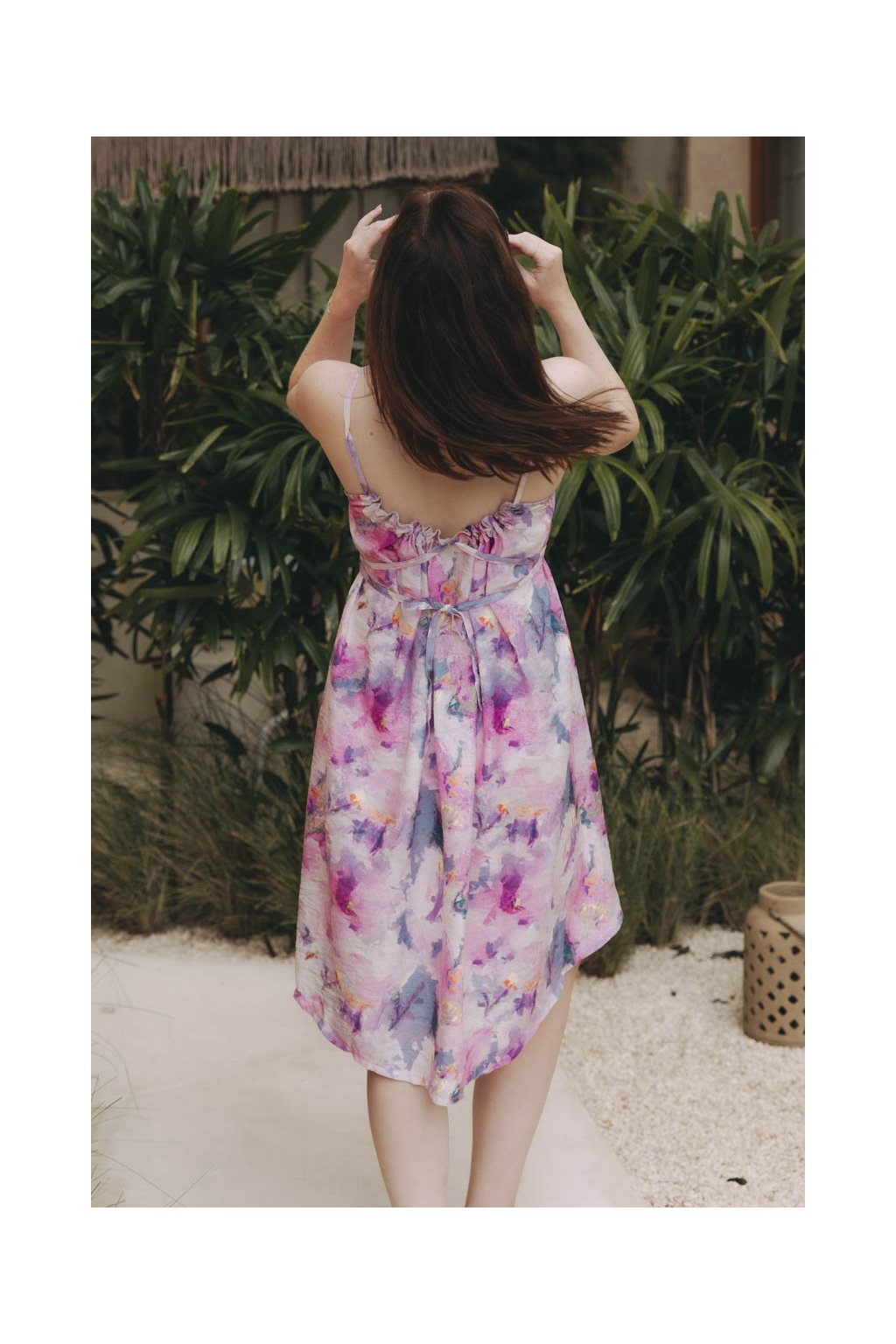 Květované šaty Ishani si zamilujete pro jejich lehkost i sofistikovaný střih. Vyhrajte si se zavazováním na šňůrku a staňte se královnou letních párty.
