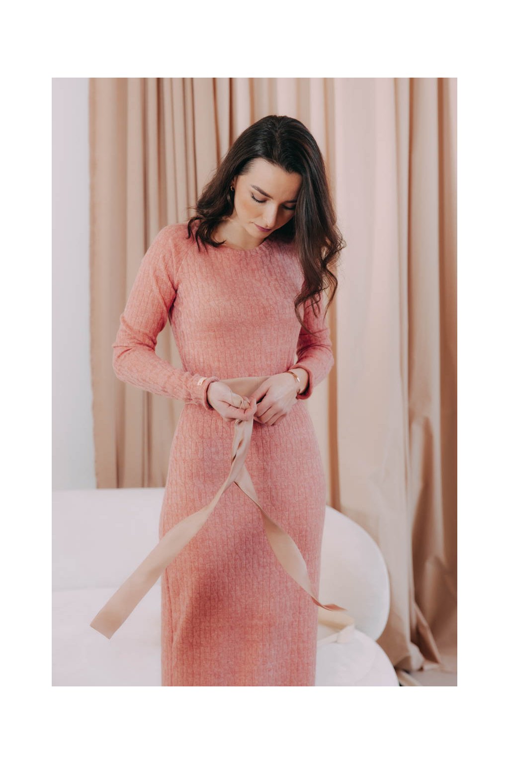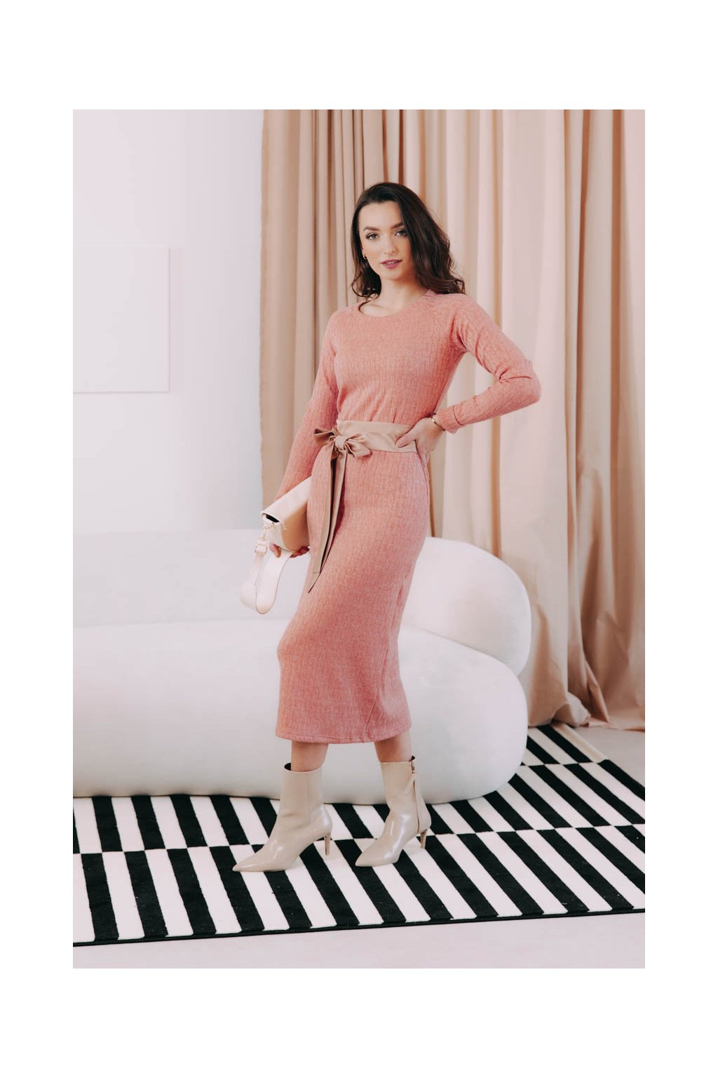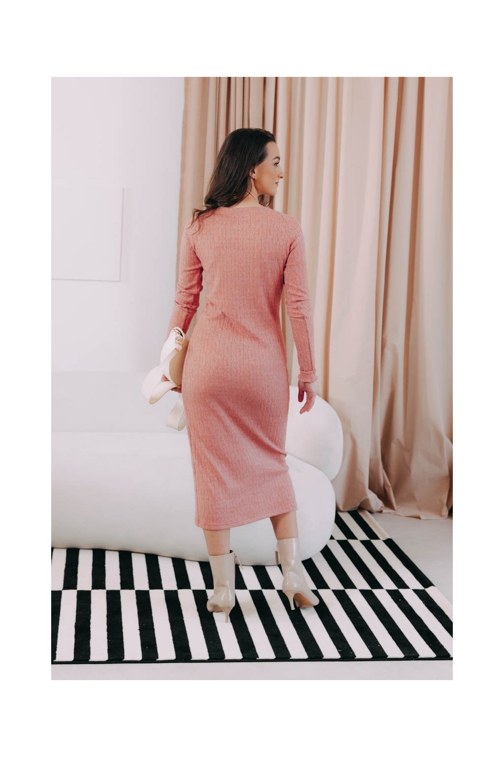 Příjemná a přizpůsobivá směs viskózy, polyesteru, polyamidu a elastanu vás zahalí do celodenního pocitu pohodlí, a to od zápěstí až po lýtka. Dlouhé rukávy a midi délce v lehce obepnutém střihu jsou skvělou volbou pro podzimní dny.