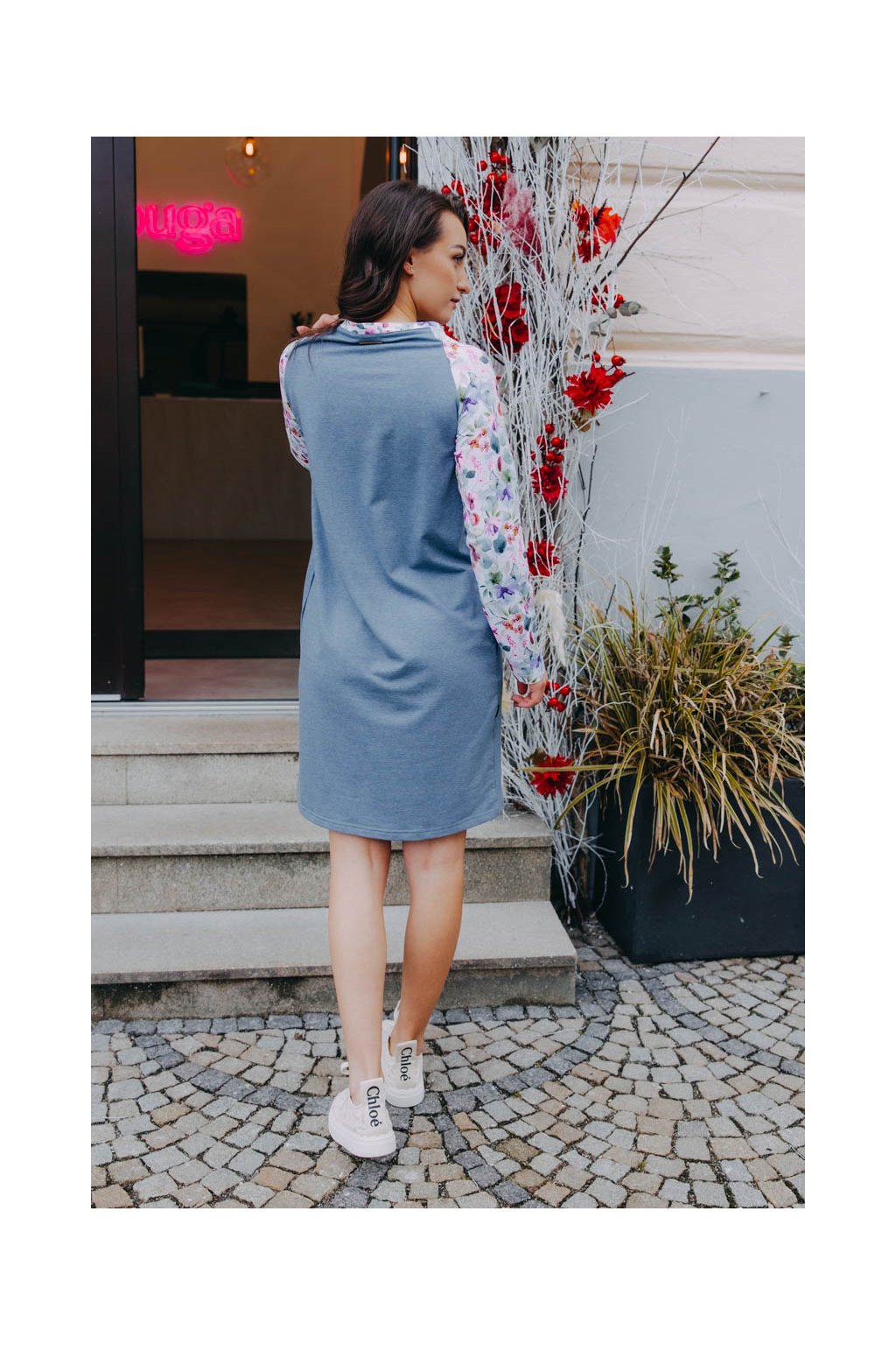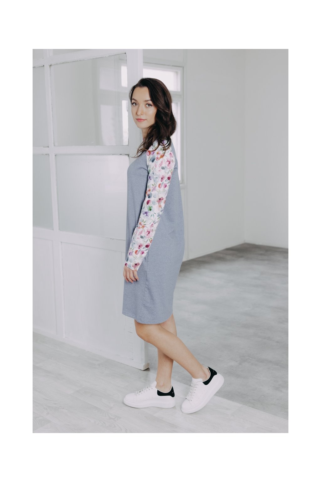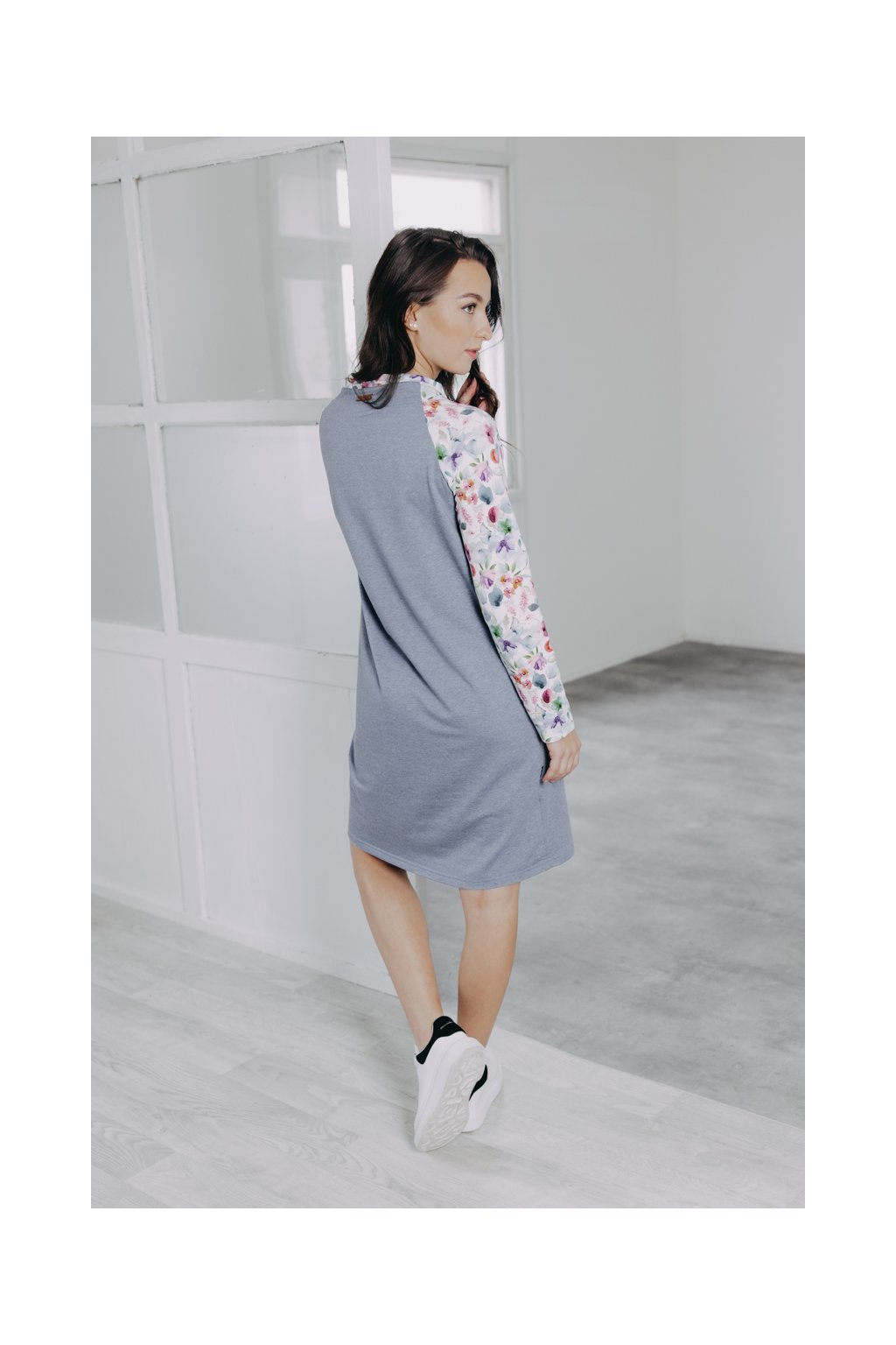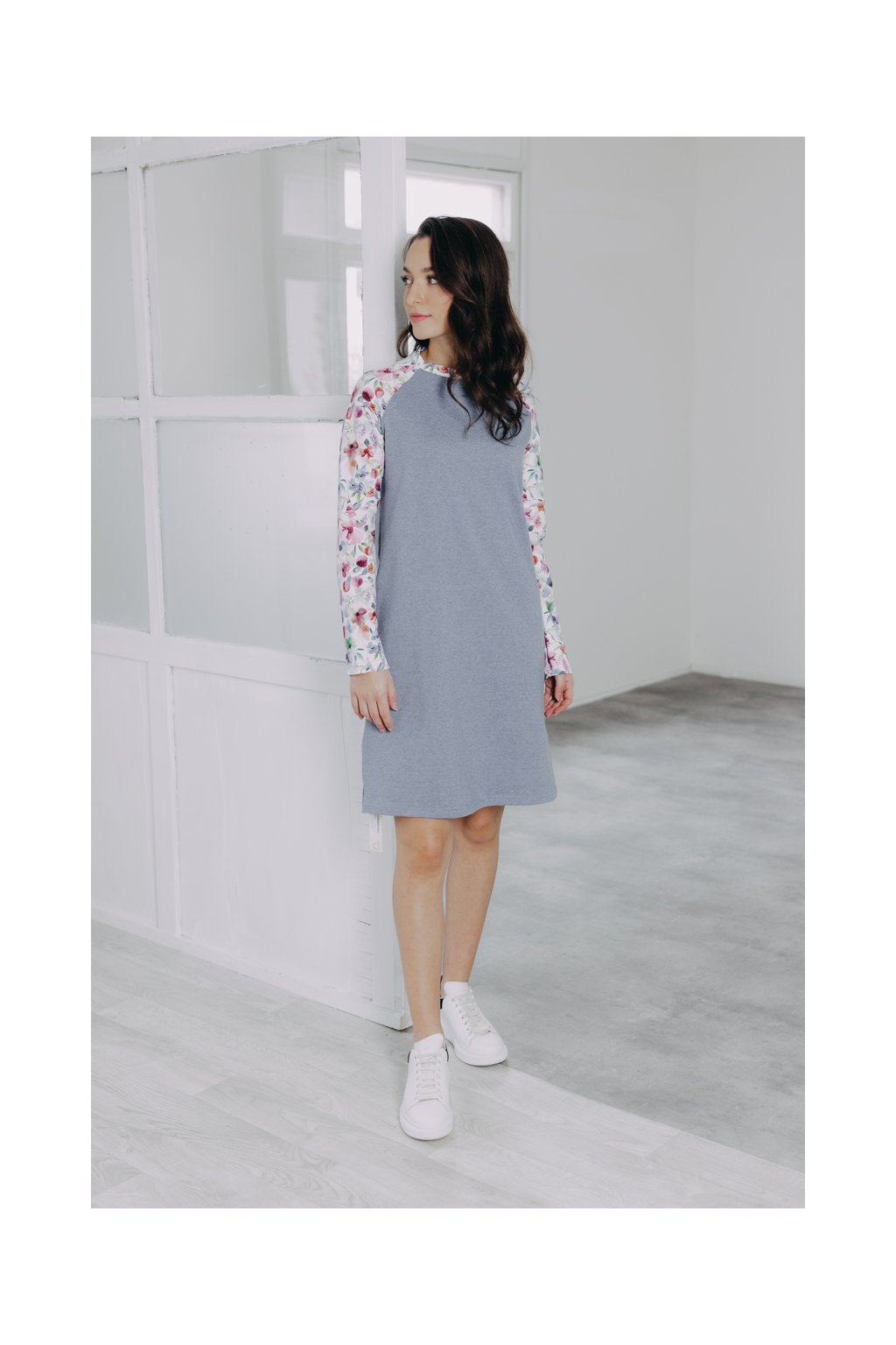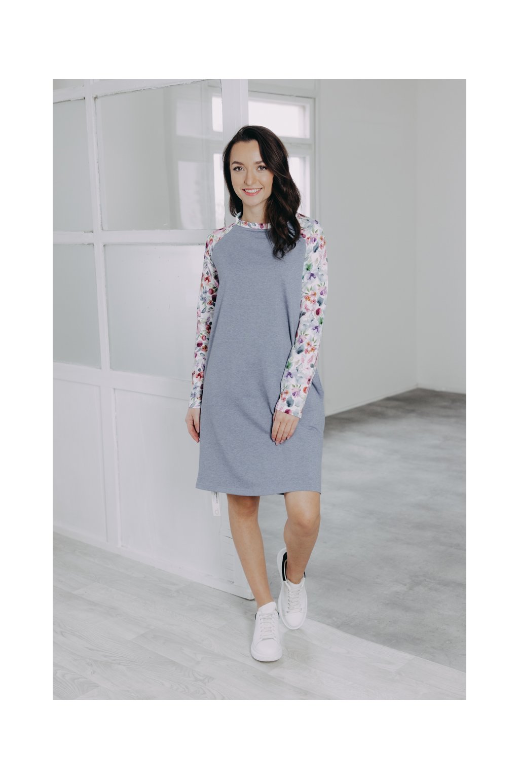 Volnější šaty s potištěnými raglánovými rukávy zahřejí a přes svůj minimalismus rozhodně nezůstanou bez povšimnutí. Pohodlné, a přesto ženské.