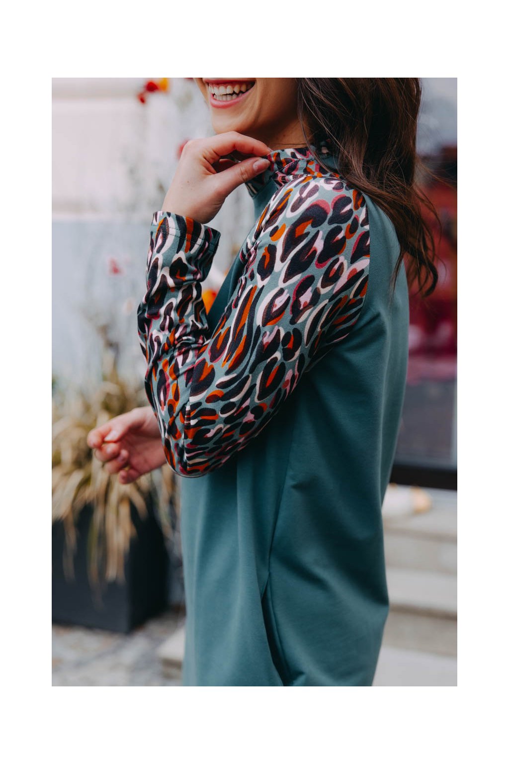 Volnější šaty s potištěnými raglánovými rukávy zahřejí a přes svůj minimalismus rozhodně nezůstanou bez povšimnutí. Pohodlné, a přesto ženské.