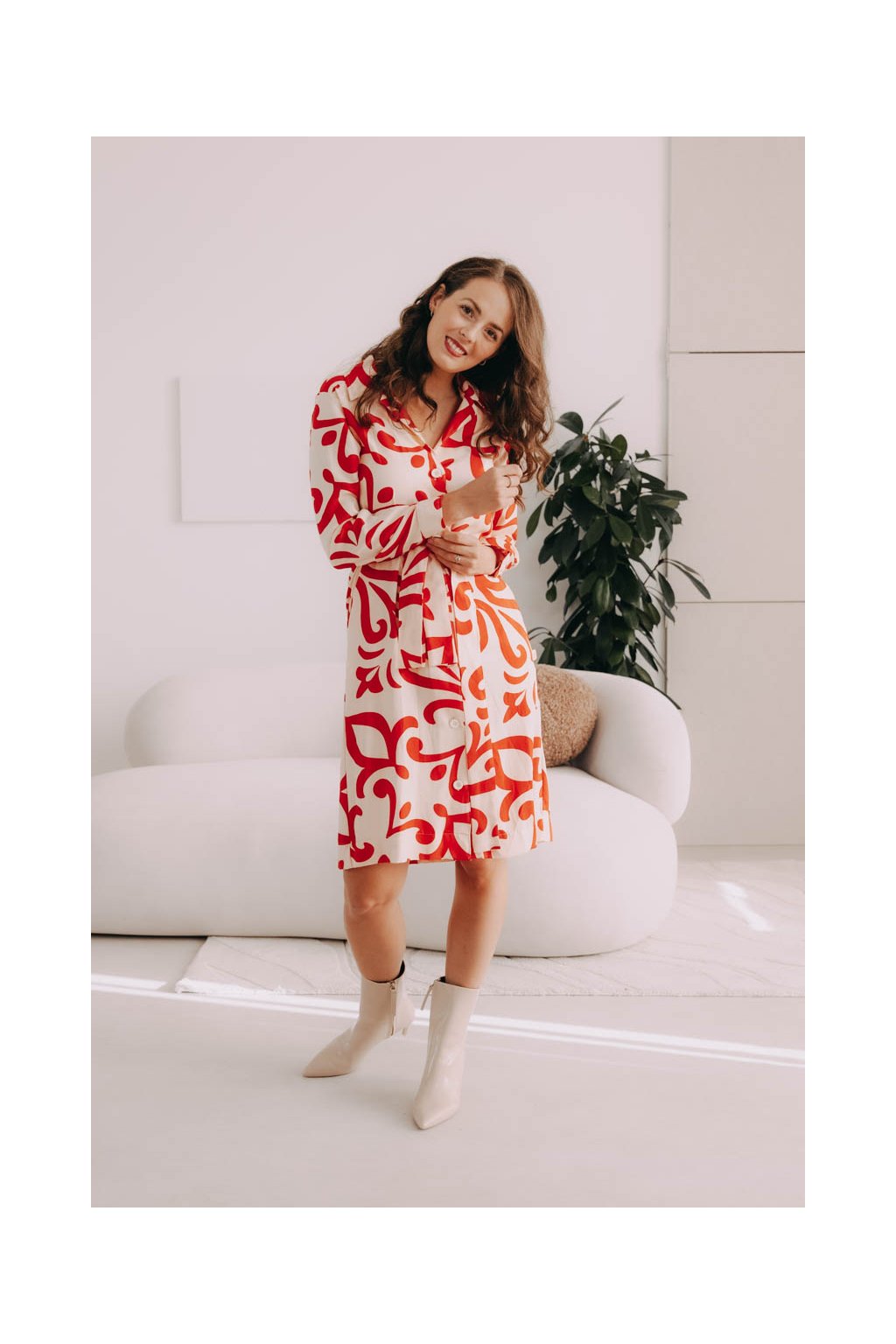 Musíte uznat, že naše šaty Thaba jsou opravdu povedený kousek do šatníku. Viskózu jsme spojili s pohodlným košilovým střihem, který s oblibou nosily i módní ikony Audrey Hepburn a Grace Kelly. Vsadíme se, že padnou do oka i vám. Na elegantní výstřih do V plynule navazuje řada knoflíků, které se táhnou po celé přední části. Rukávy jsou vyhrnuty do úzké manžety, kterou si můžete stáhnout na předloktí. Střih po kolena lichotí jakékoli postavě a s volně přiloženým páskem v barvě šatů si pěkně vytvarujete pas.