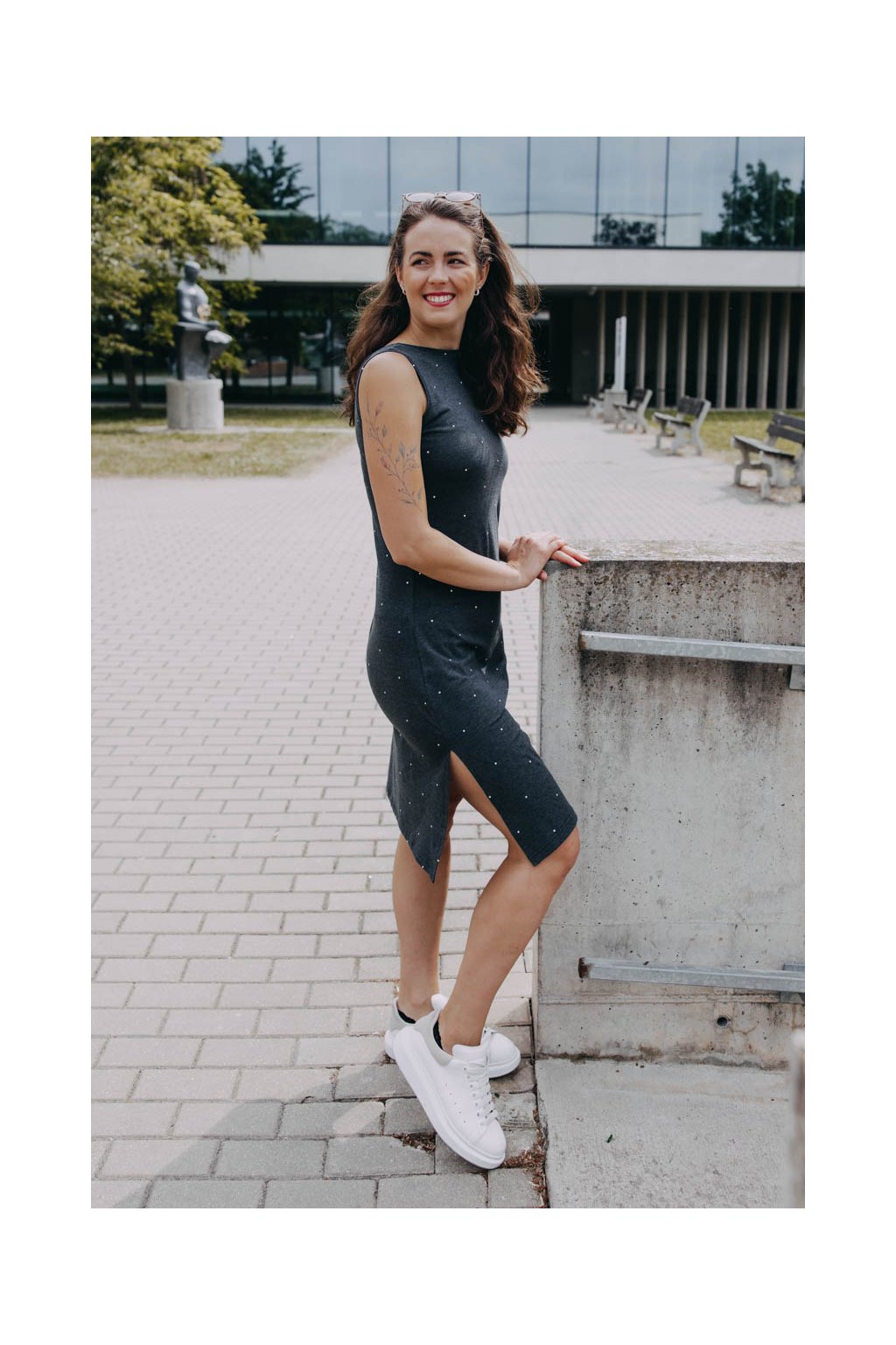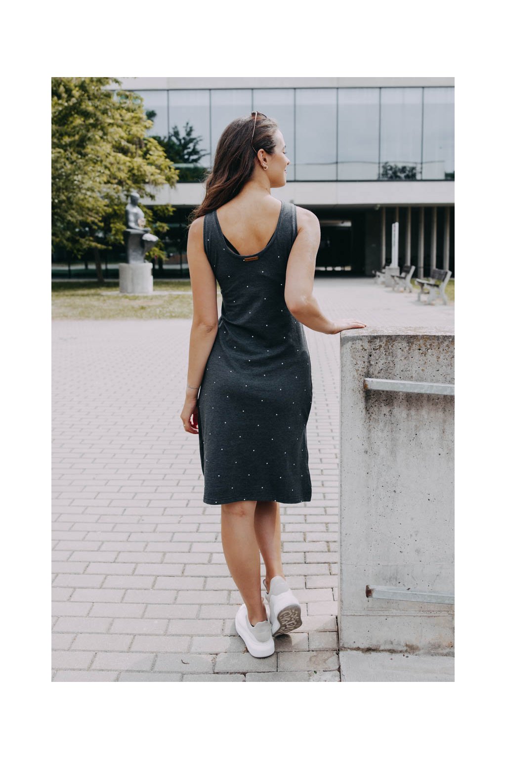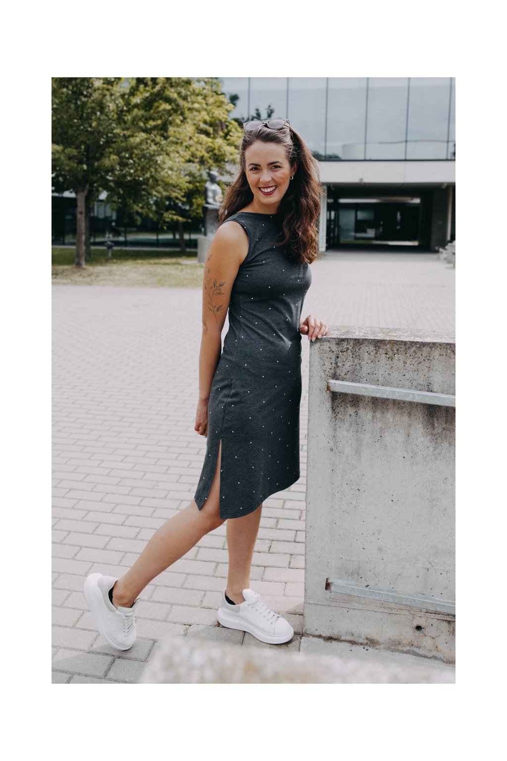 Pusťte si léto do šatníku. Puntíkaté šaty Yaro s vykrojenými zády a hravým rozparkem vdechnou vašim outfitům hravé letní vibes.