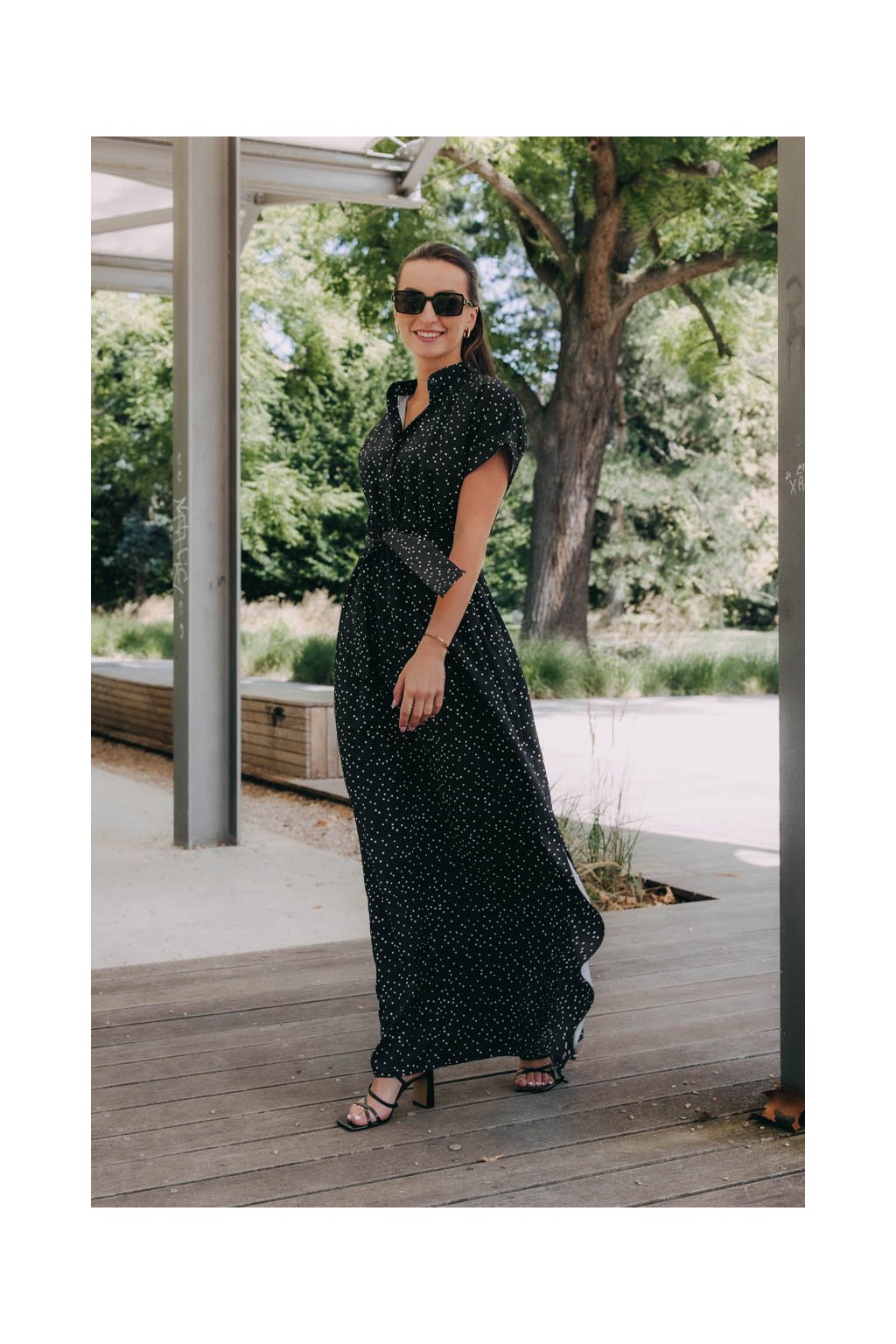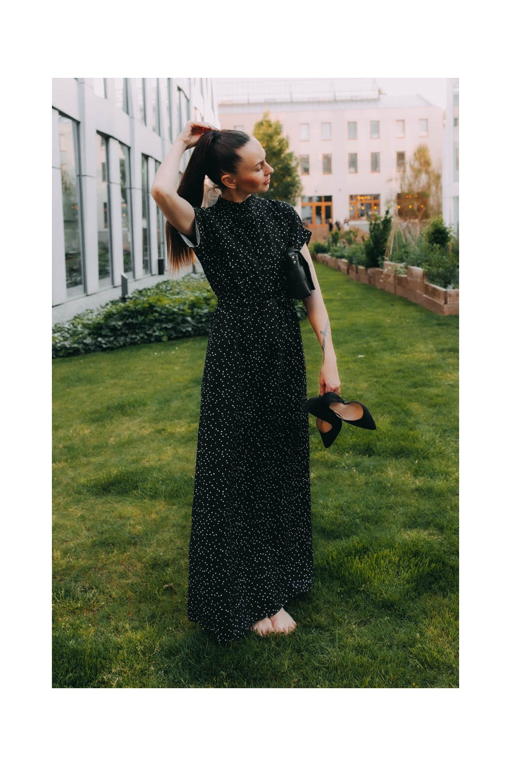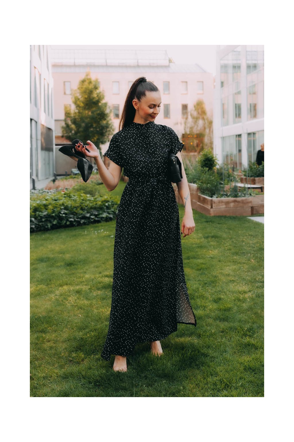 Modelka má na sobě při své výšce 180 cm velikost XS.